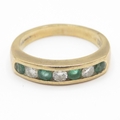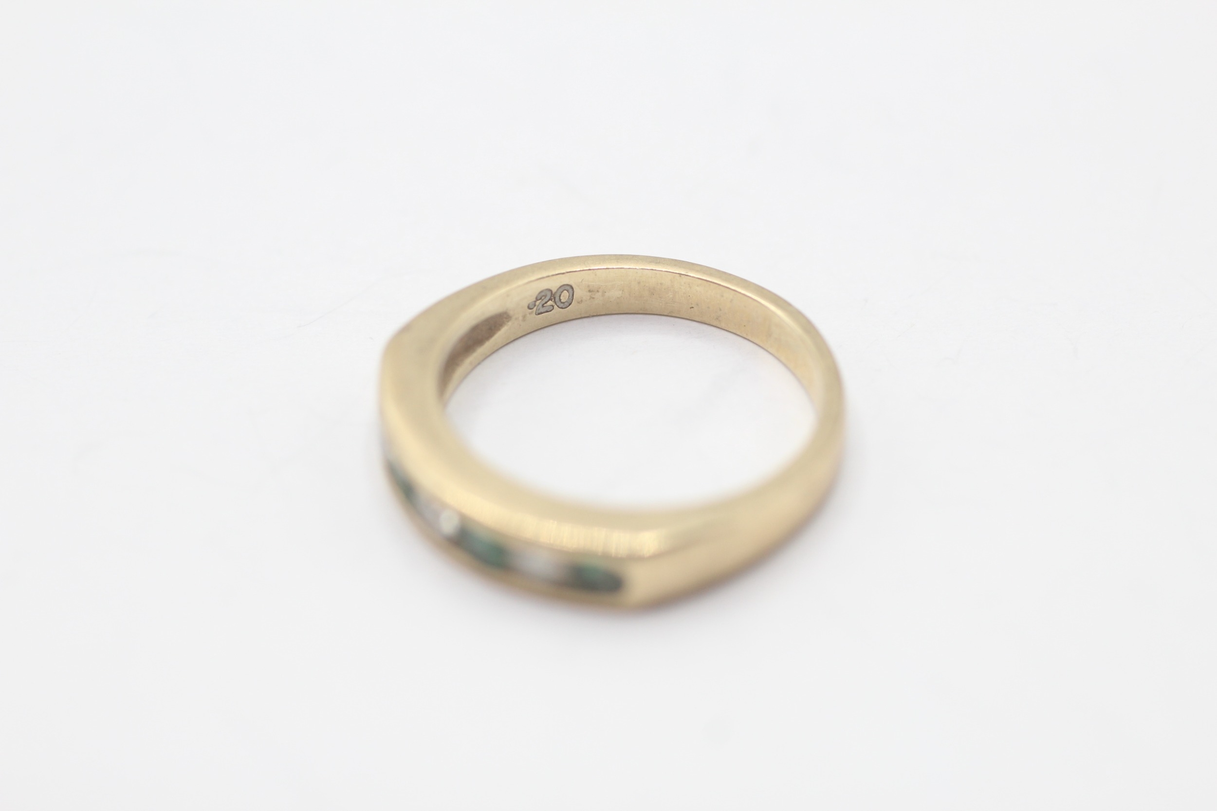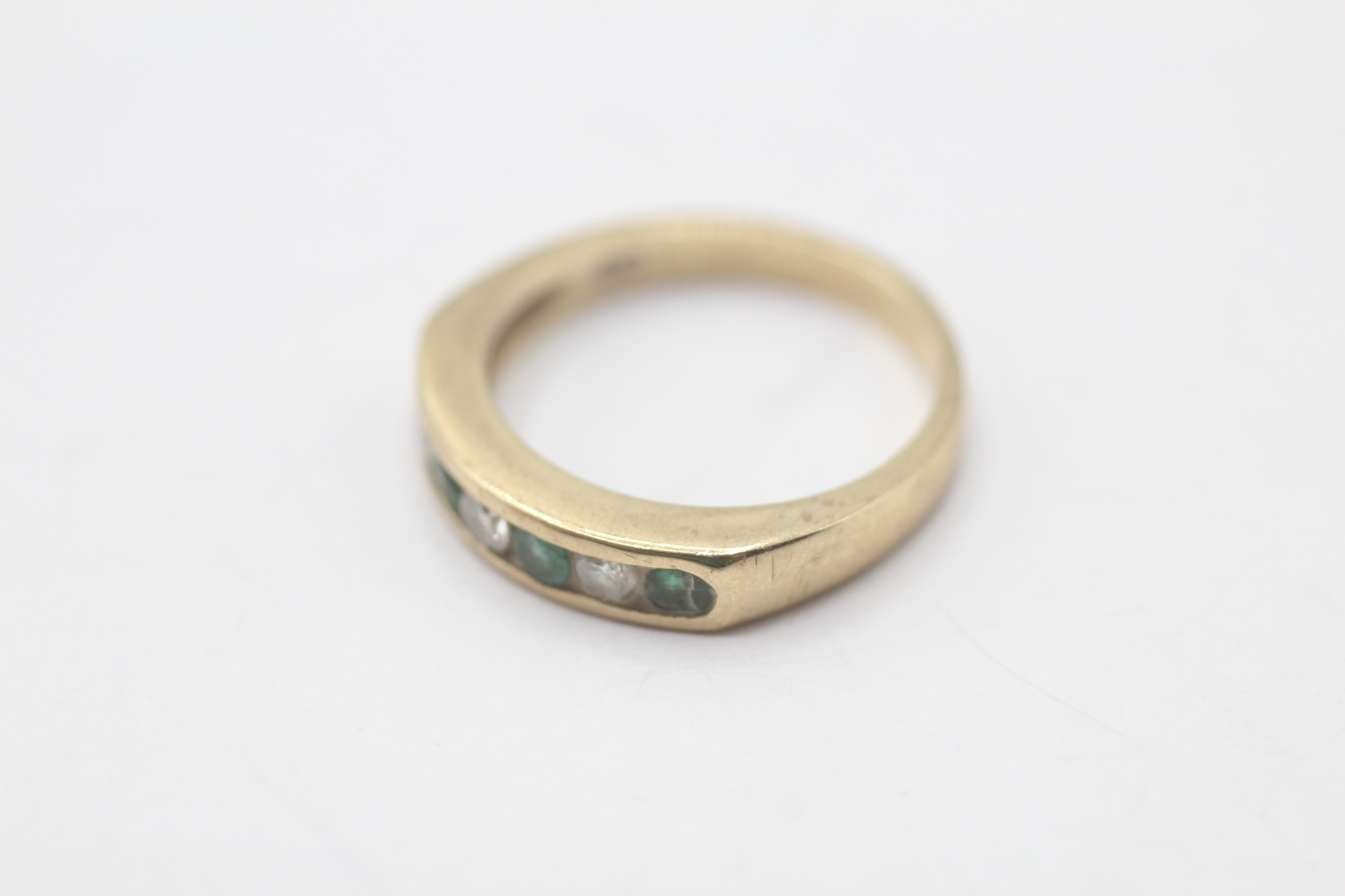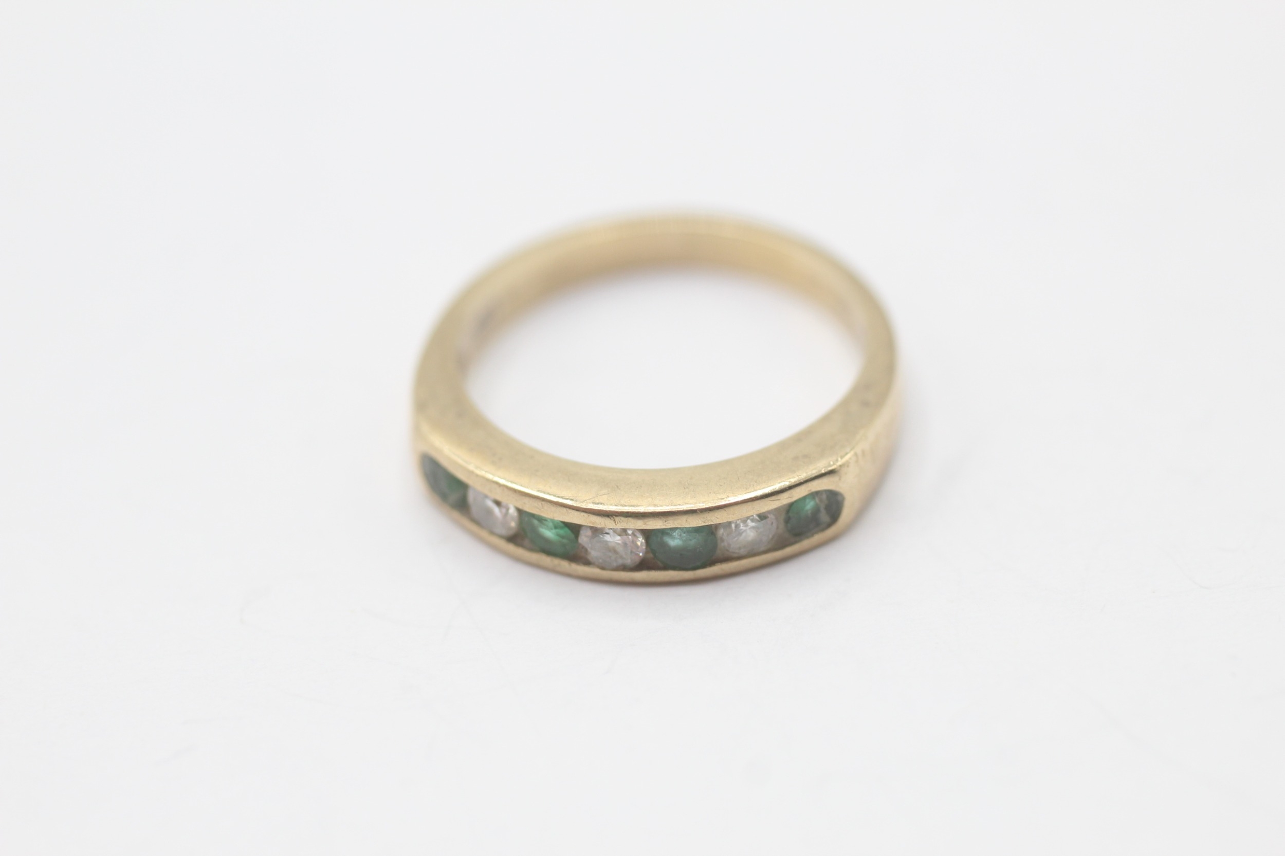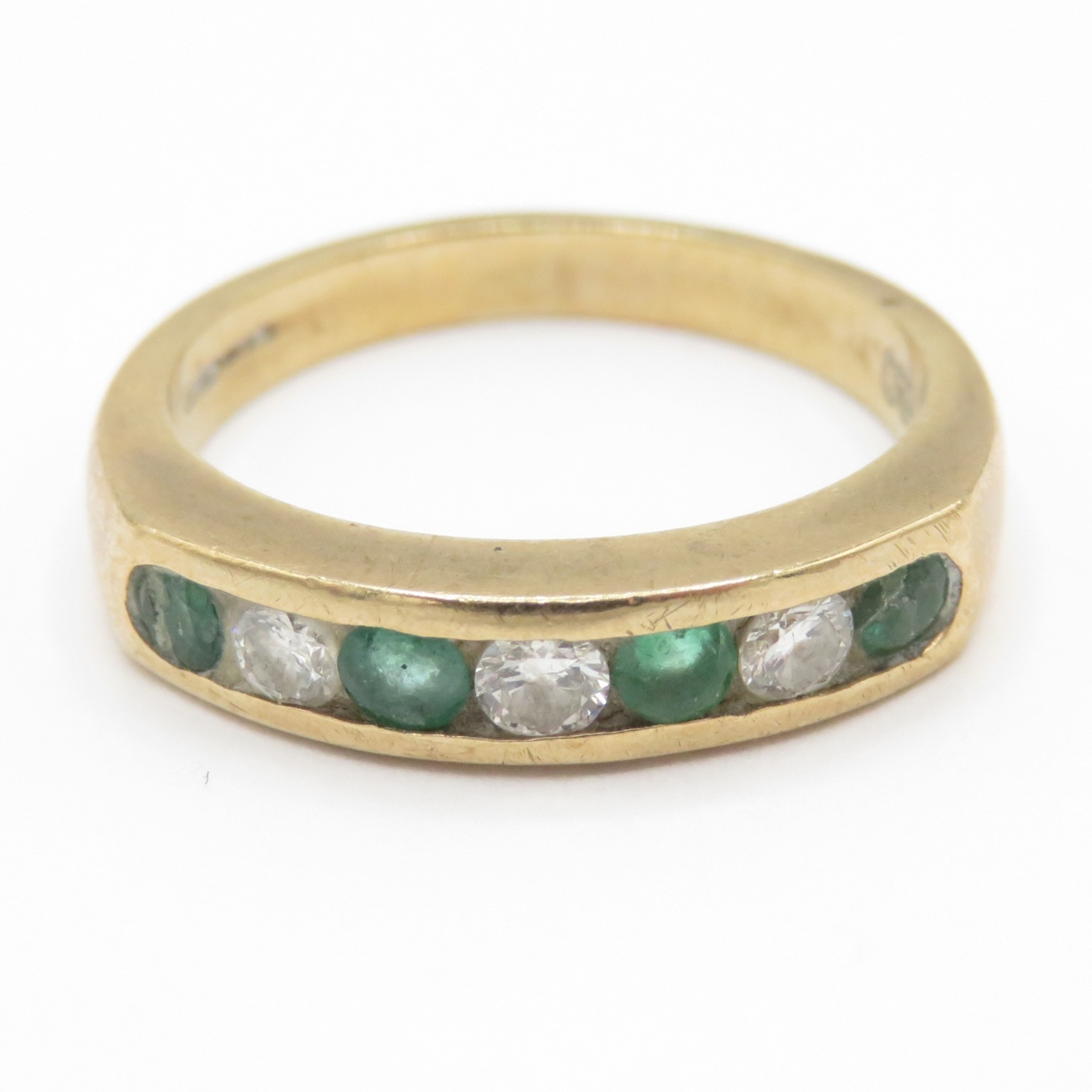 9ct gold emerald & diamond half eternity ring (3.1g) Size L