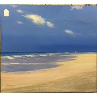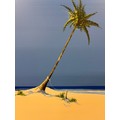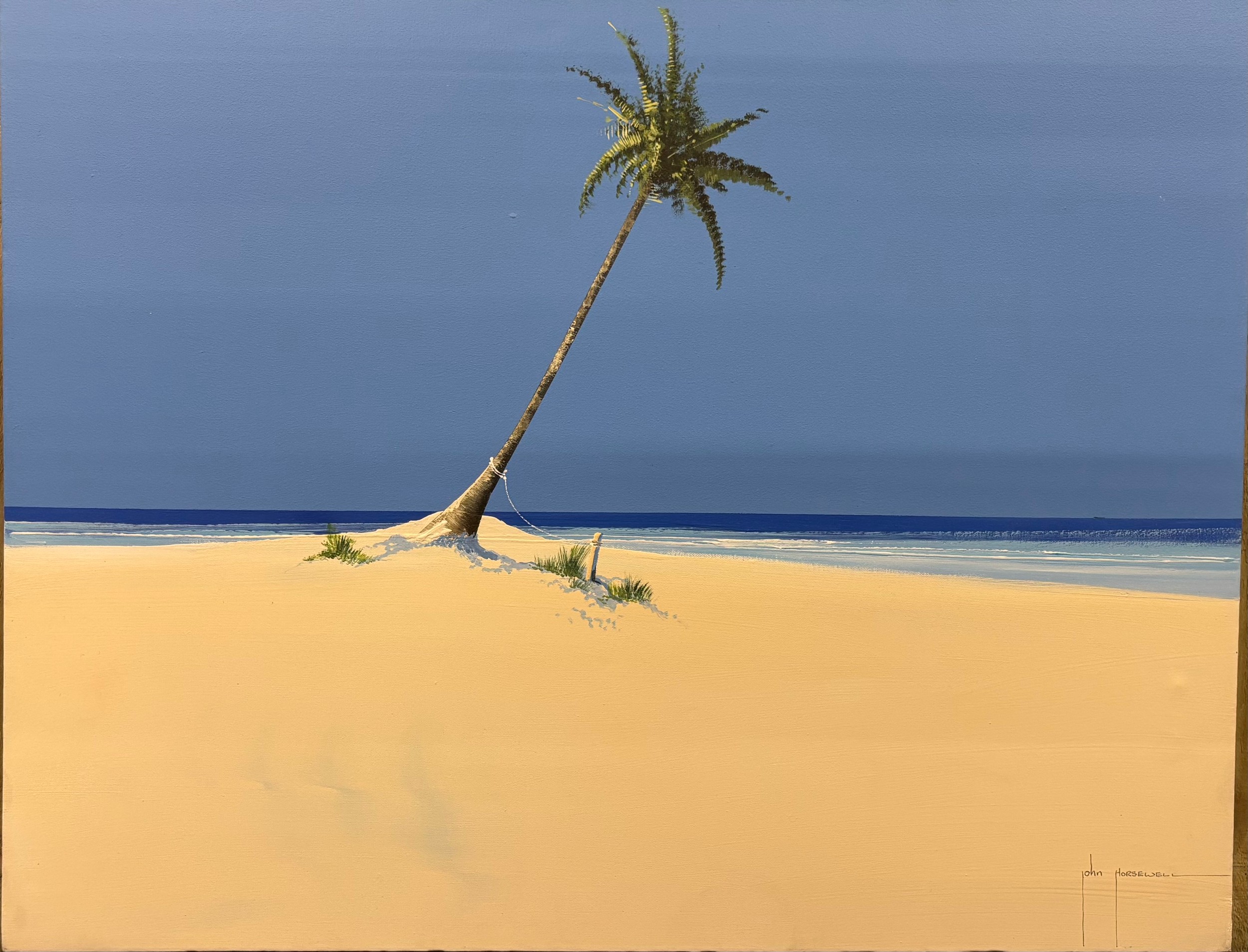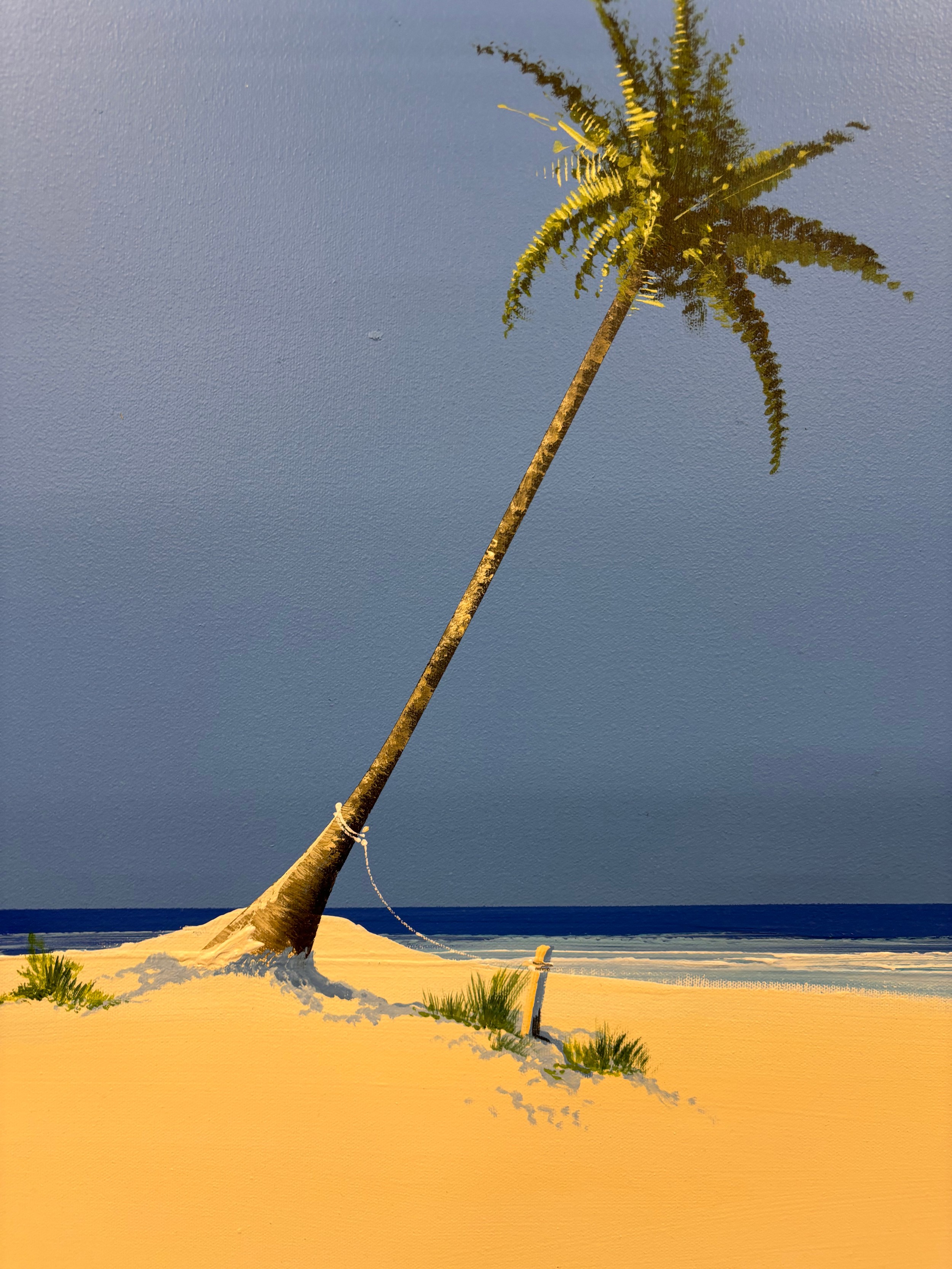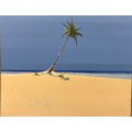 Original painting on canvas depicting Palm tree, beach and sea line. Signed. 70x90cm.