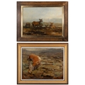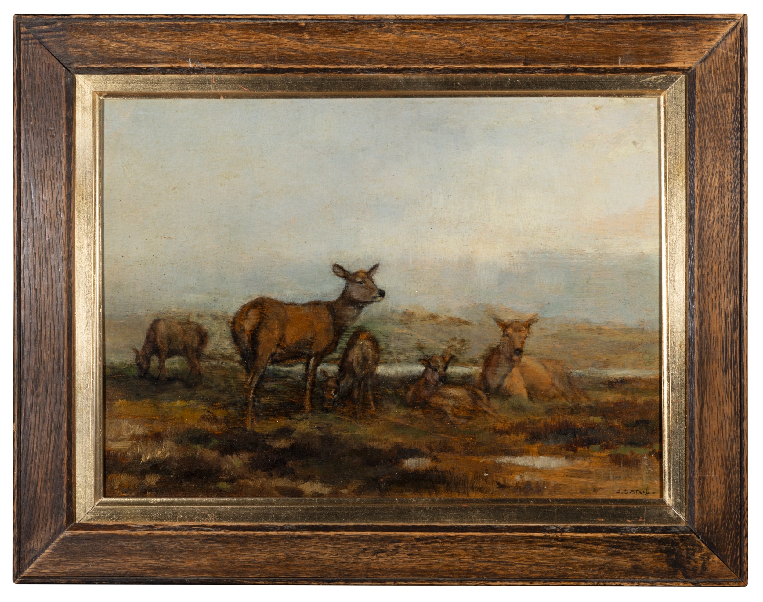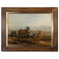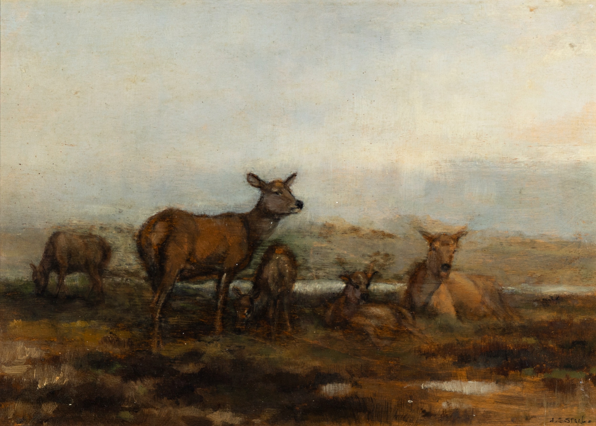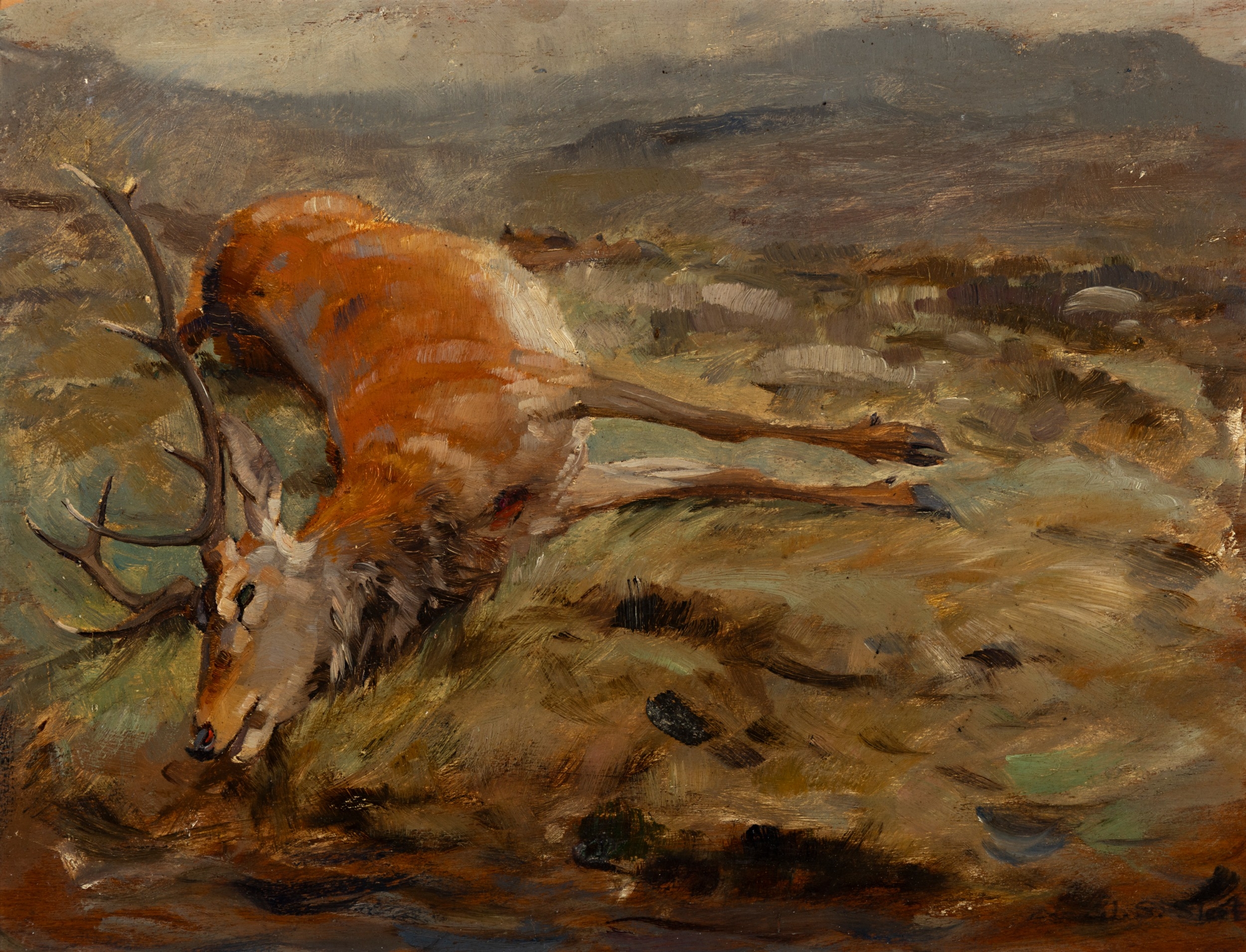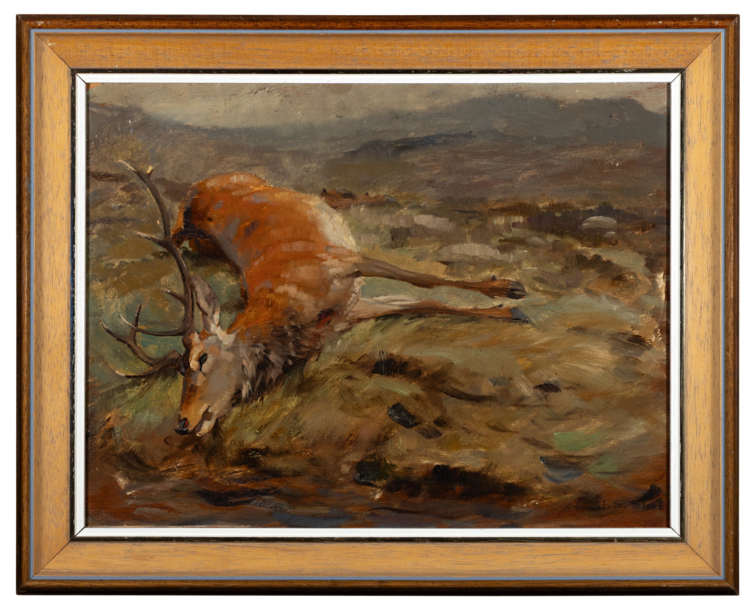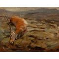 JOHN SYDNEY STEEL (1863-1932) Fallen Stag; Deer, A pair, Oil on board, 24 x 32cm Signed