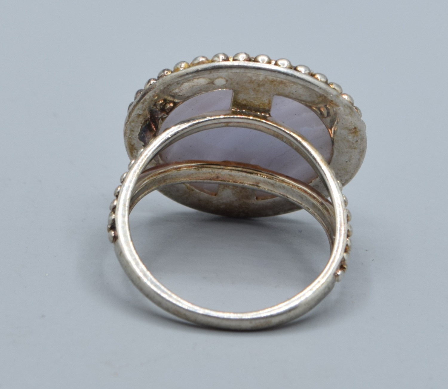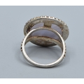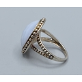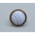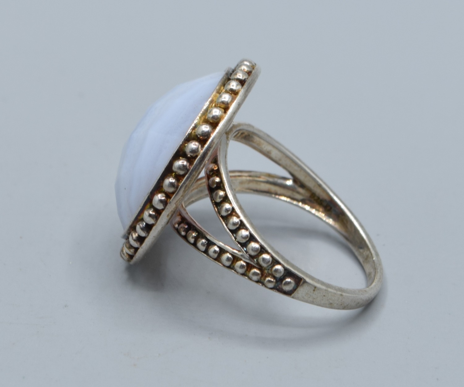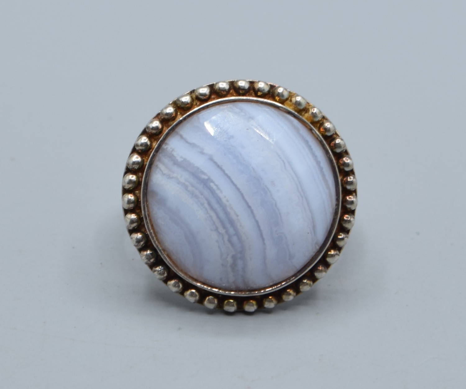 925 silver ladies Blue Lace Agate round cabochon facetted statement ring the head being 2.1cm diameter size O