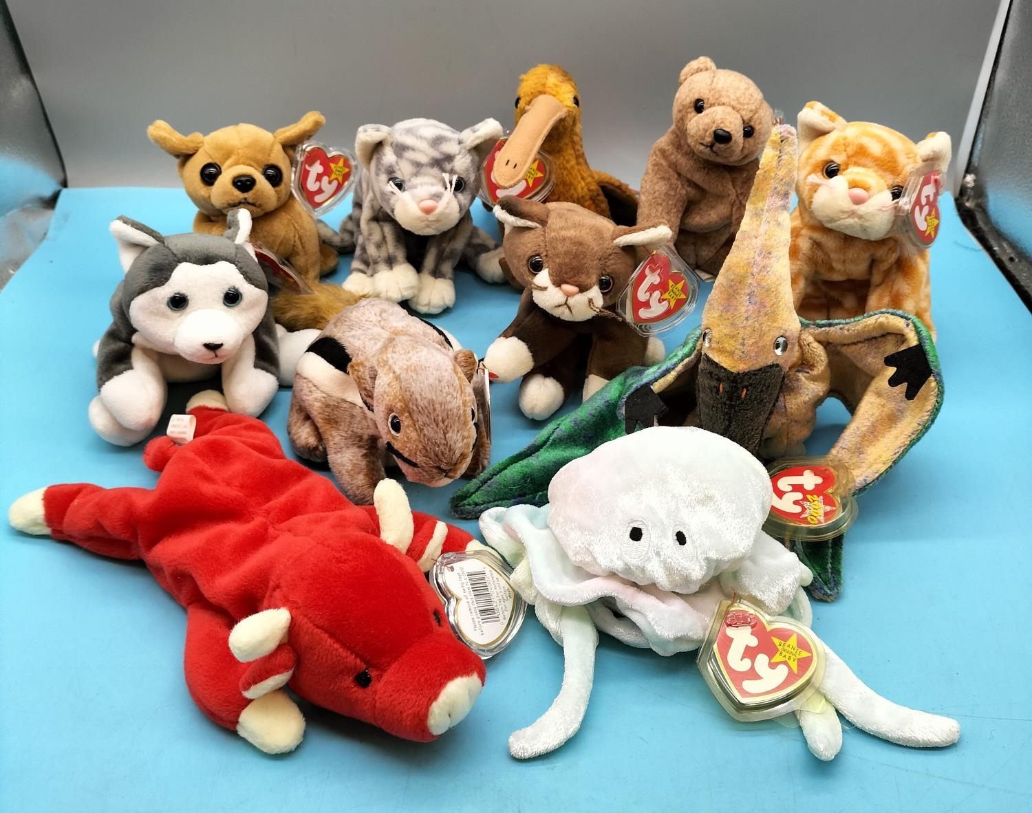11 x TY Beanie Babies to include Snort, Swoop, Nanook, Chipper, Pounce, Goochy, etc.