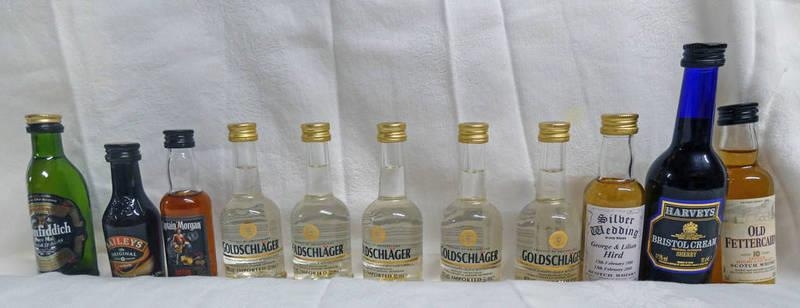 SELECTION OF VARIOUS MINIATURES TO INCLUDE OLD FETTERCAIRN 10 YEAR OLD SINGLE MALT WHISKY, 5 X GOLDSCHLAGER, GLENFIDDICH PURE MALT, ETC