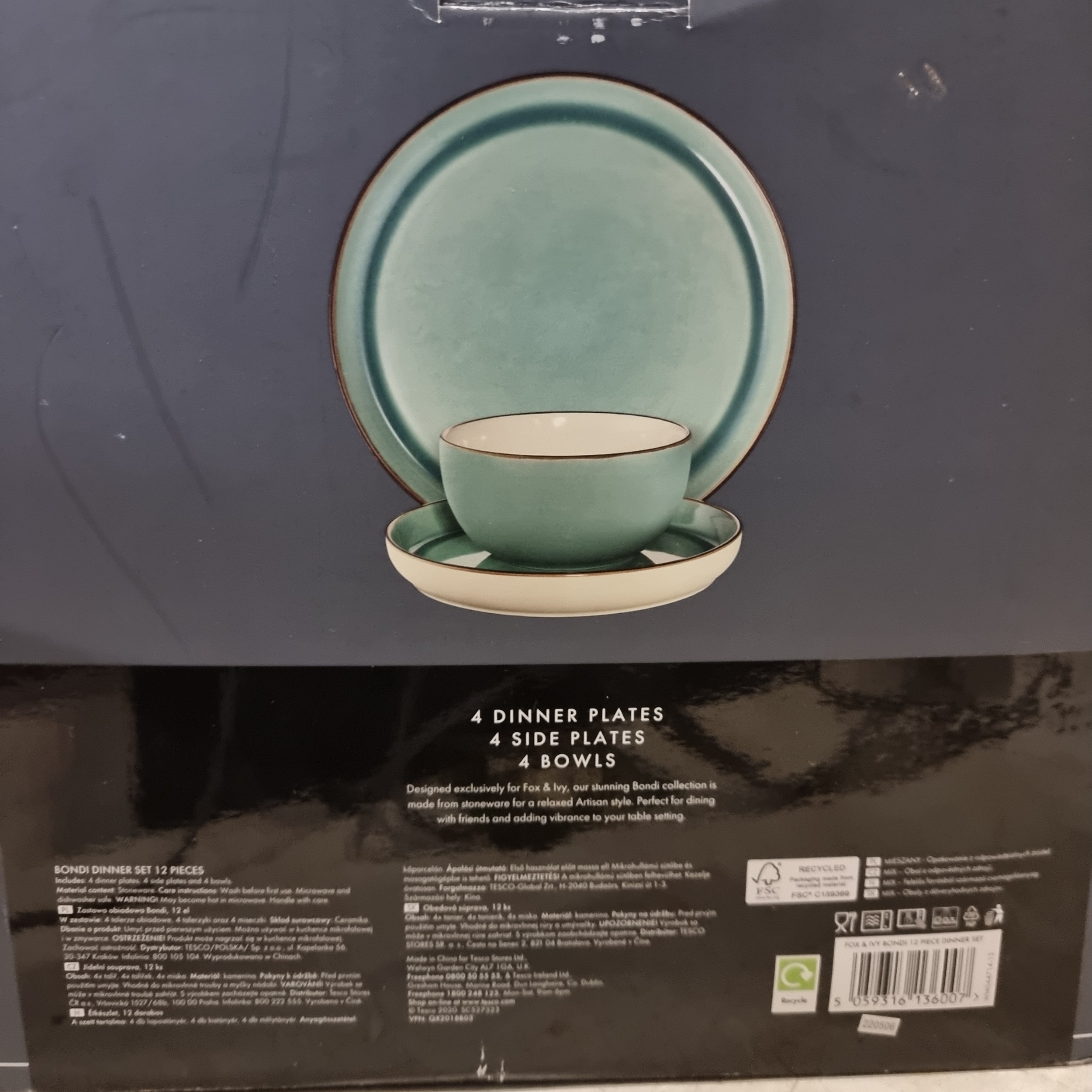 A twelve-piece FOX IVY dinner set in the Bondi series. In original box. RRP €65 at Tesco.