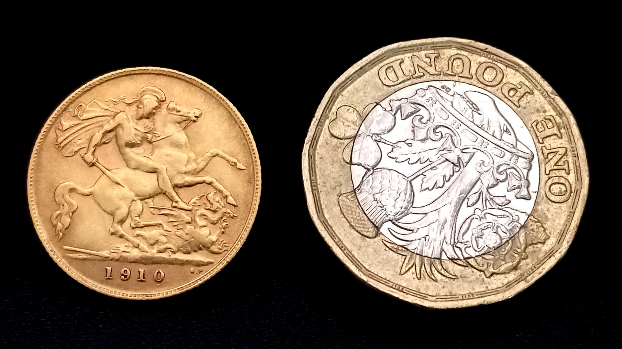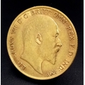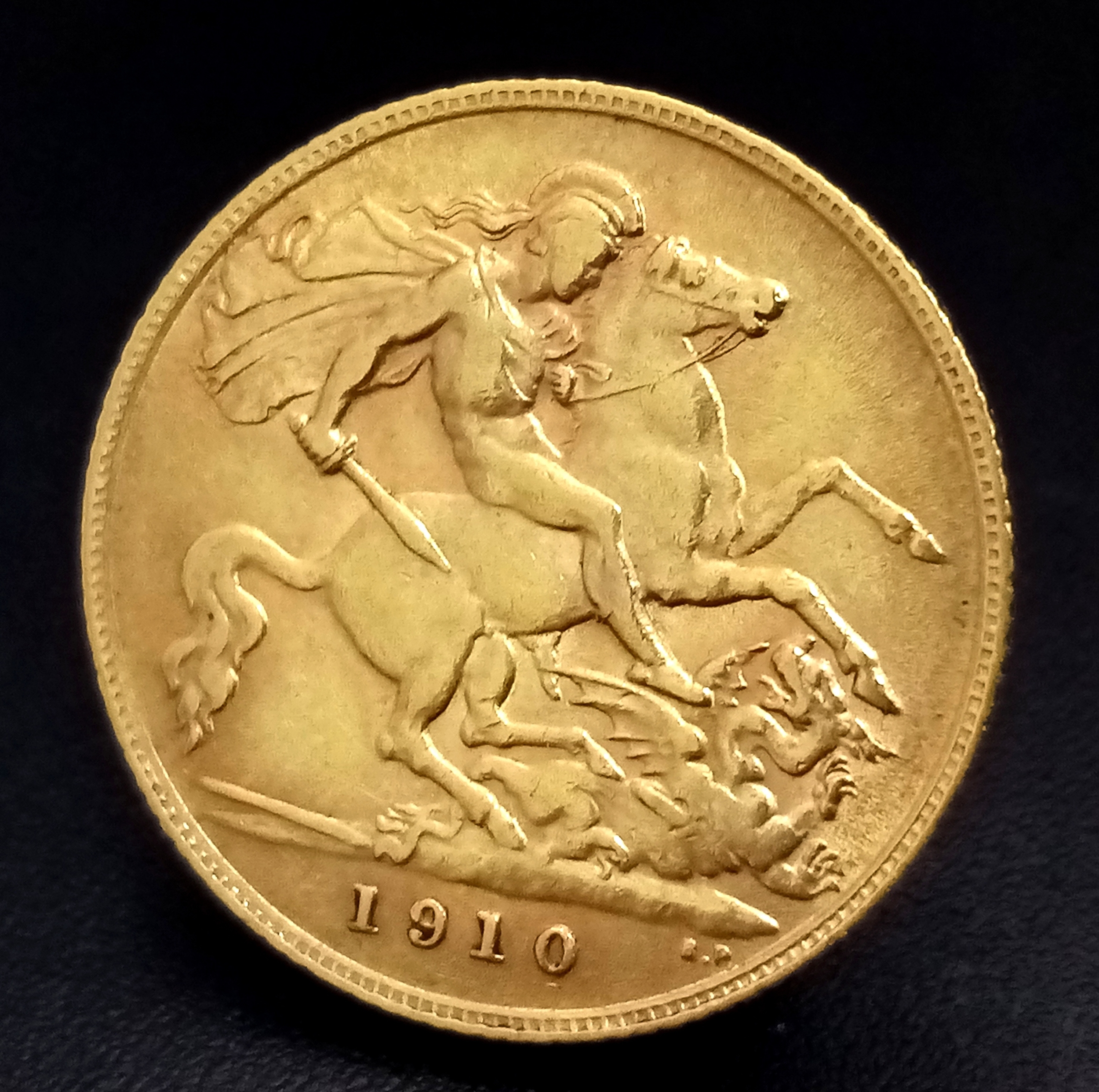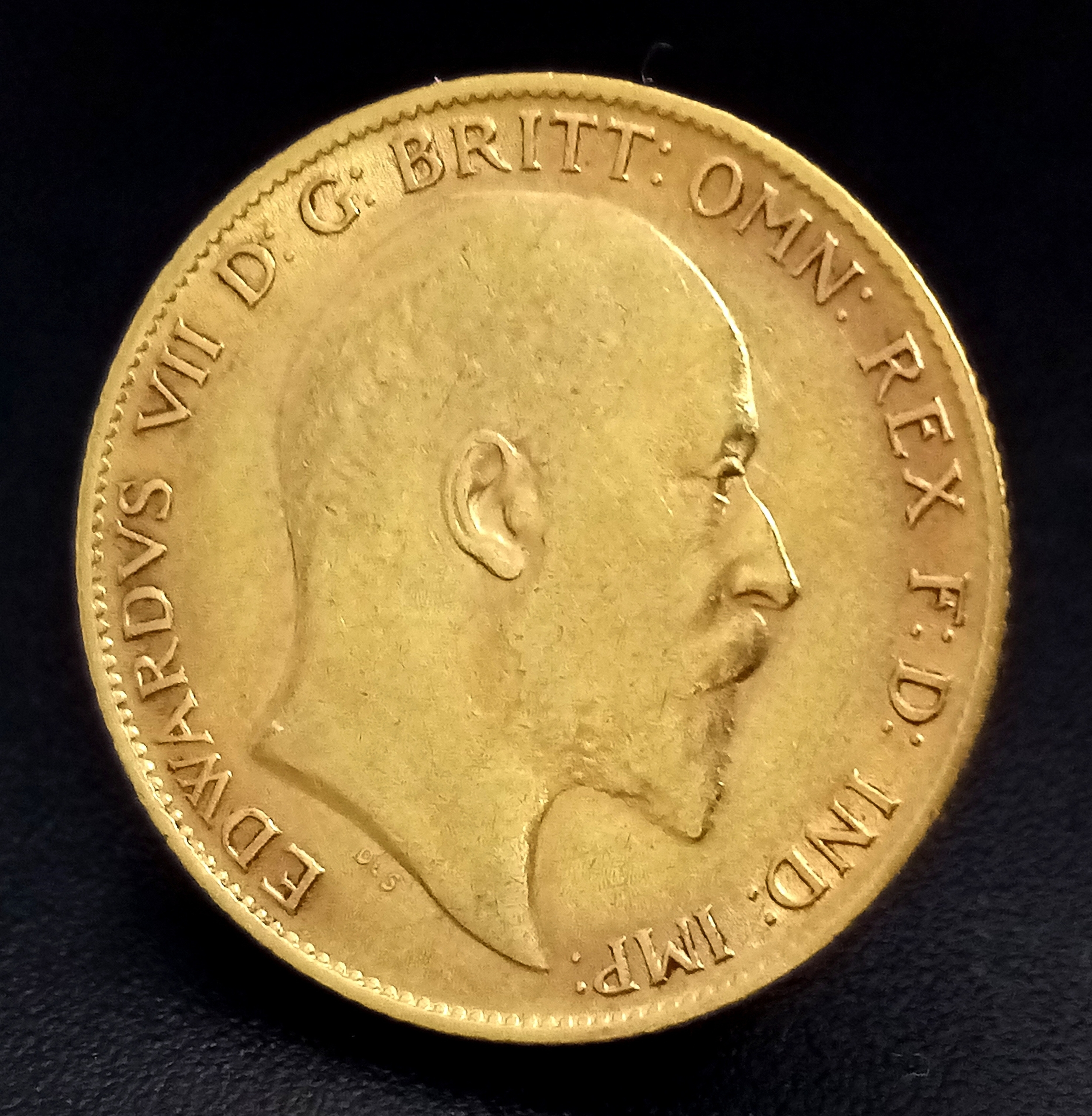A 1910 KING EDWARD VII, LONDON MINT, HALF SOVEREIGN COIN. 22...