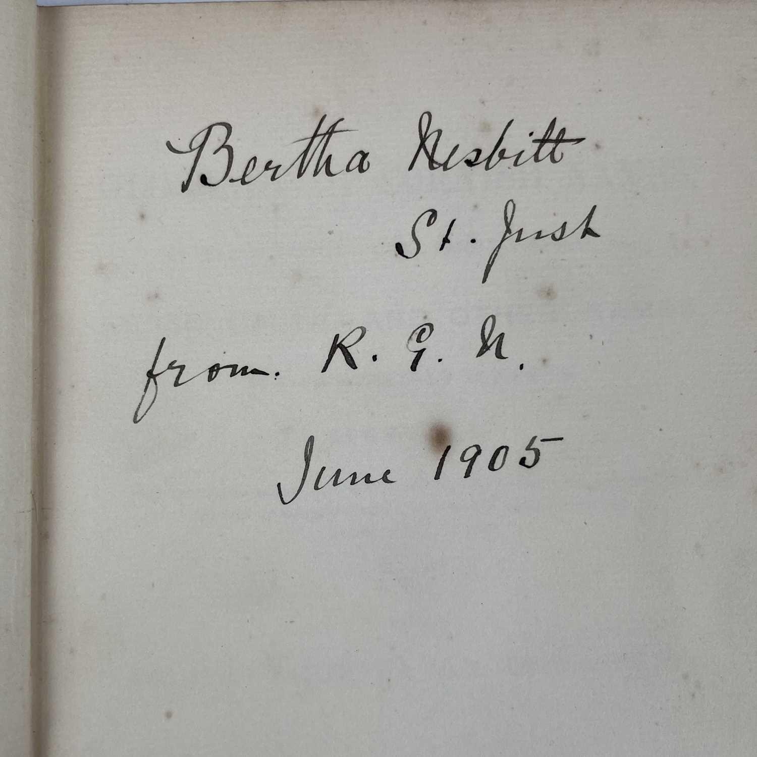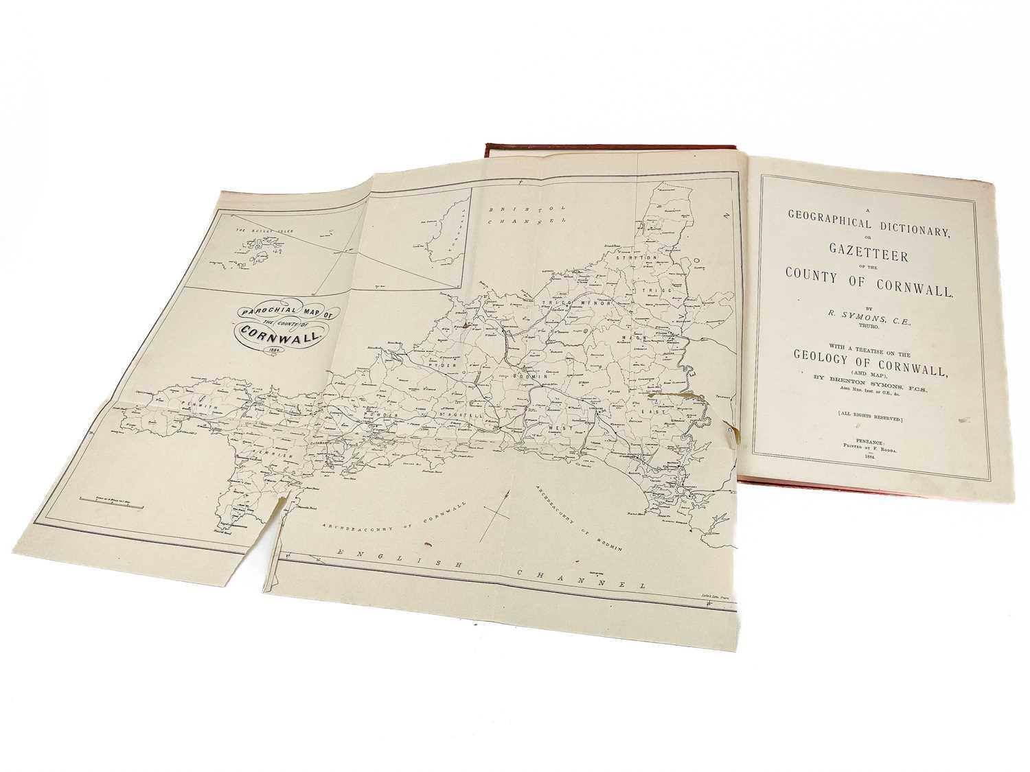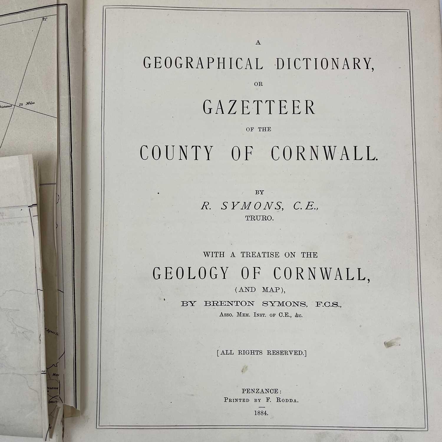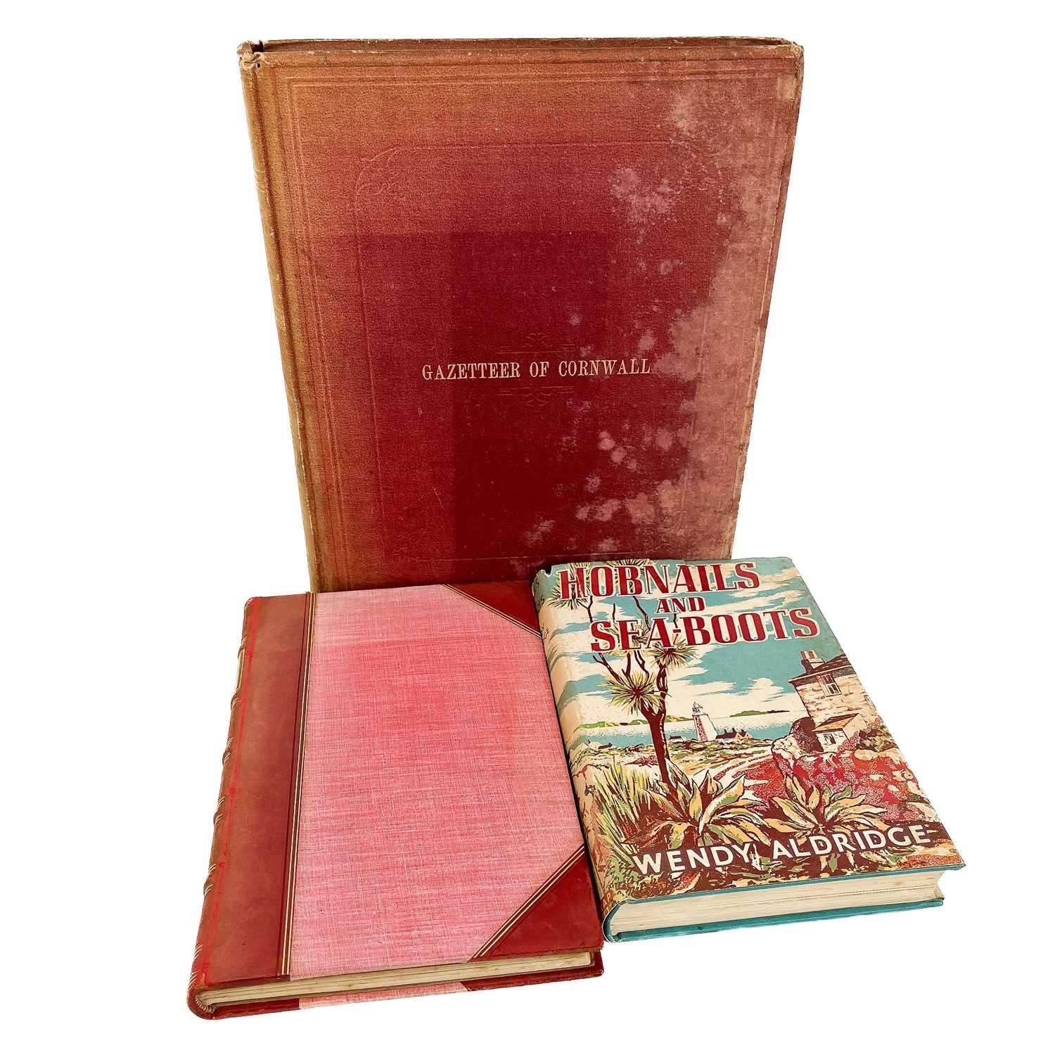 Cornwall Interest A Glossary of Cornish Names Modern, Local, Family, Personal, Etc., 20,000 Celtic and Other Names, Now or Formerly in Use in Cornwall; John Bannister, 1871; handsomely rebound; together with A General Dictionary or Gazetteer of the County of Cornwall; R. Symons, C.E., Truro, With a Treatise on the Geology of Cornwall and map, tears to map; F. Rodda, 1884; and Hobnails and Seaboots, Flower Farming in the Isles of Scilly; Wendy Aldridge; with fifteen plates in half-tone and two maps; second impression; unclipped; George G. Harrap & Co. Ltd.