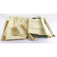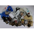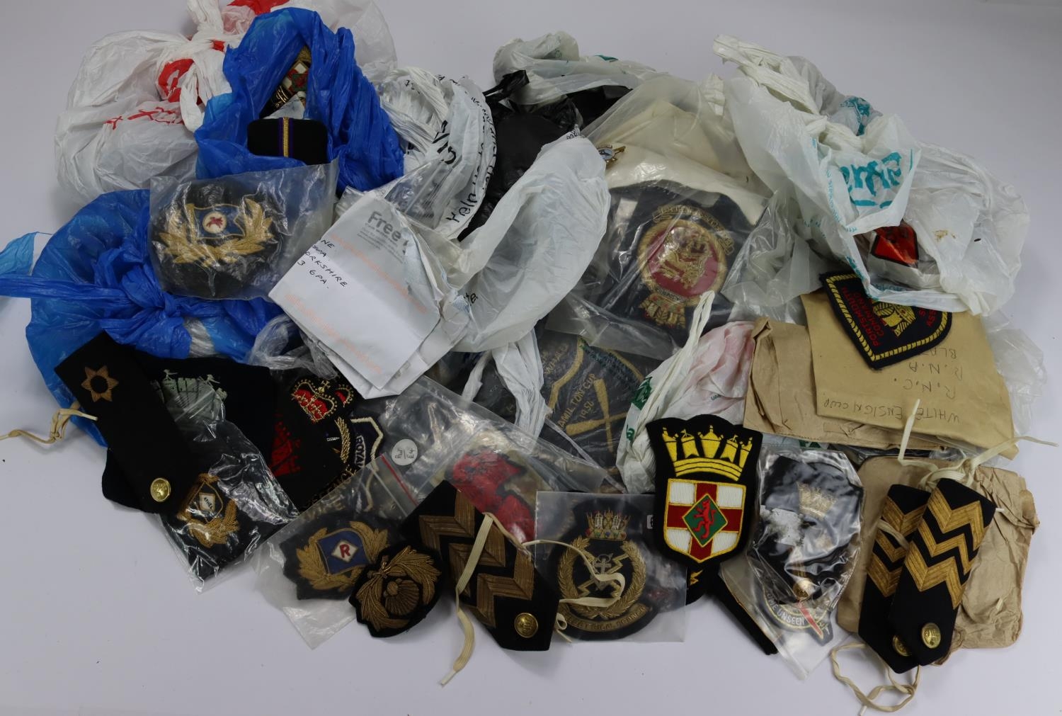 Merchant Navy / Shipping Lines interesting box of officers cloth bullion cap badges, rank insignia, etc. Needs careful viewing. Many items (Qty)