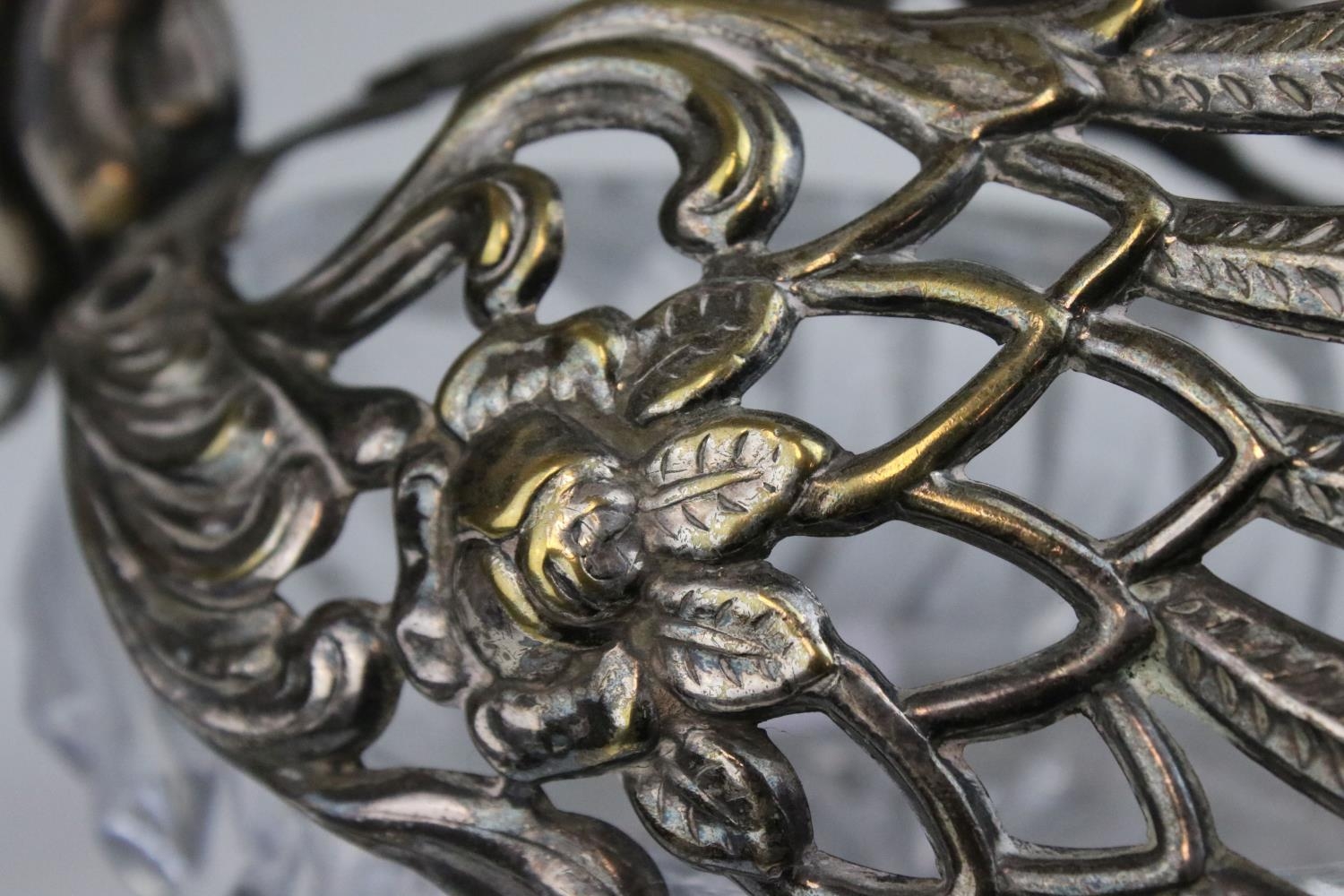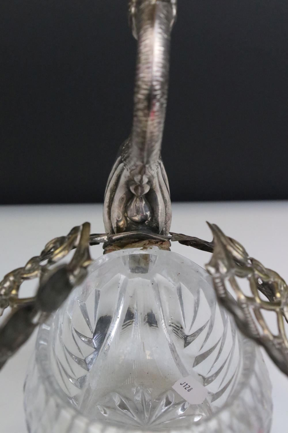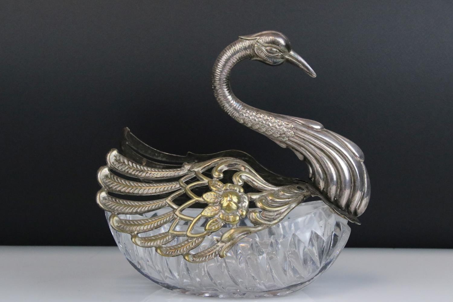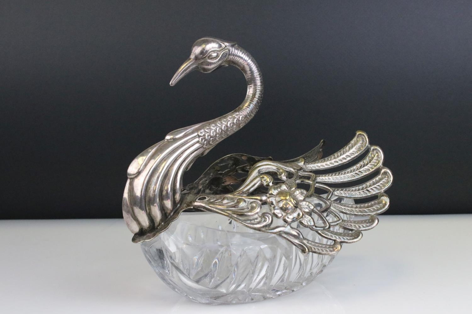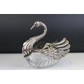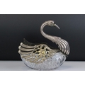 Continental silver plated and glass table centrepiece in the form of a swan.