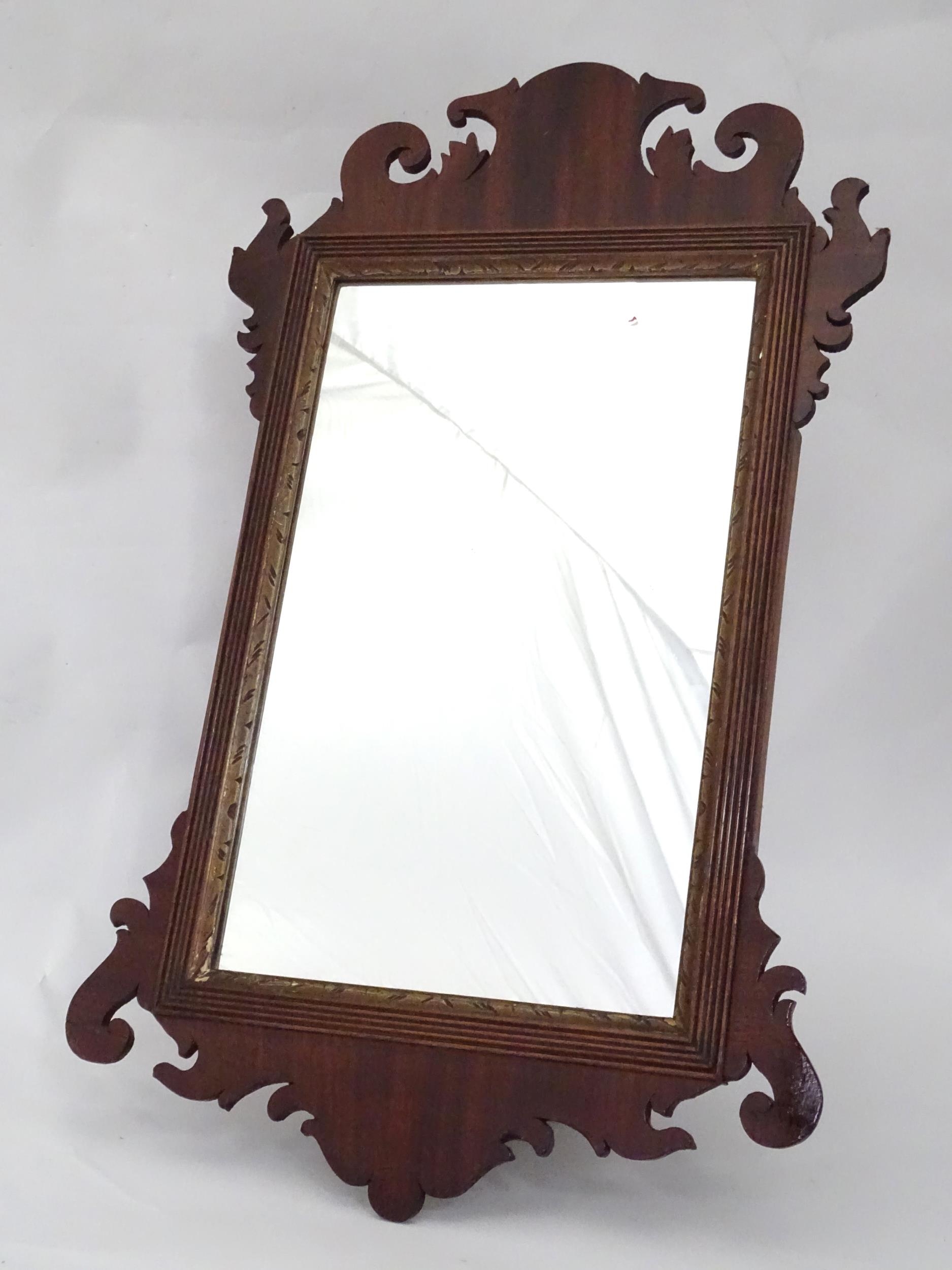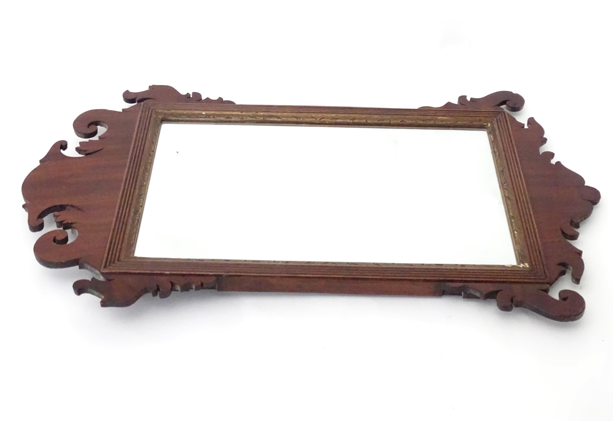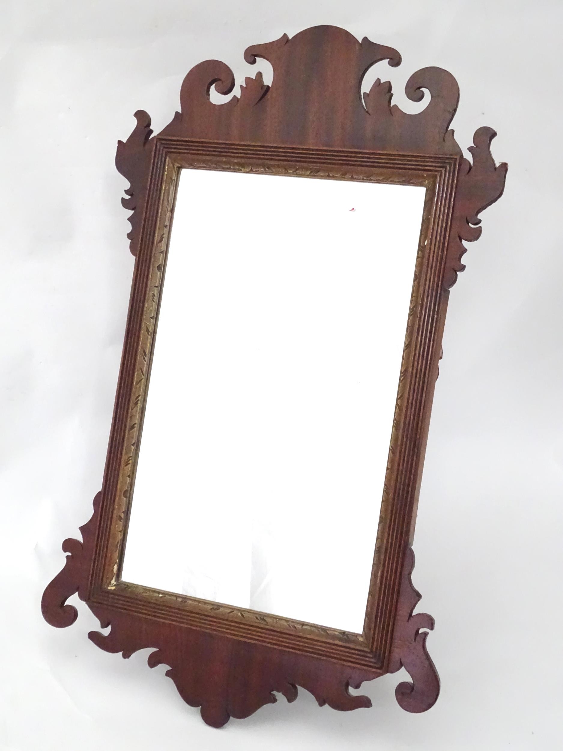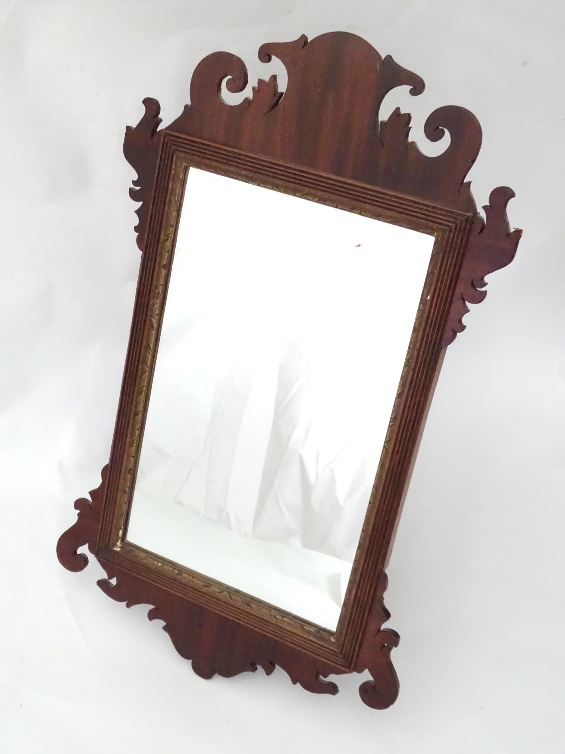 A 20thC Georgian style wall mirror, with carved mahogany frame. Approx. 25 1/2" high overall