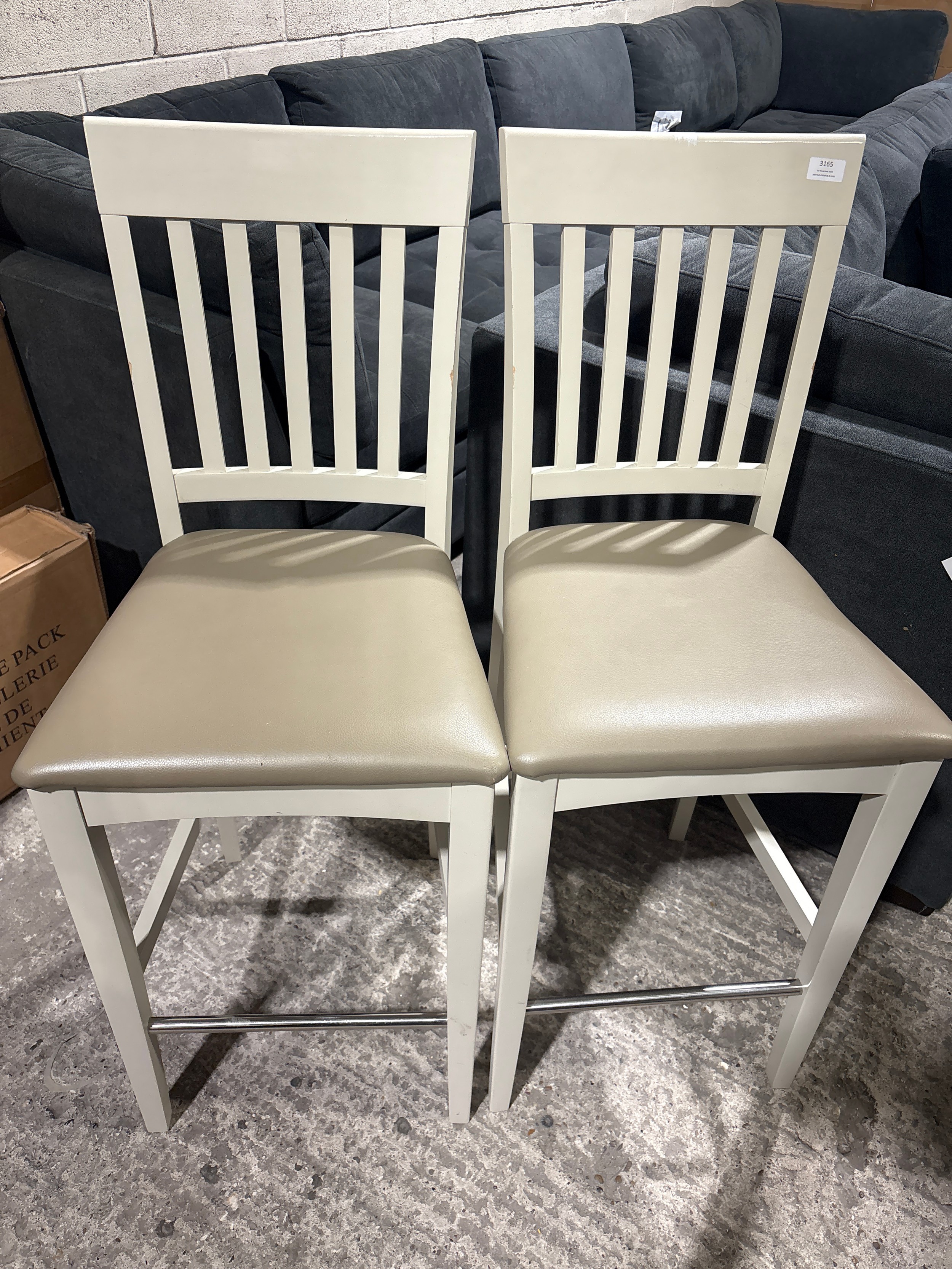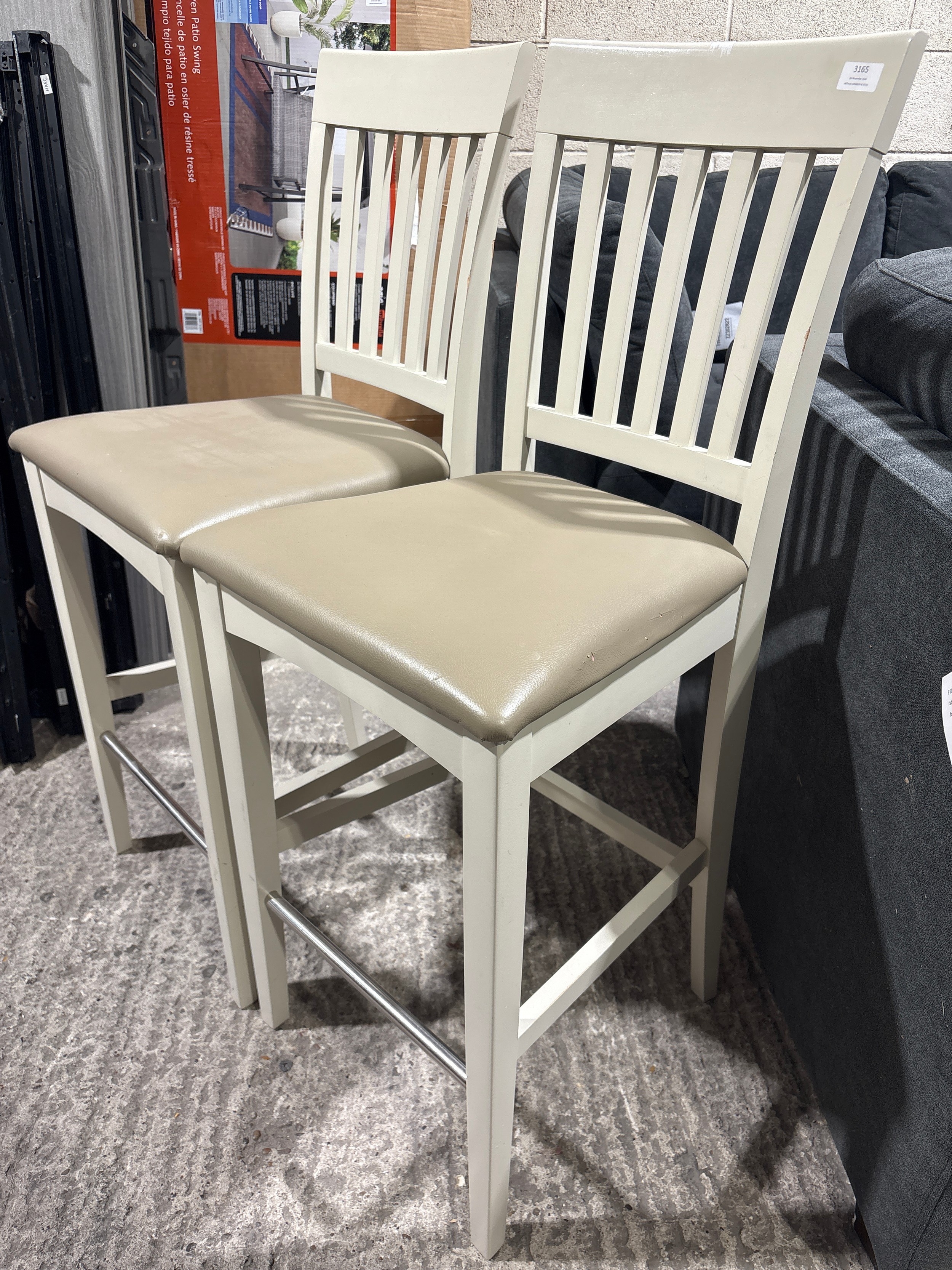 A pair of beige painted barstools