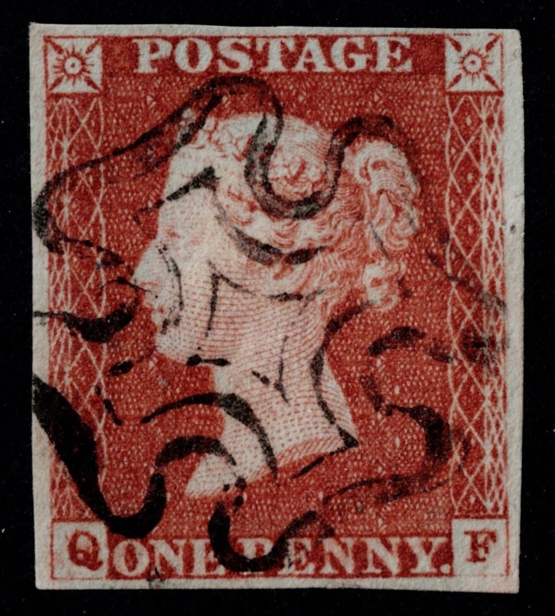 GB 1841 1d pale red-brown plate 25 QF 4 good margins superb used full maltese cross sg9 Cat. £55