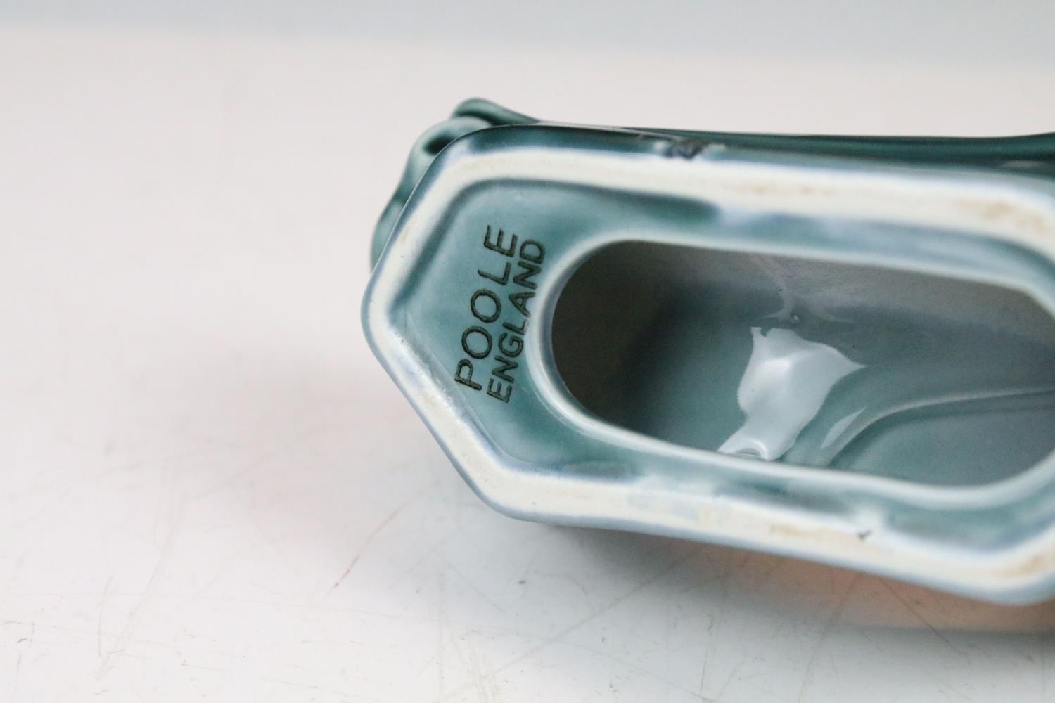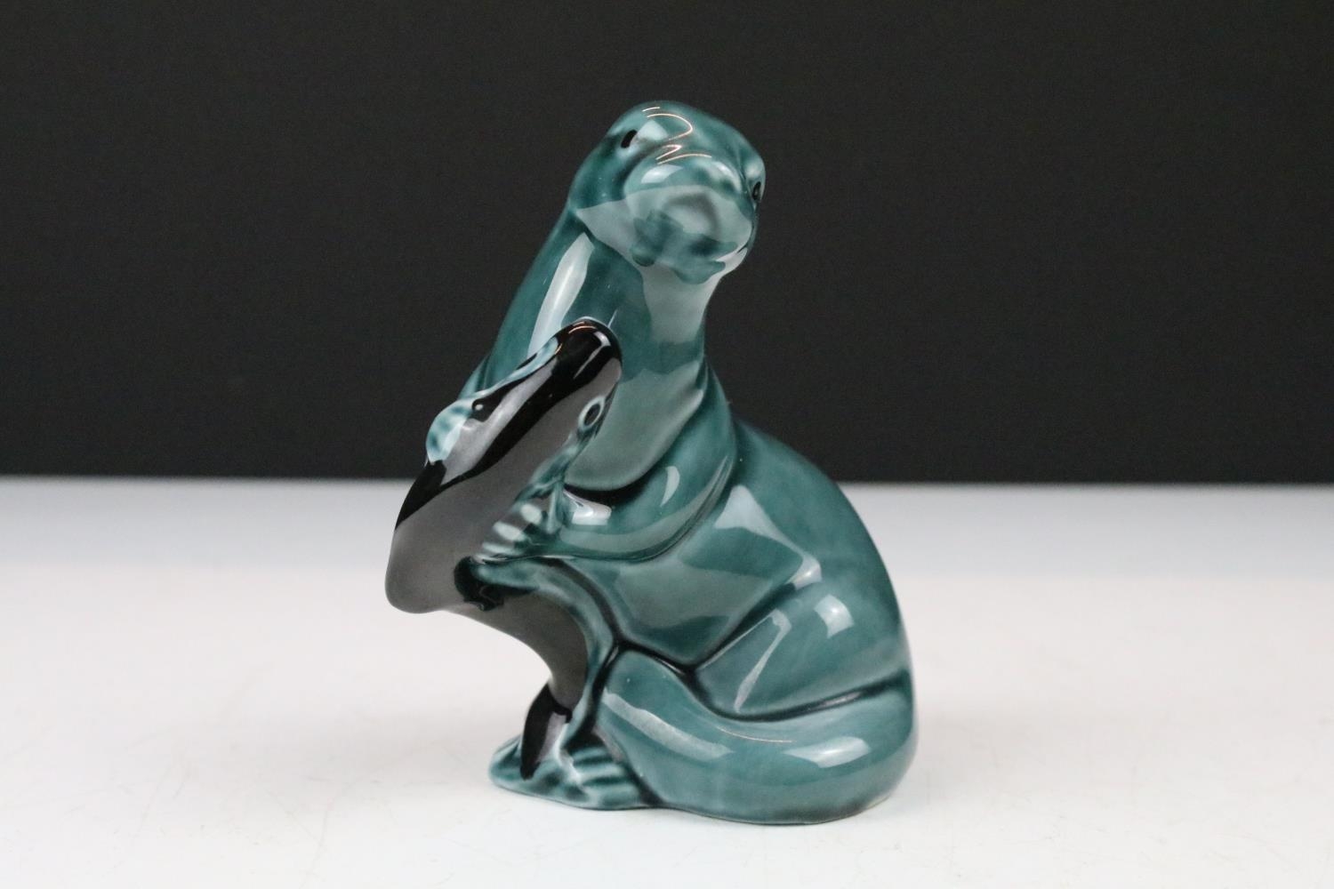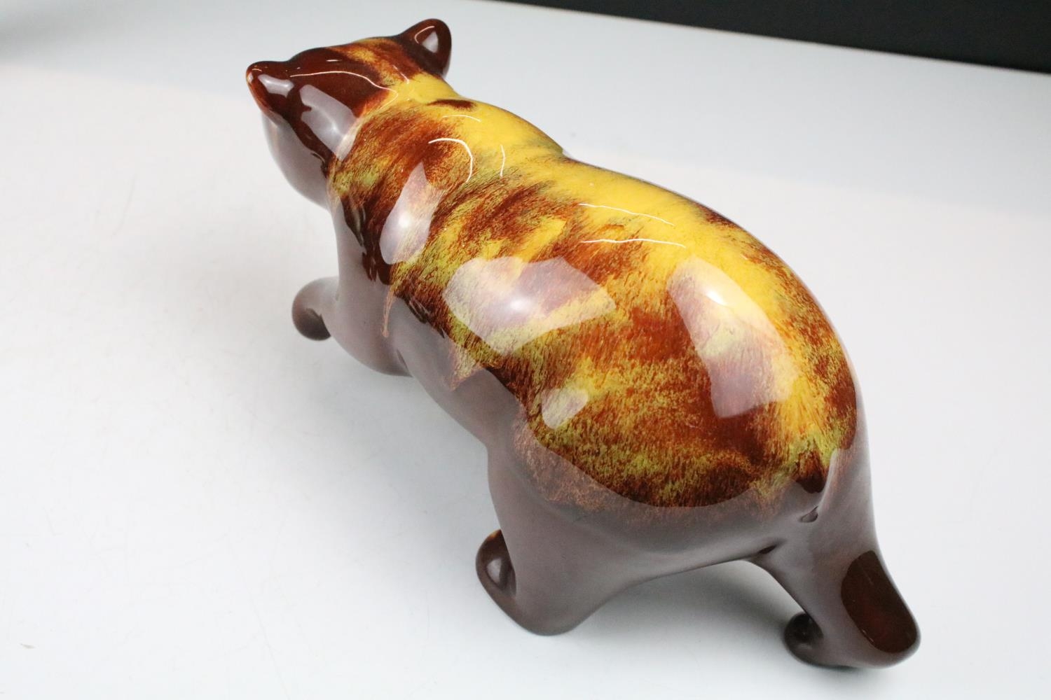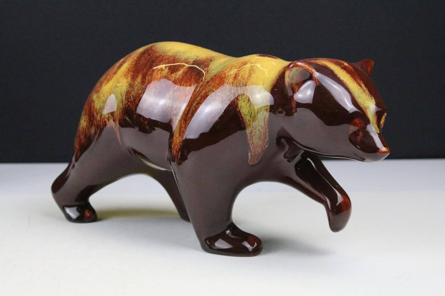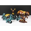 Three Blue Mountain brown animal figures to include a large bear, together with four pieces of Poole Pottery