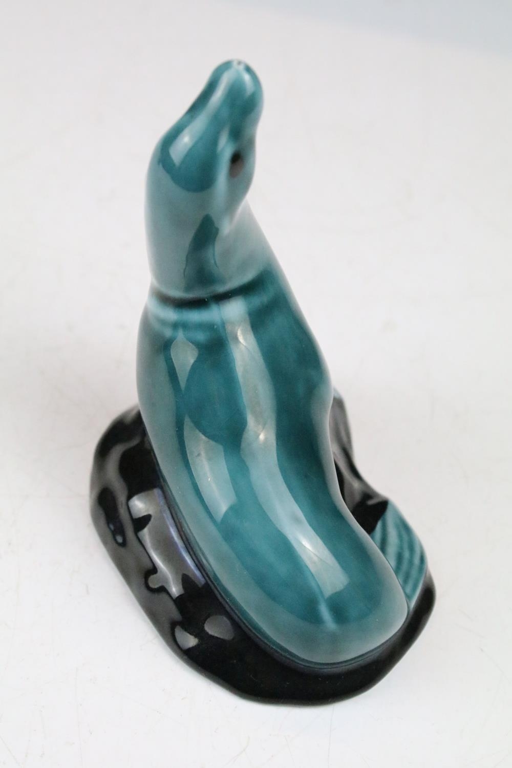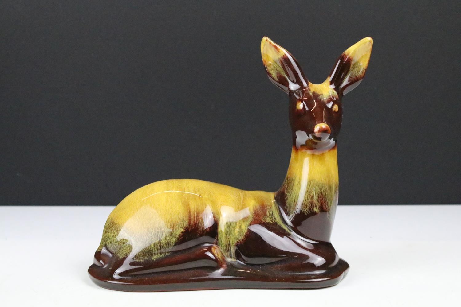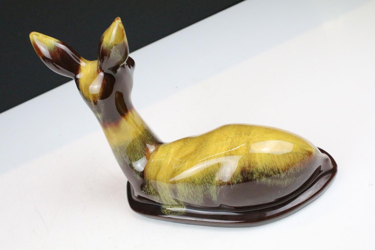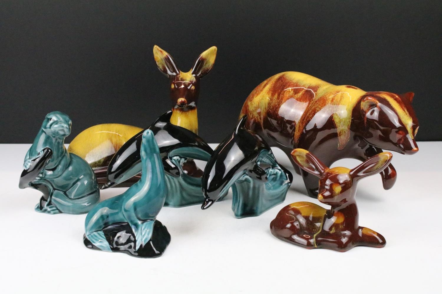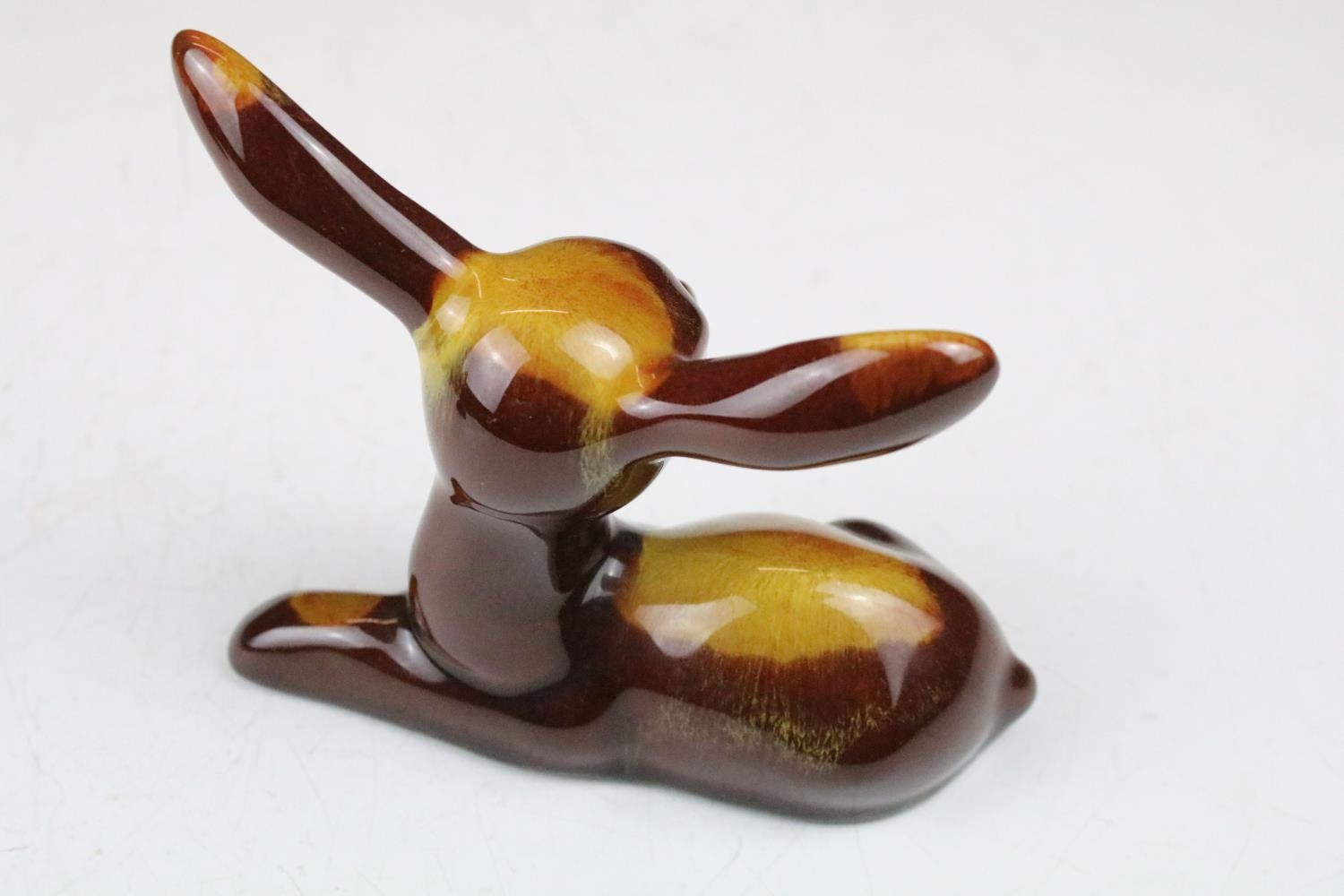 Three Blue Mountain brown animal figures to include a large bear, together with four pieces of Poole Pottery