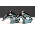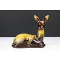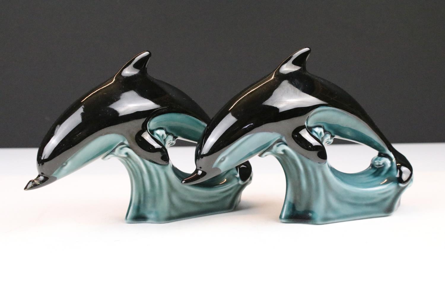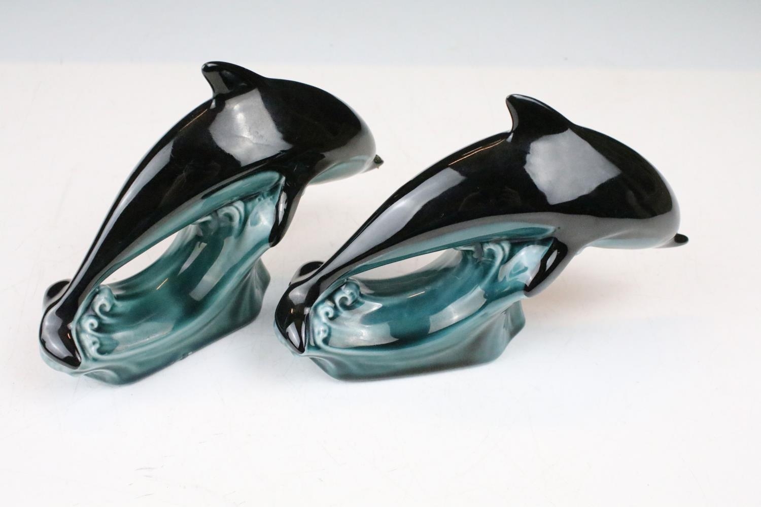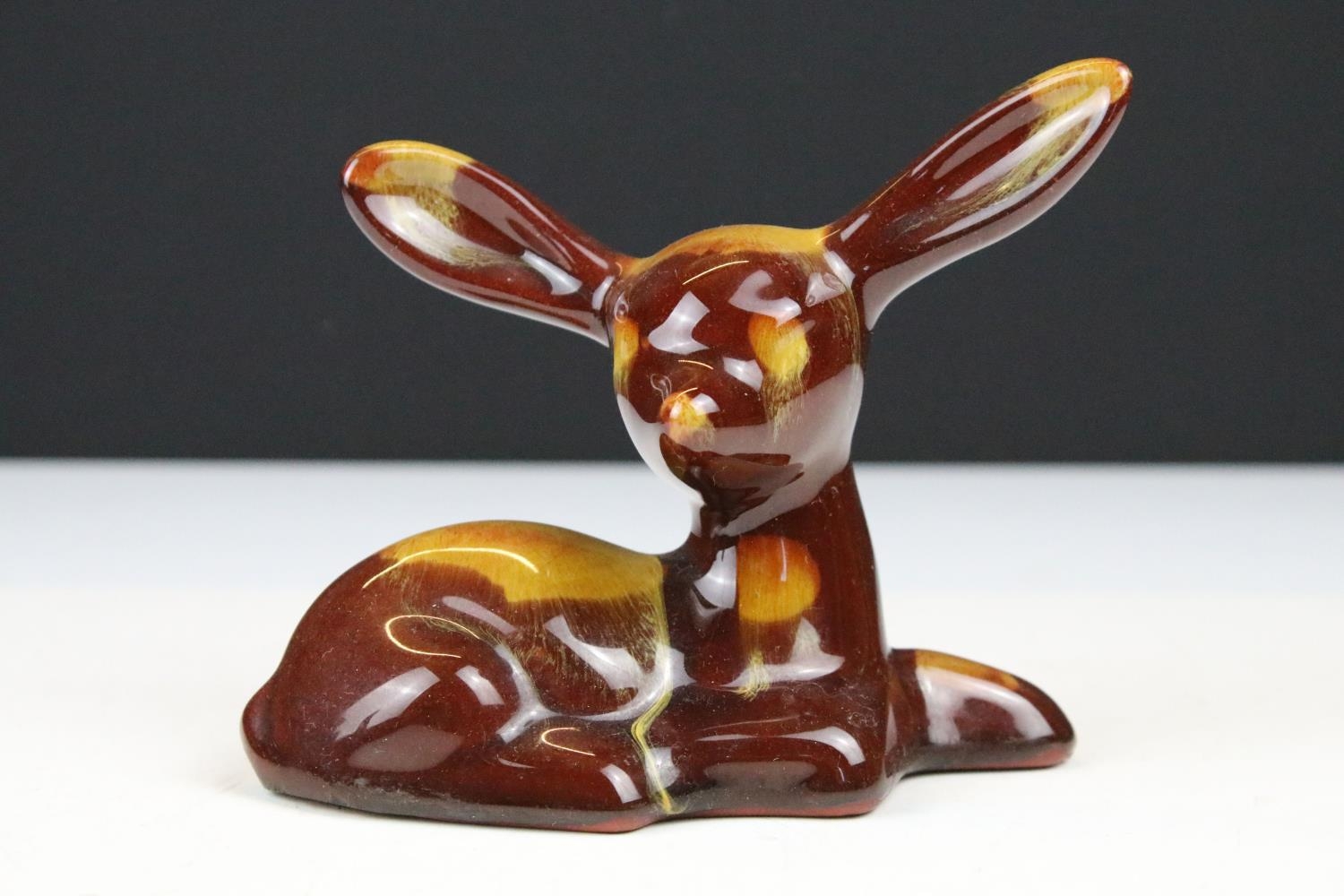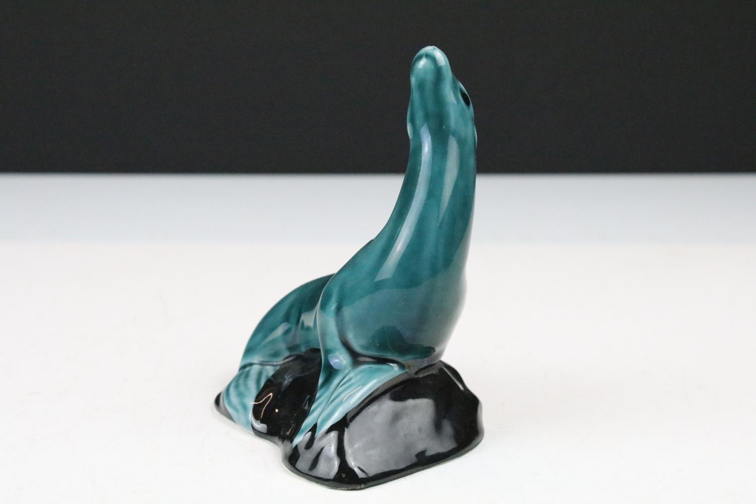 Three Blue Mountain brown animal figures to include a large bear, together with four pieces of Poole Pottery