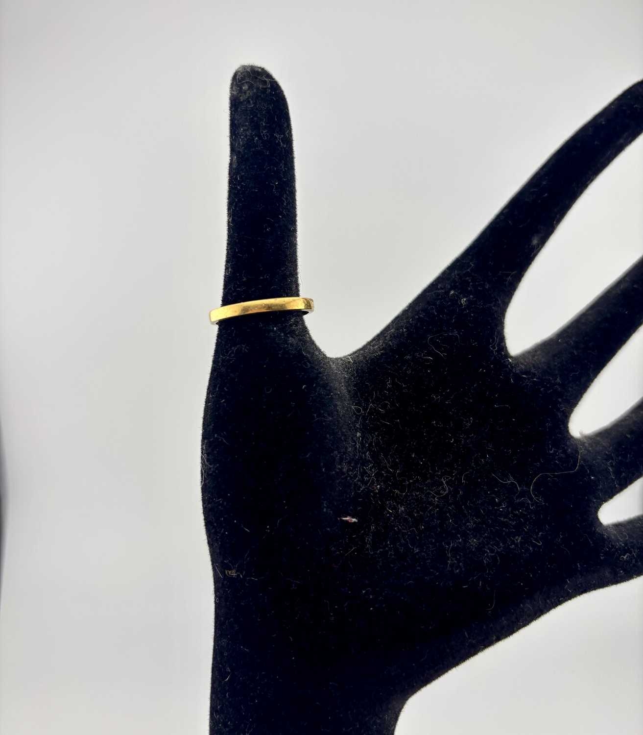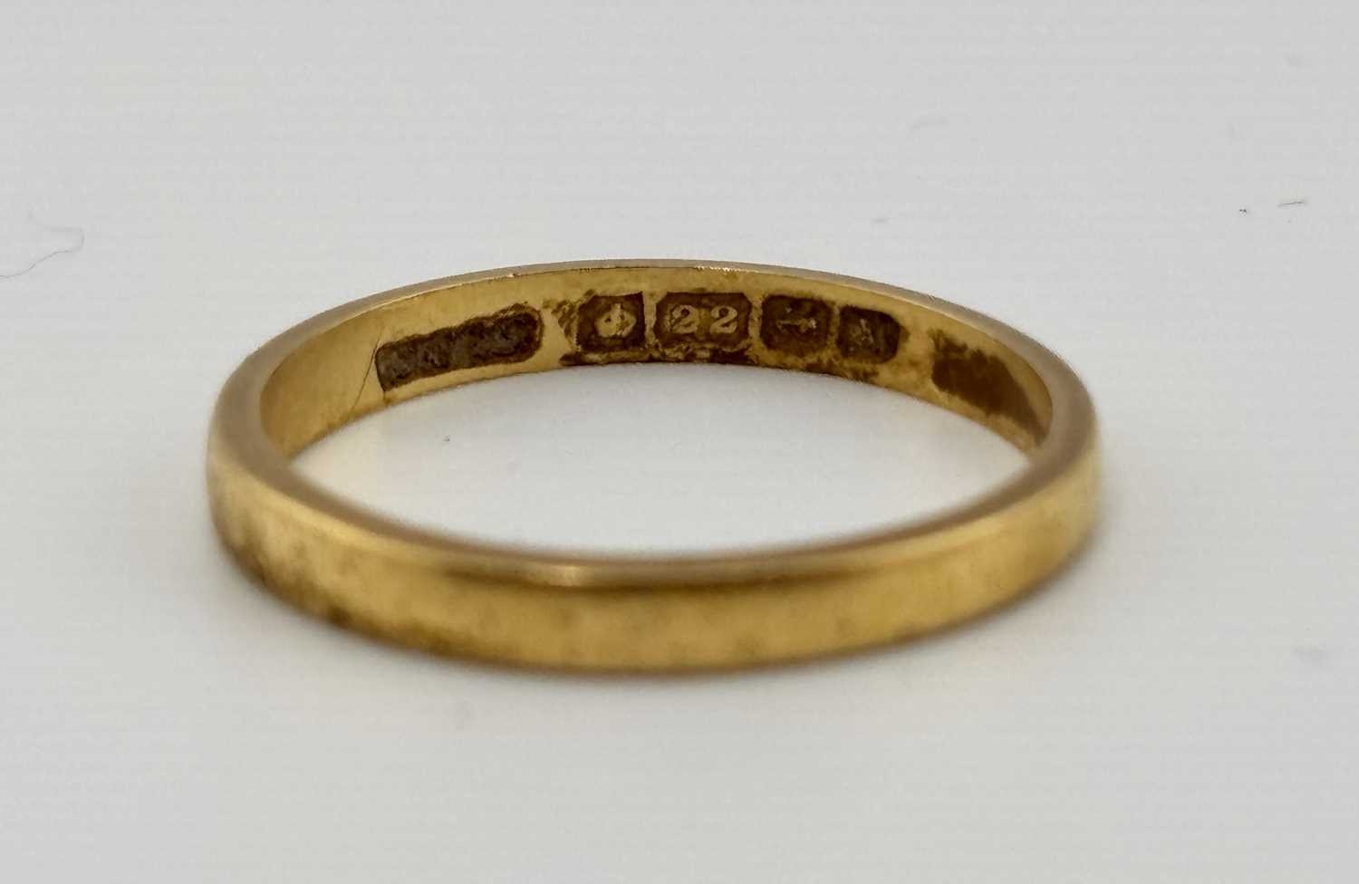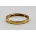 An early 20th century 22ct gold band ring, hallmarks for Birmingham 1922, ring size P, width 2.5mm, 2.7g.