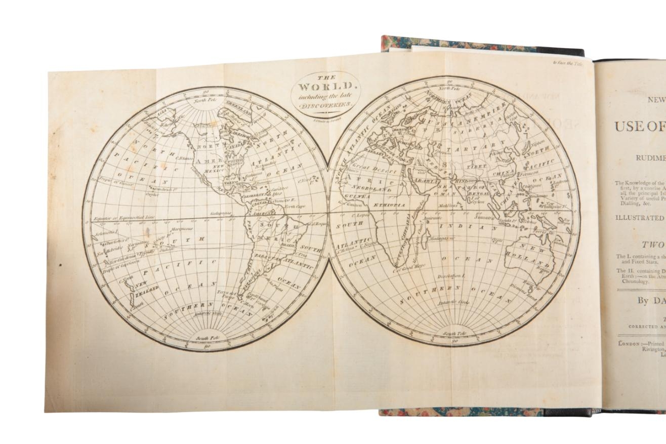 8th edition, printed for J. Johnson et al, London 1804, rebound black half-leather with marbled boards, retaining numerous plates including a fold-out 'The World' before the title page; together with Keith, Thomas: 'A New Treatise on the Use of the Globes', second edition, printed for the author, London 1808, rebound brown calf with red leather half title (2)