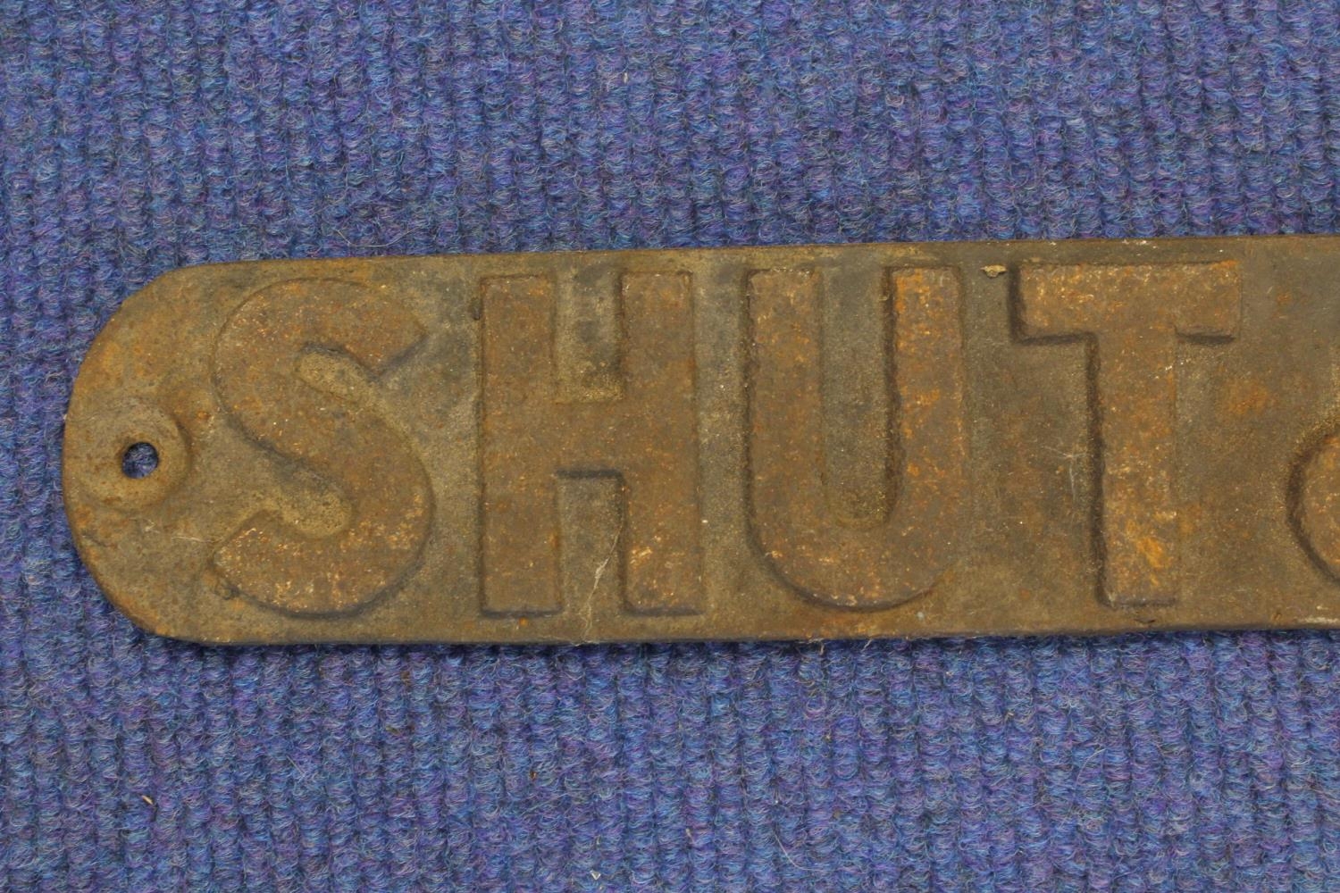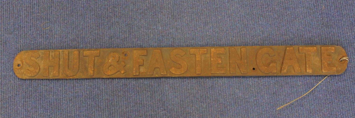 Early 20th Century cast iron "Shut & Fasten Gate" sign, probably railway related.
