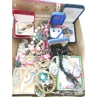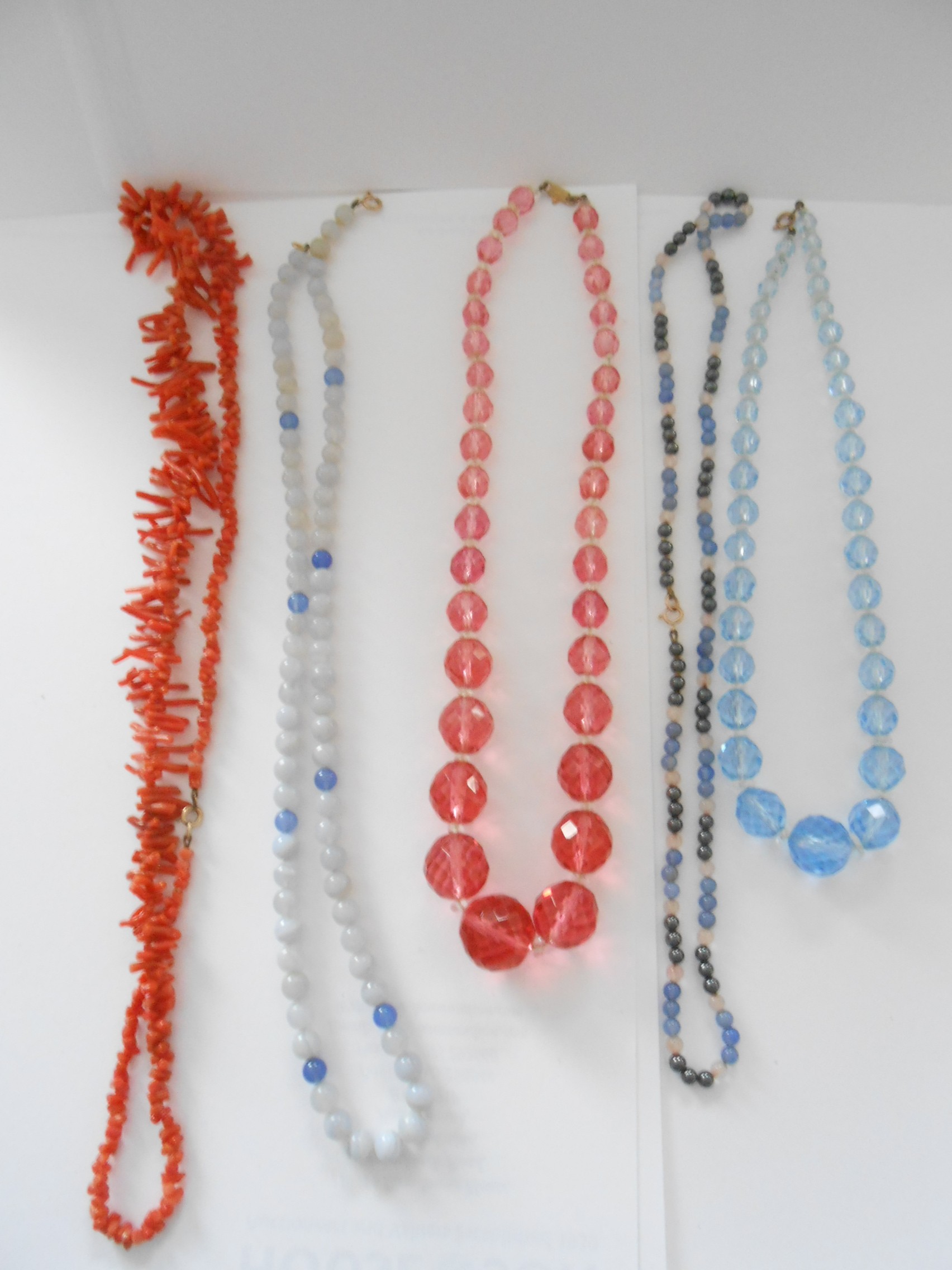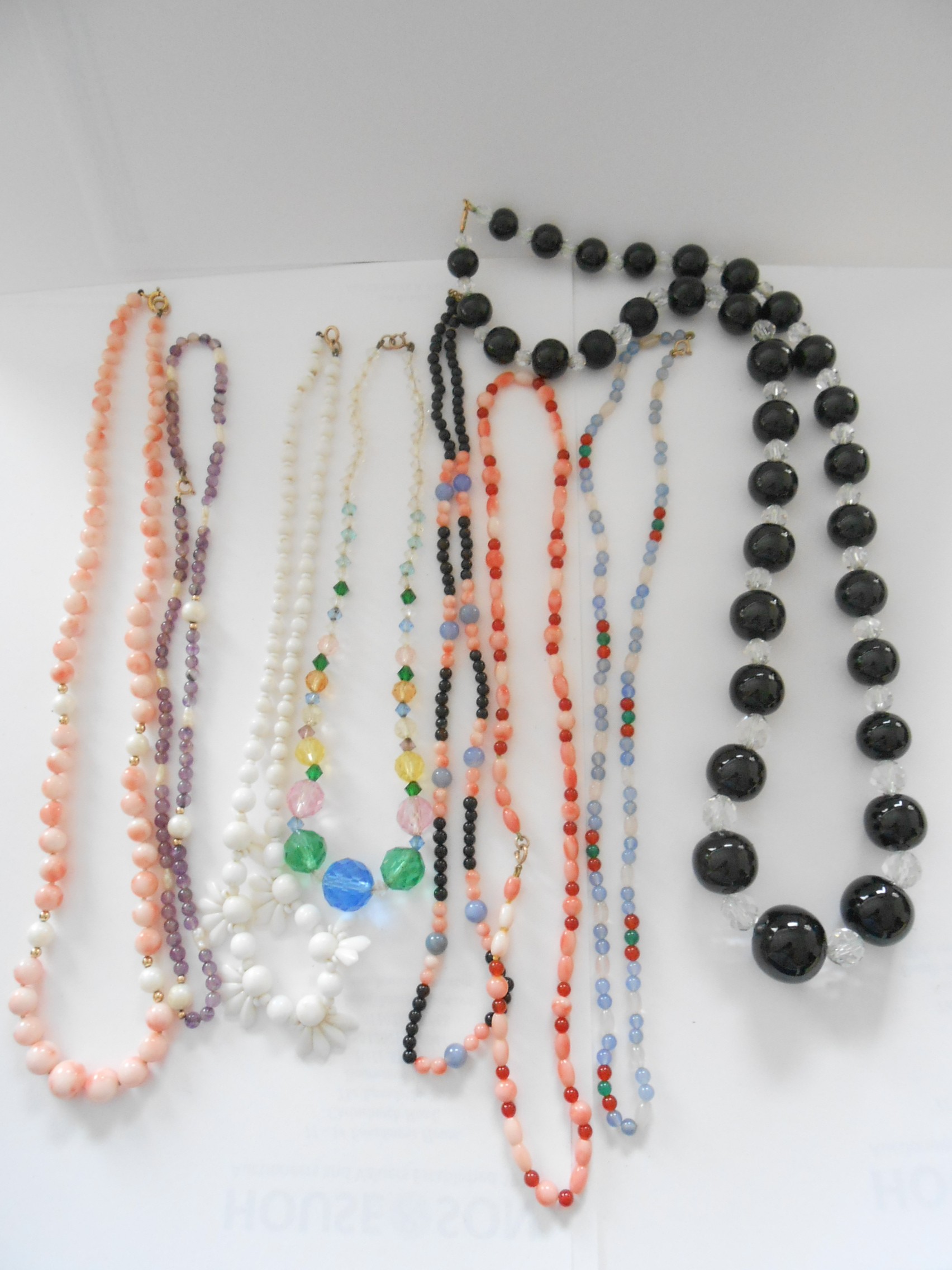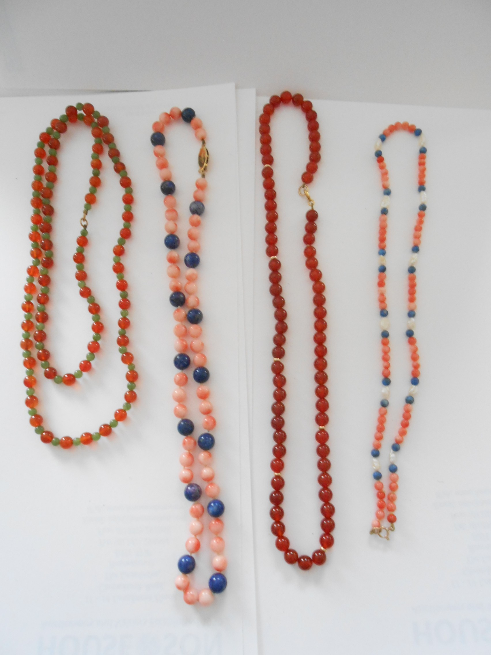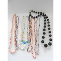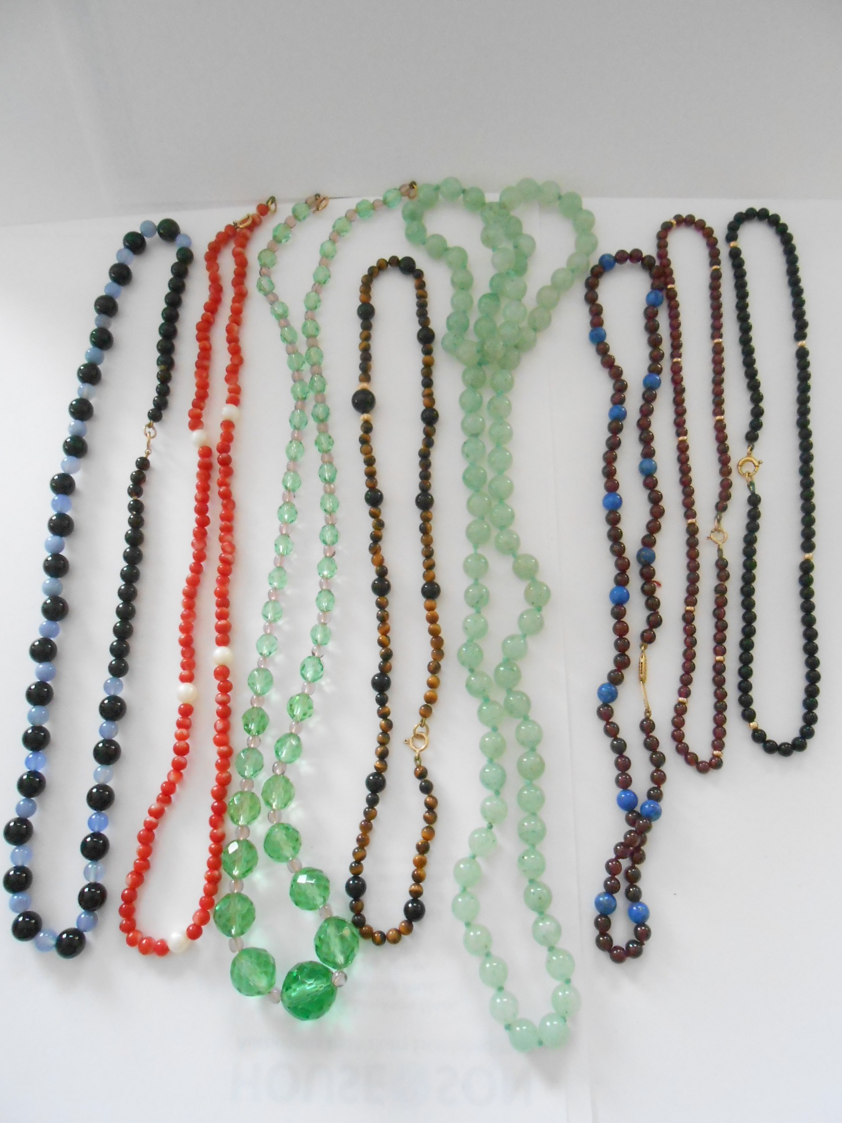 A quantity of bead necklaces with 9ct. gold clasps