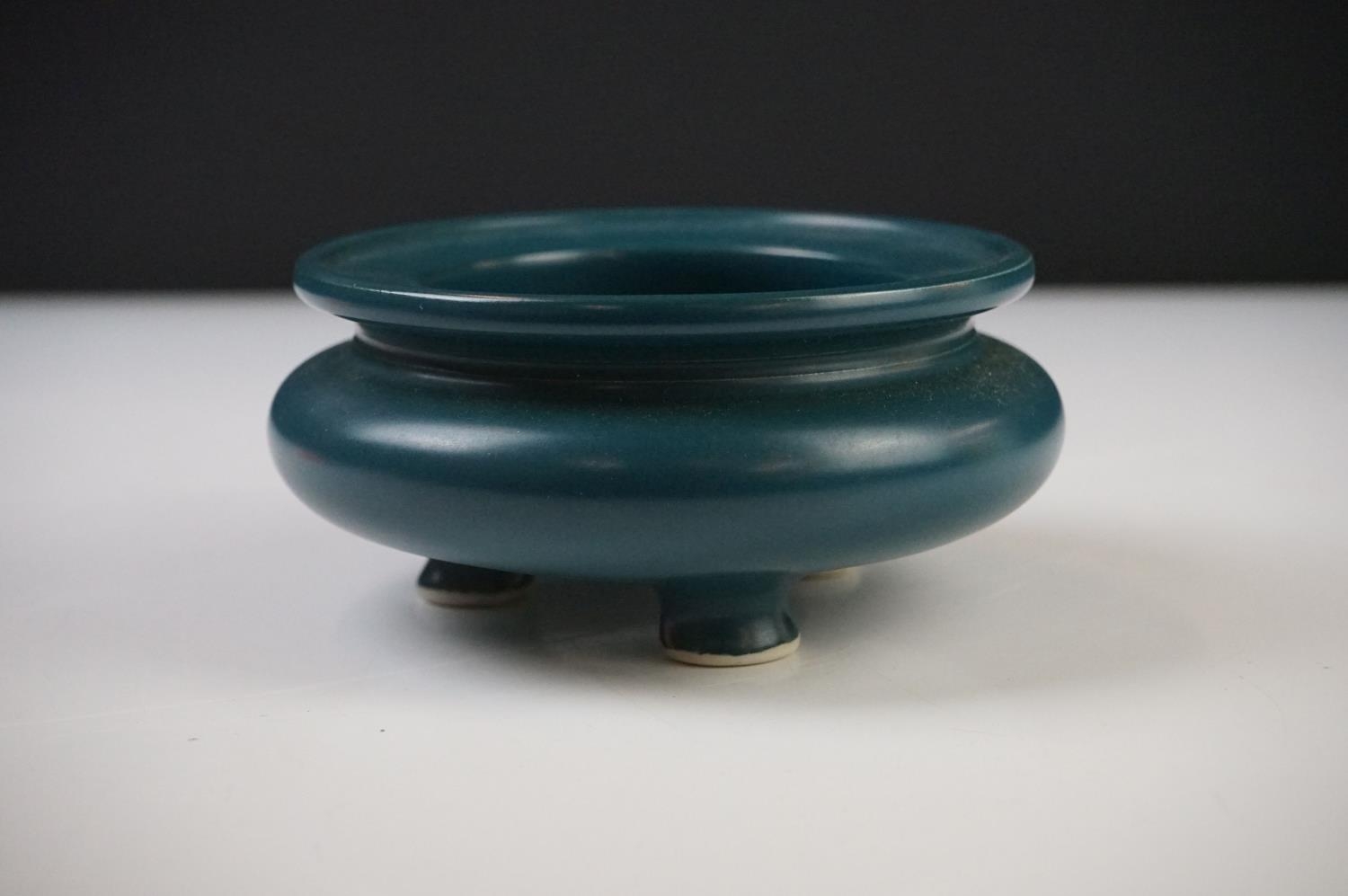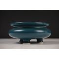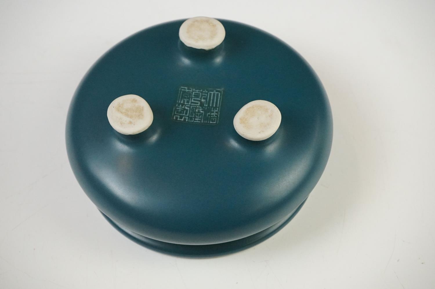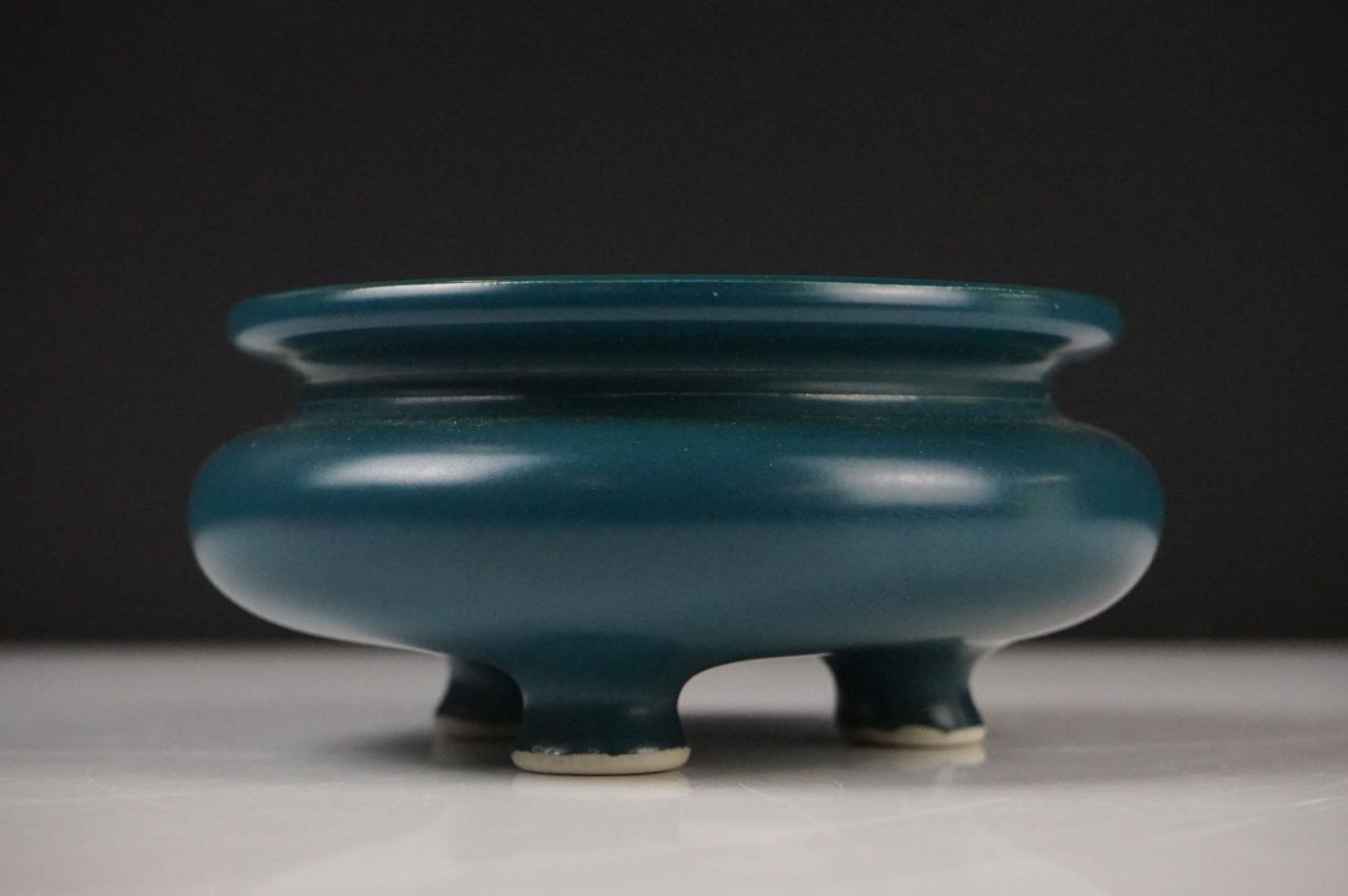 Chinese Porcelain Censer with dark turquoise glaze and Qianlong type marks to base, 13cm diameter