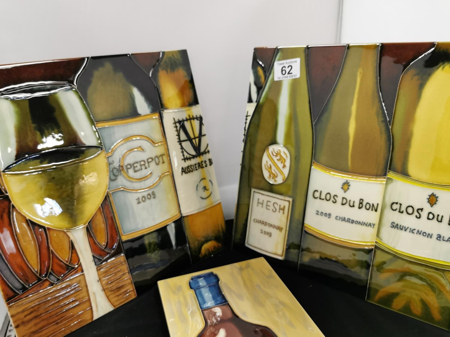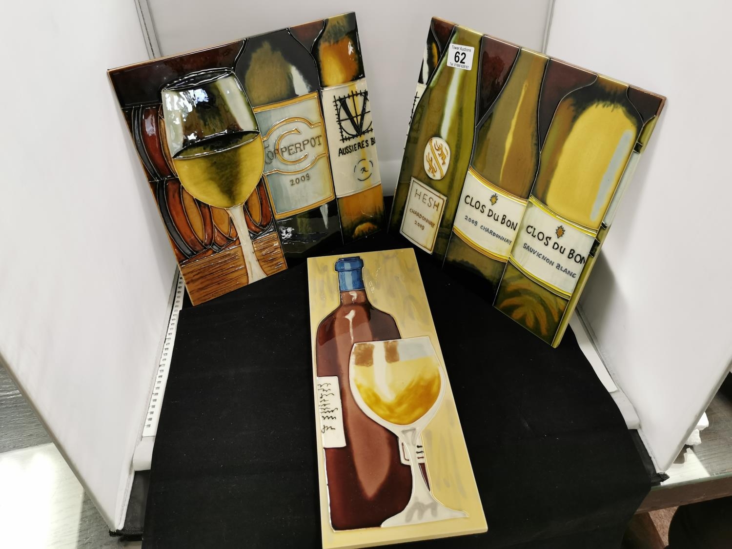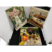 Set of 3 New Benaya Painted Tile Pictures Wine Scenes