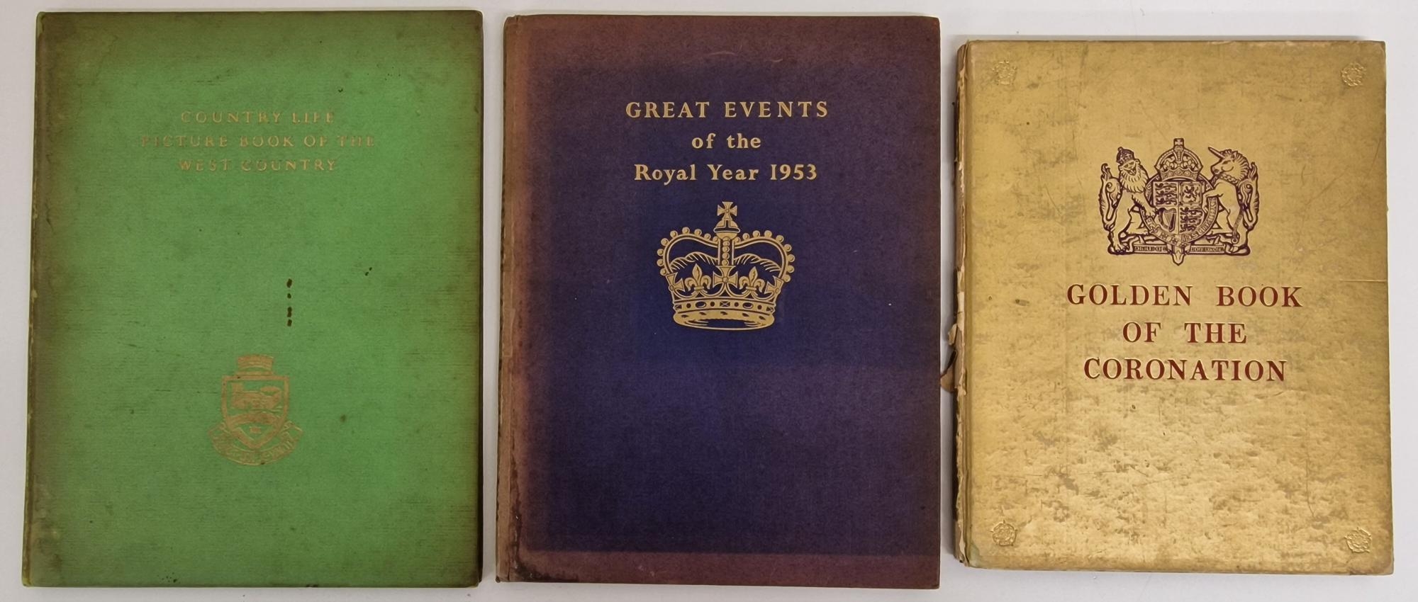 A collection of three vintage books. To include Golden Book of the Coronation', 'Great Events of the Royal Year 1953' & 'Country Life - Picture Book of West Country'.