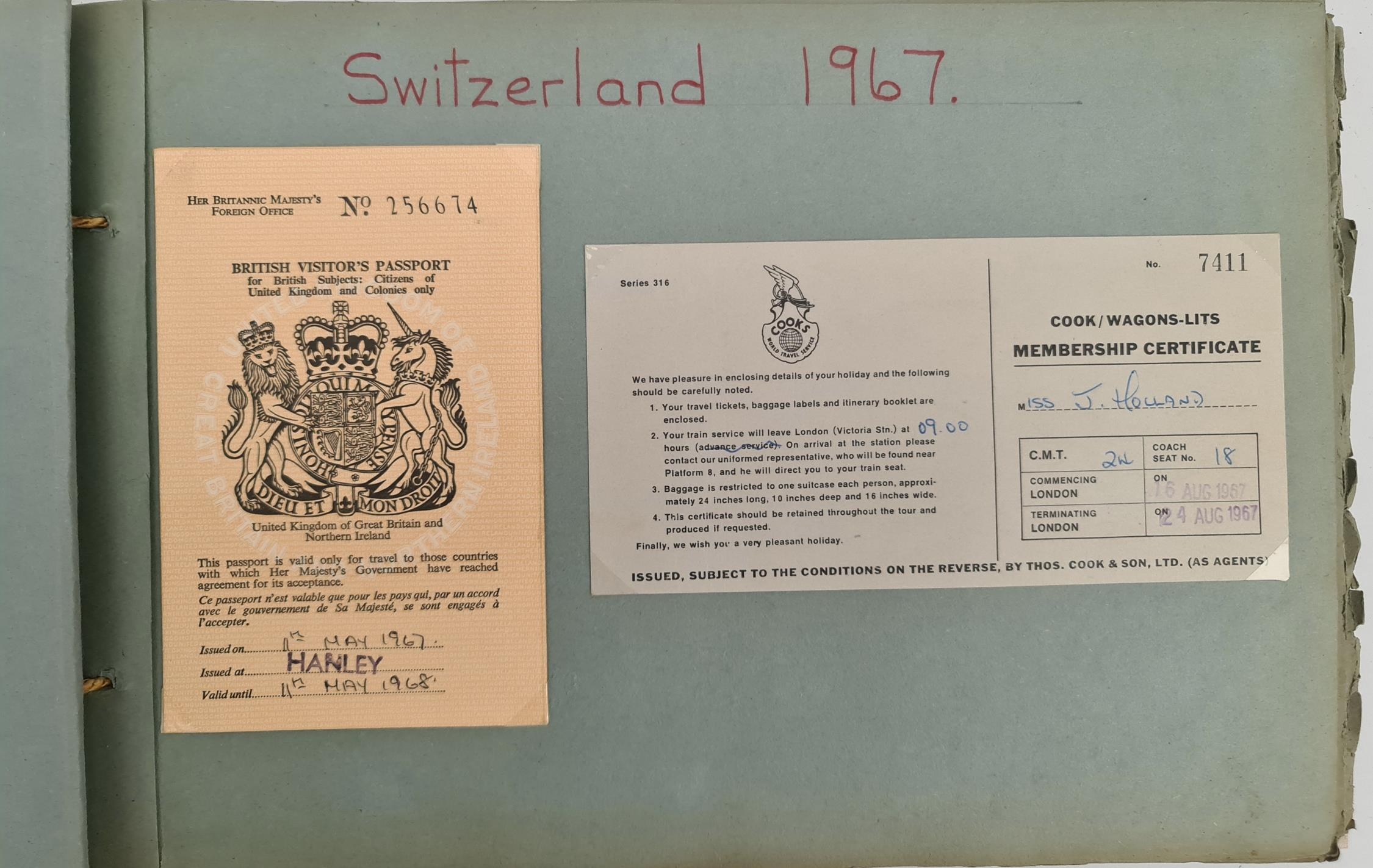 Vintage Travel Scrapbook Switzerland 1967. Includes Continental Postcards etc. Shipping is available. Please ask for a quote before bidding. Where possible we combine shipping costs. Remember, if you are the highest bidder above reserve on this Lot you have bought the item and are legally responsible for the item. Viewing is recommended in either person or via video link. Contact us to arrange.