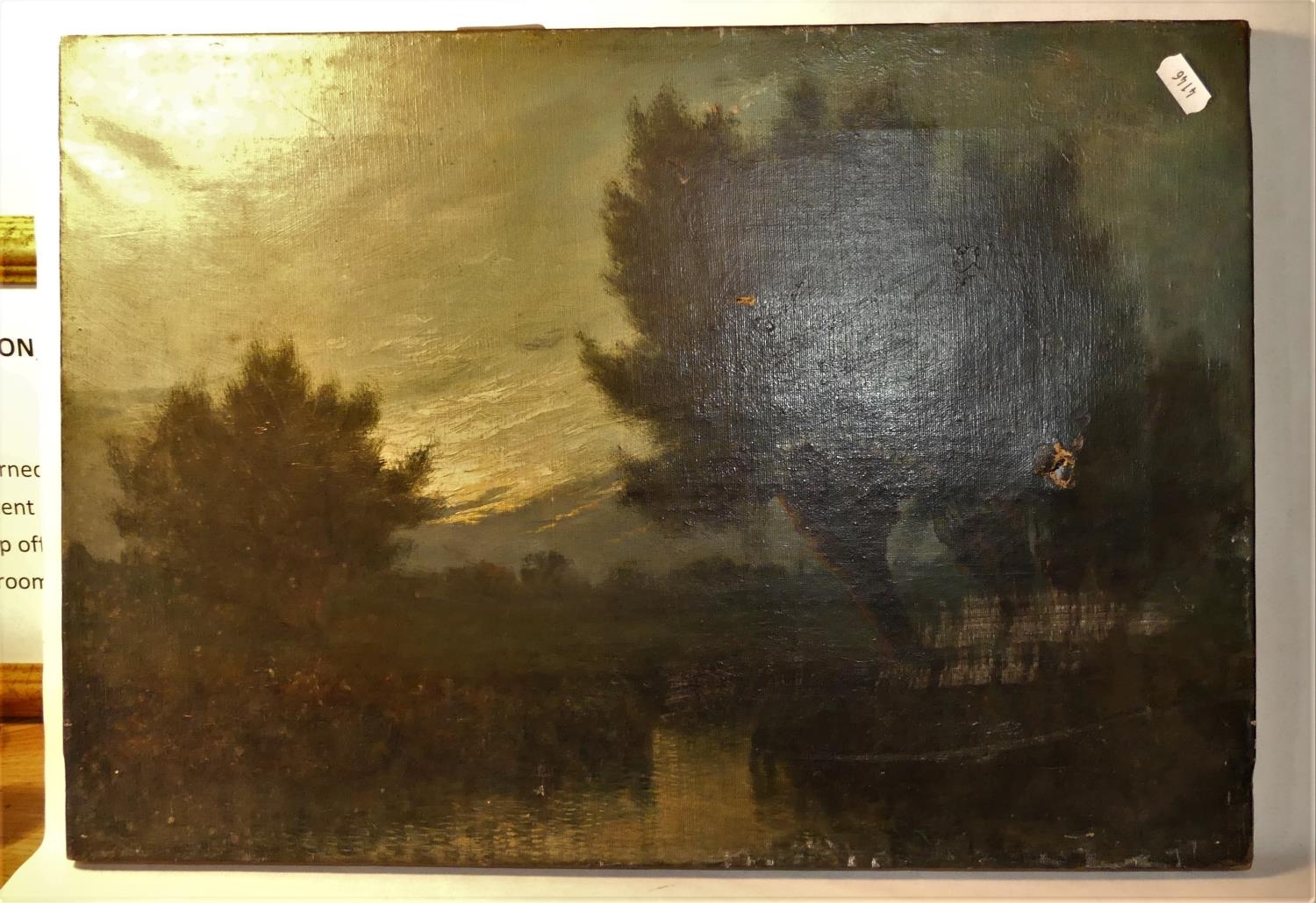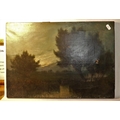 Unframed Oil Painting - Sunset Over Wooded Landscape, measuring 50 x 35cm.