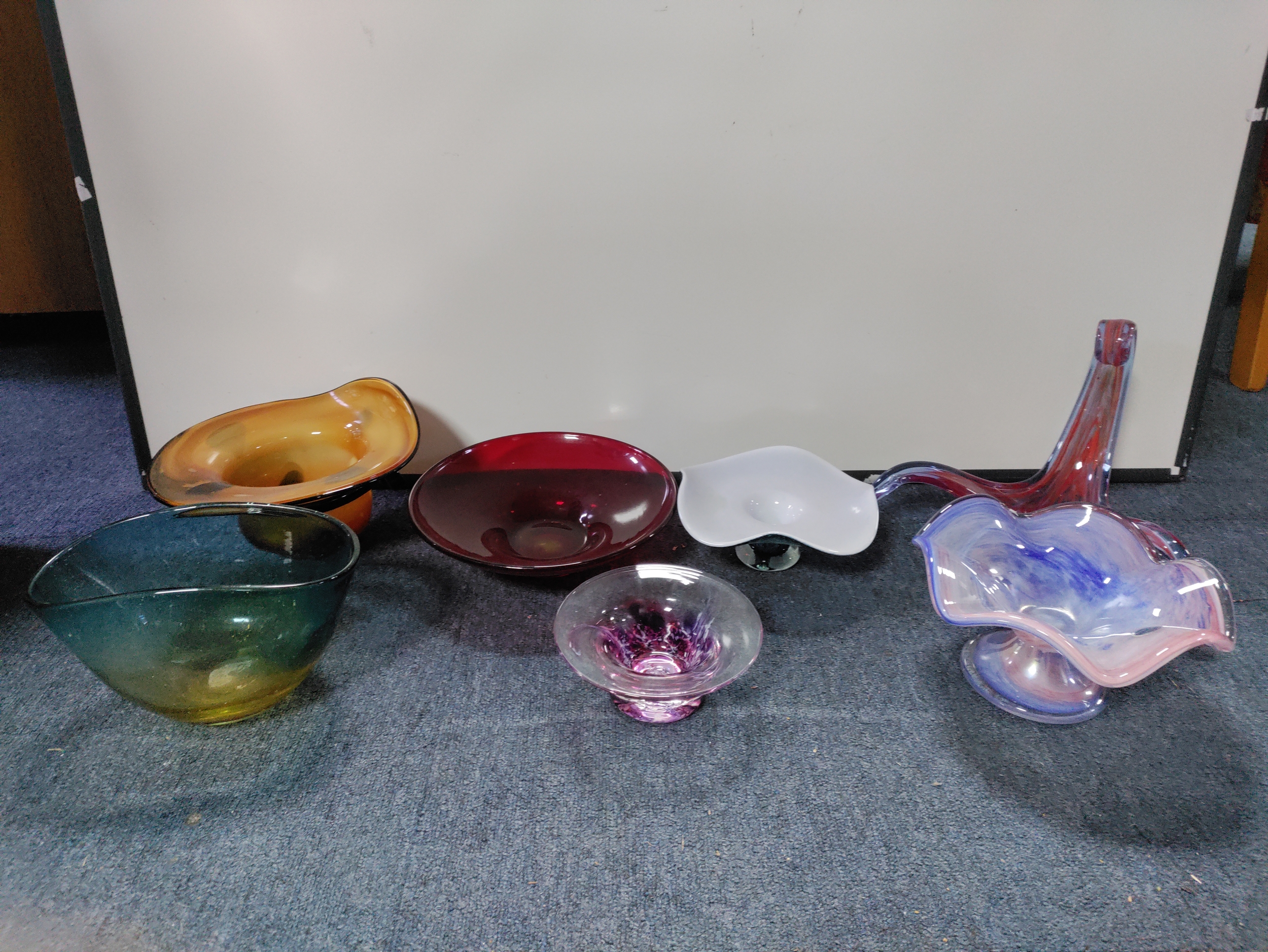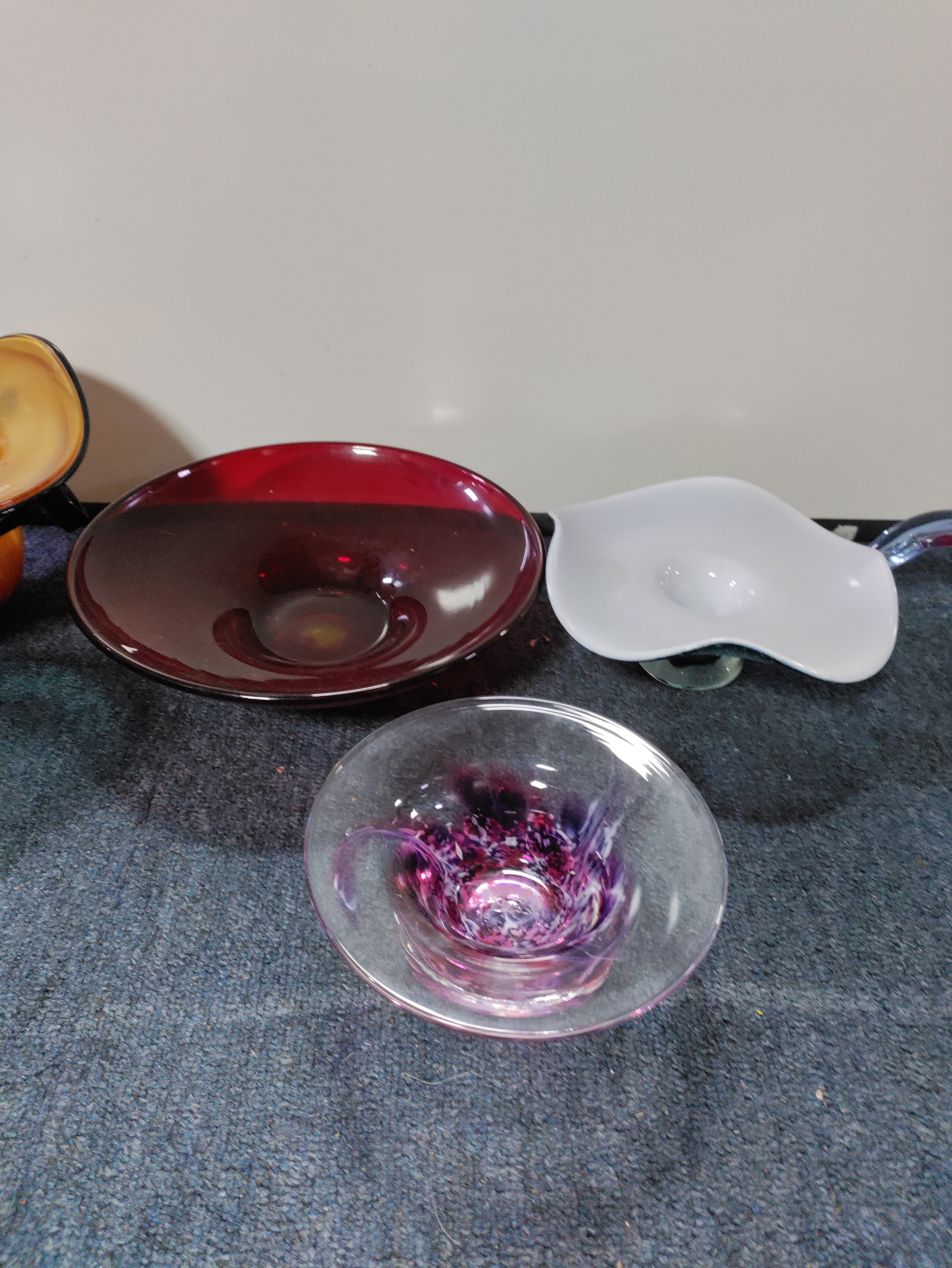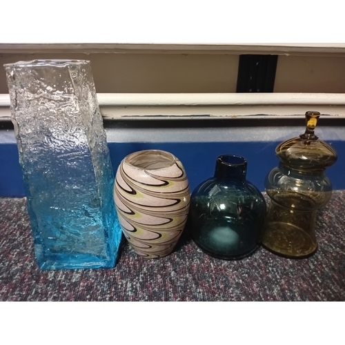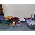 A collection of 7 pieces of coloured glass. To include Murano.