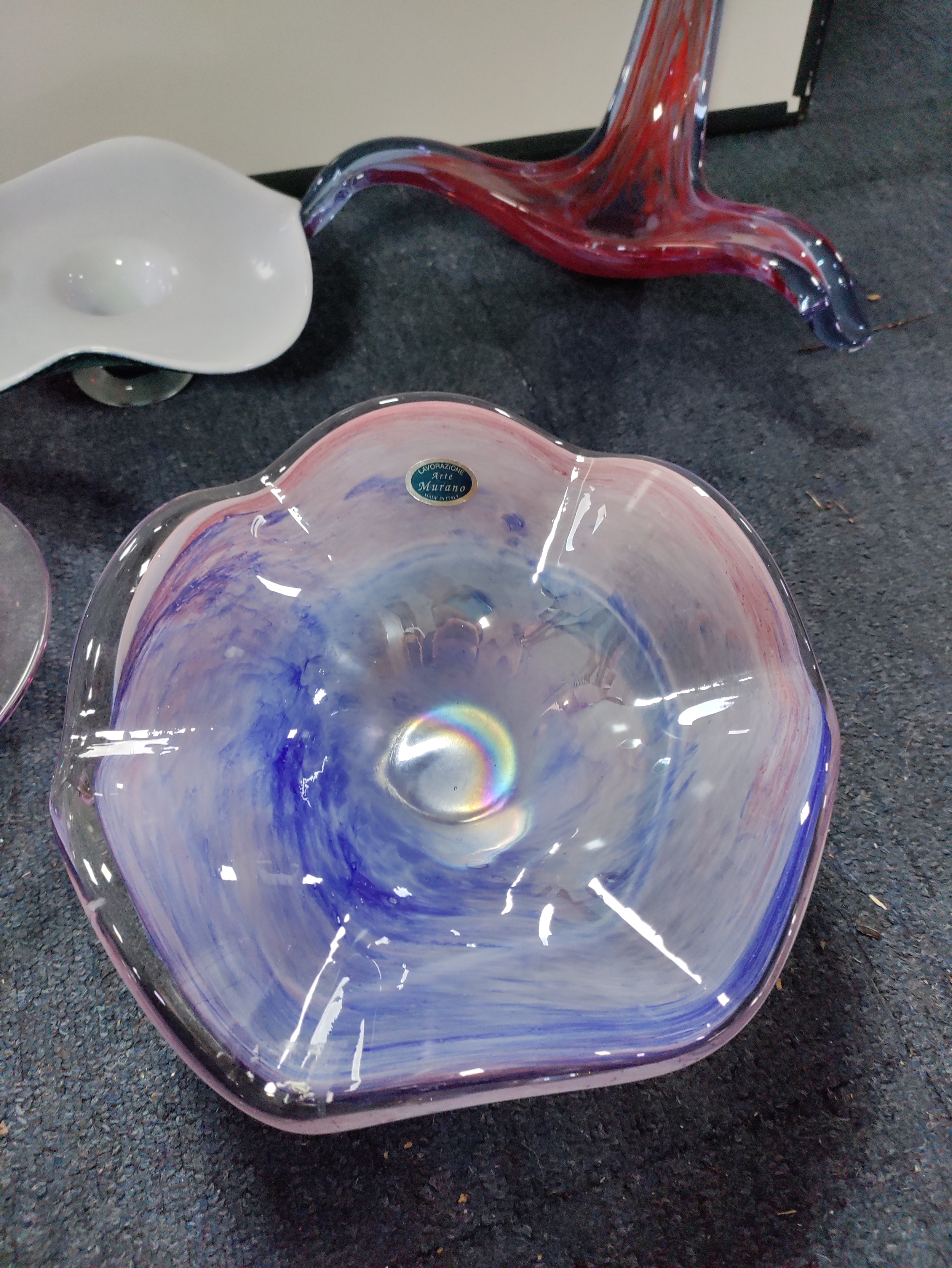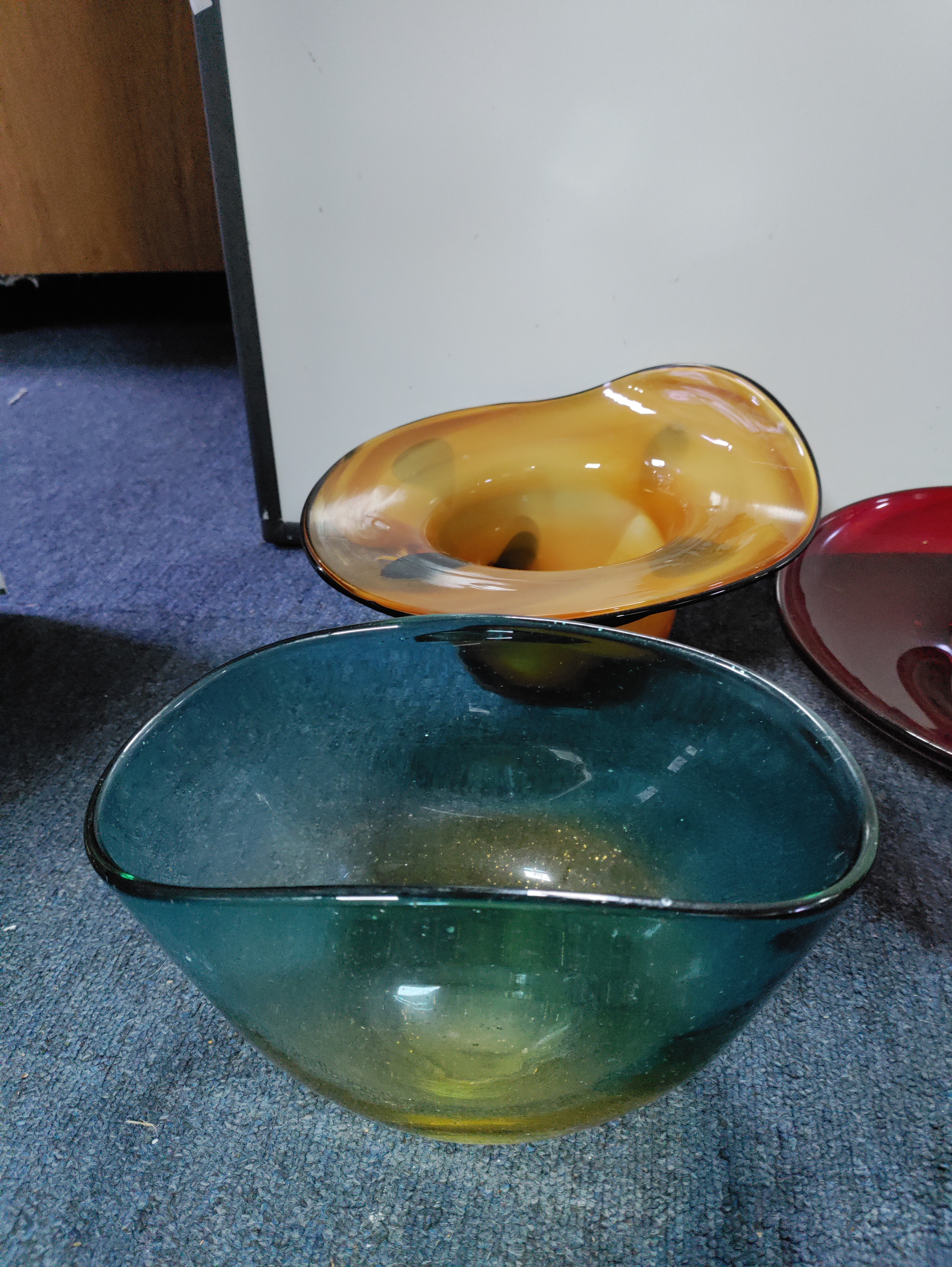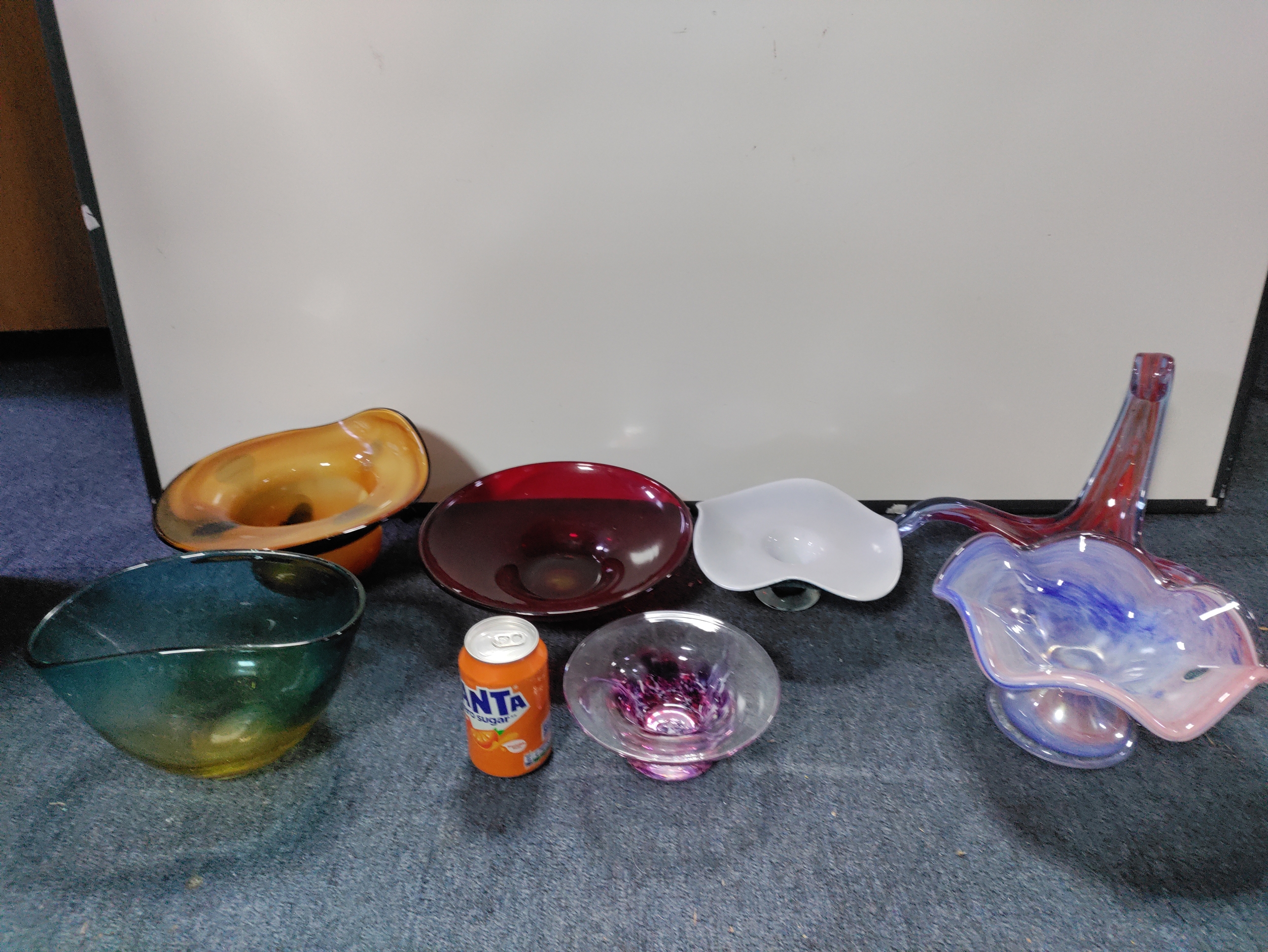 A collection of 7 pieces of coloured glass. To include Murano.