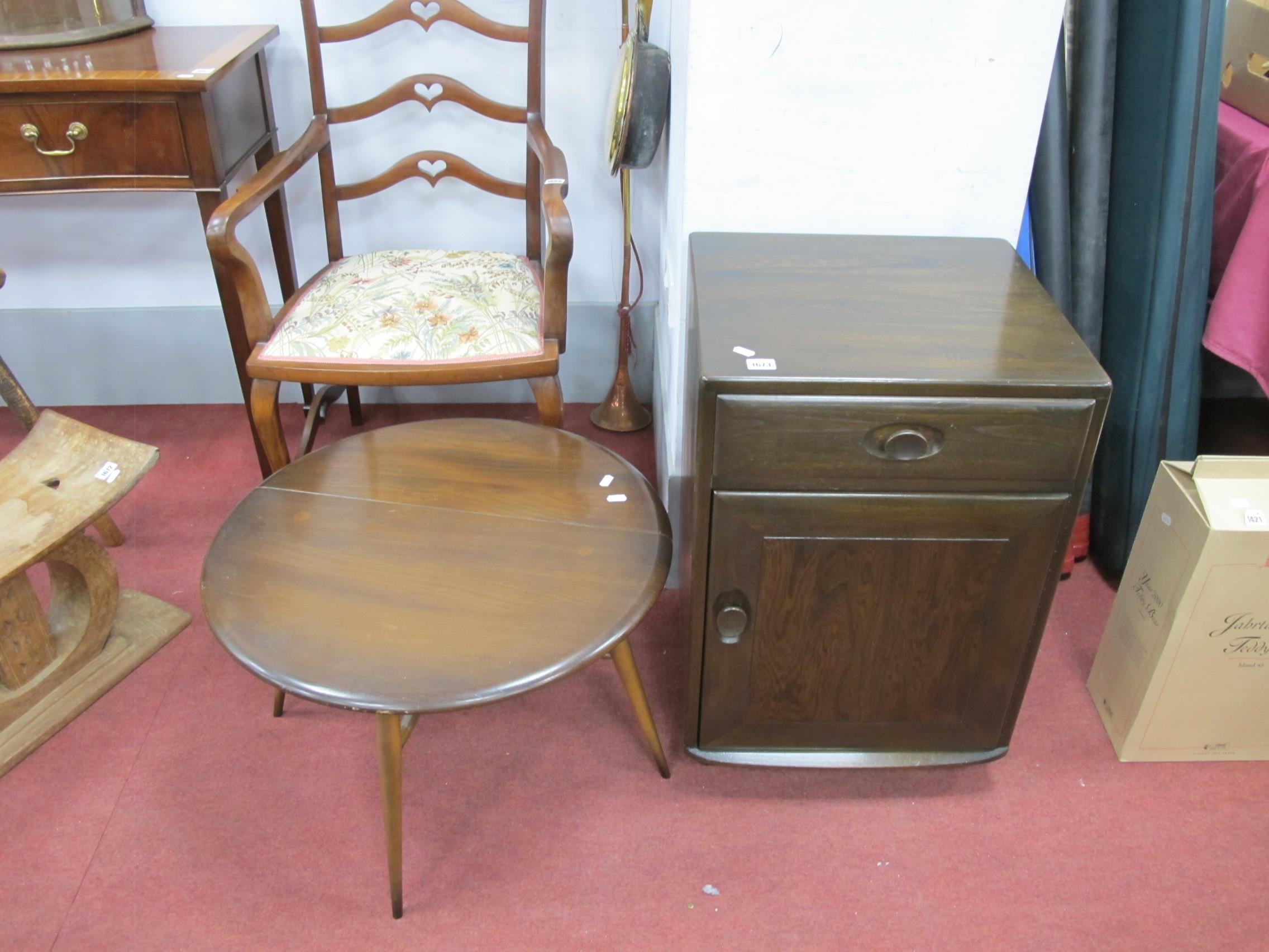 Ercol Circular Topped Coffee Table, with single drop leaf, 61cm diameter, bedside cupboard (2).