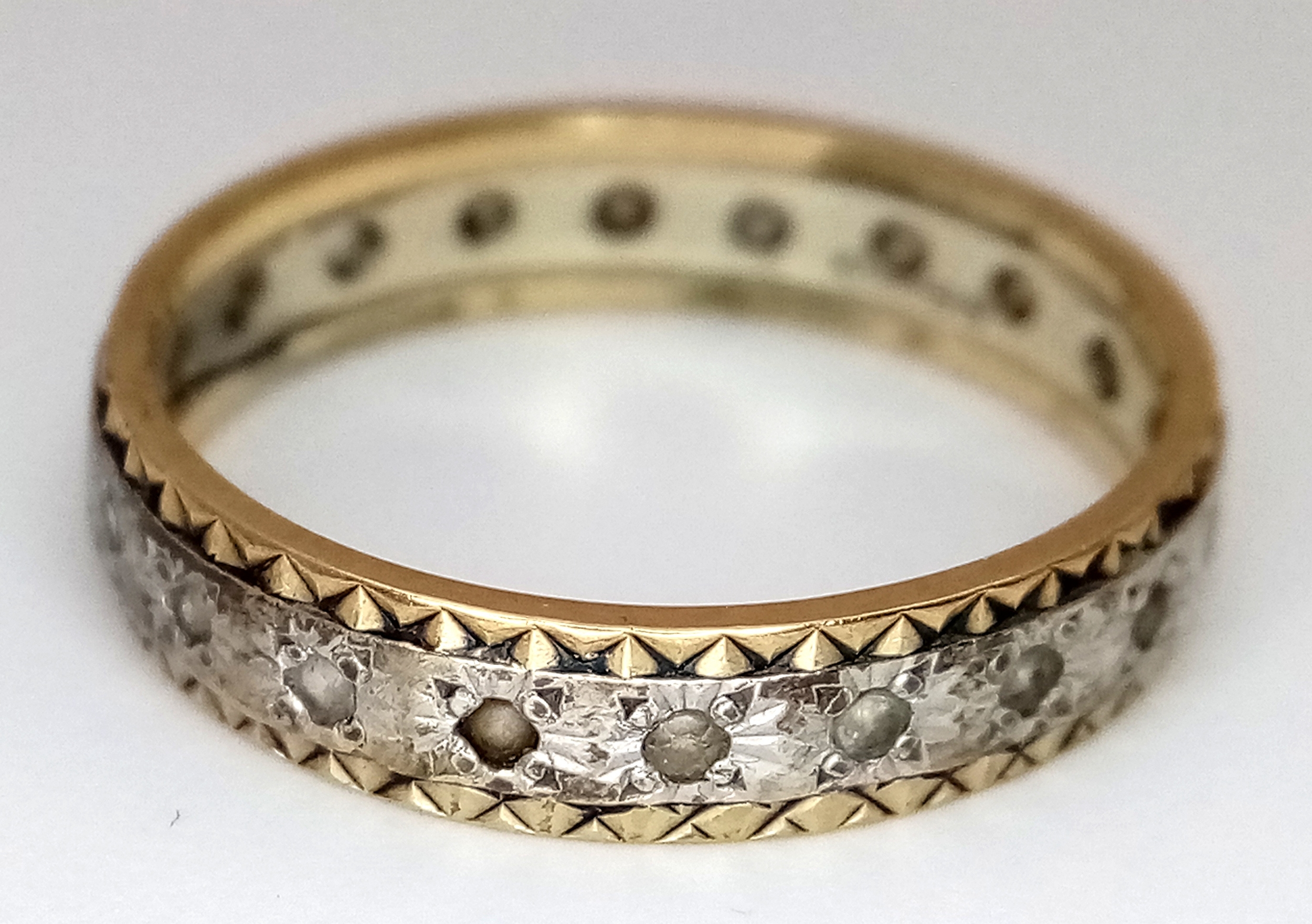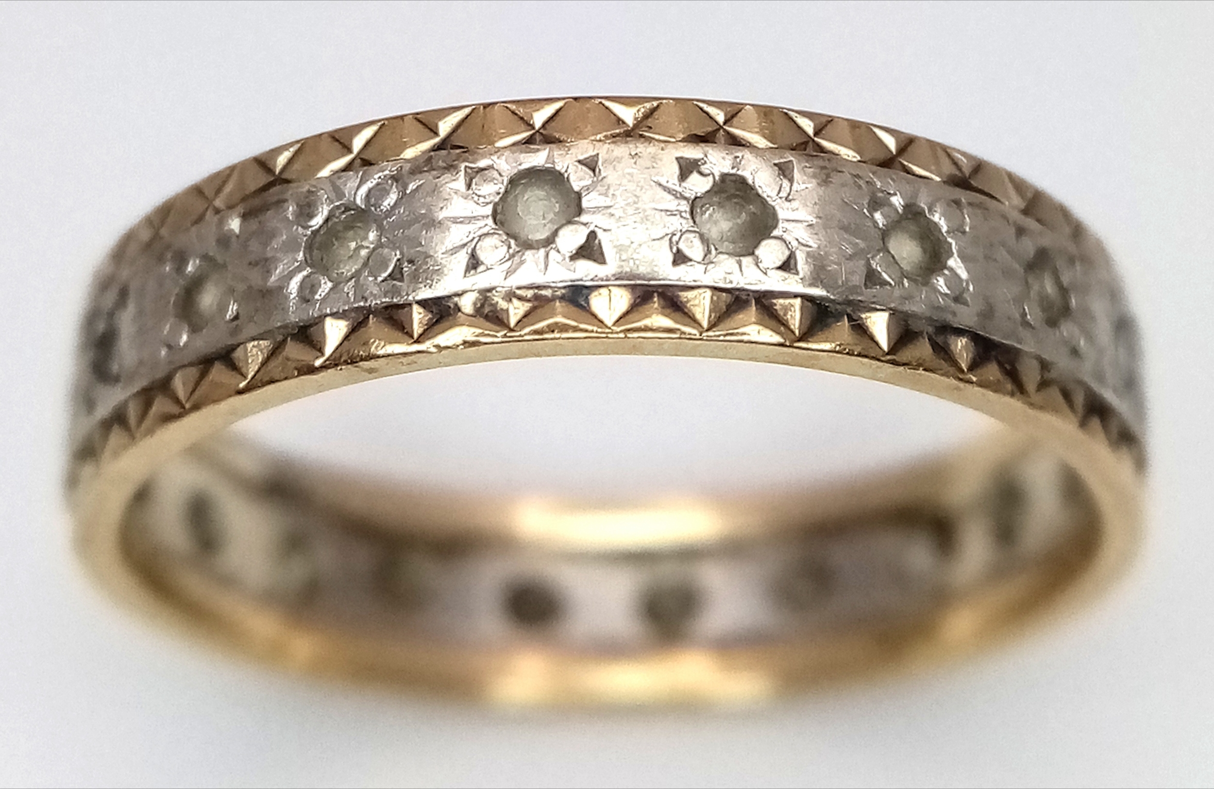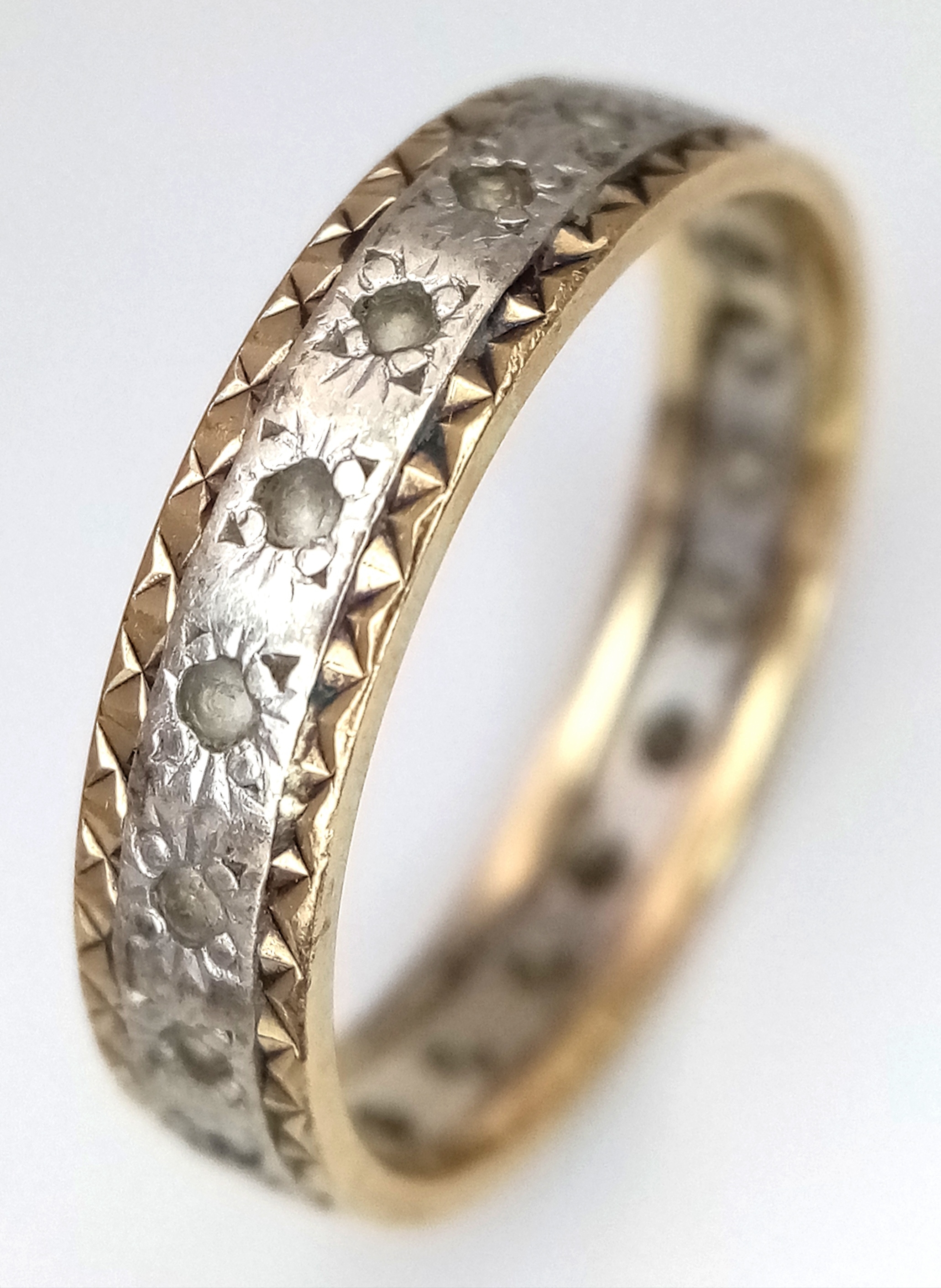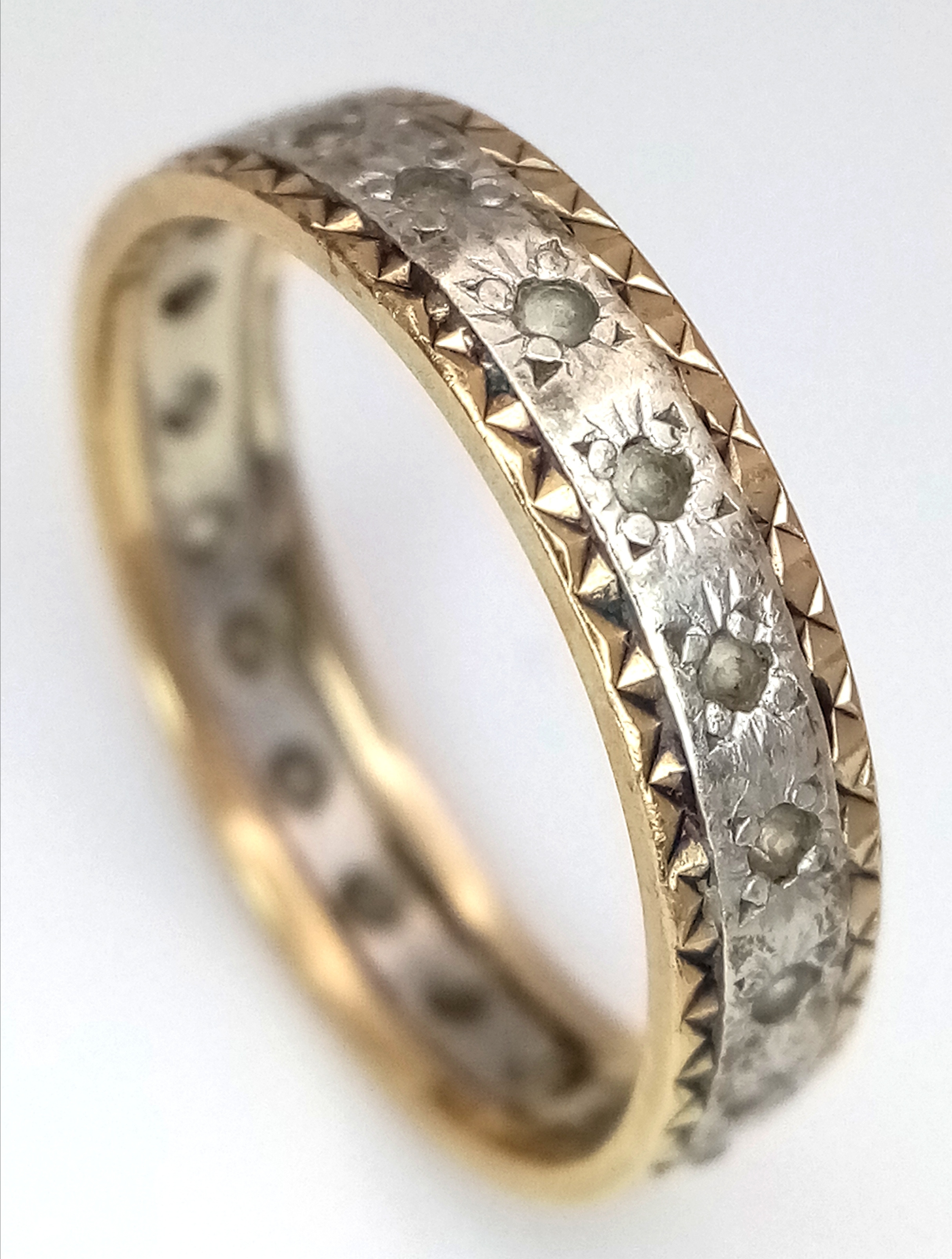 A 9K Yellow and White Gold, White Stone Eternity Ring. Size N. 2.25g.