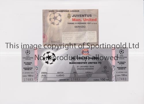 MANCHESTER UNITED Two tickets for away Champions League matches v Juventus 10/12/1997 and Croatia Zagreb 27/11/1999, unused. Both very slightly creased. Generally good