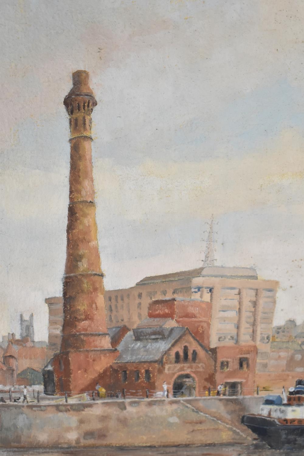 A Framed Oil on Board Depicting Hydraulic Pumping Station at Albert Dock, Liverpool, by Doreen Wilcock, 34x44cms