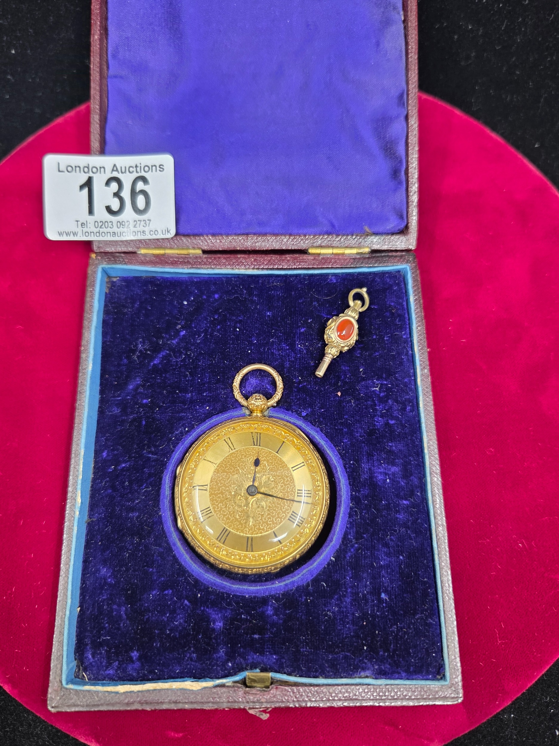 18ct Gold Open Face Pocket Watch with Key (51g)