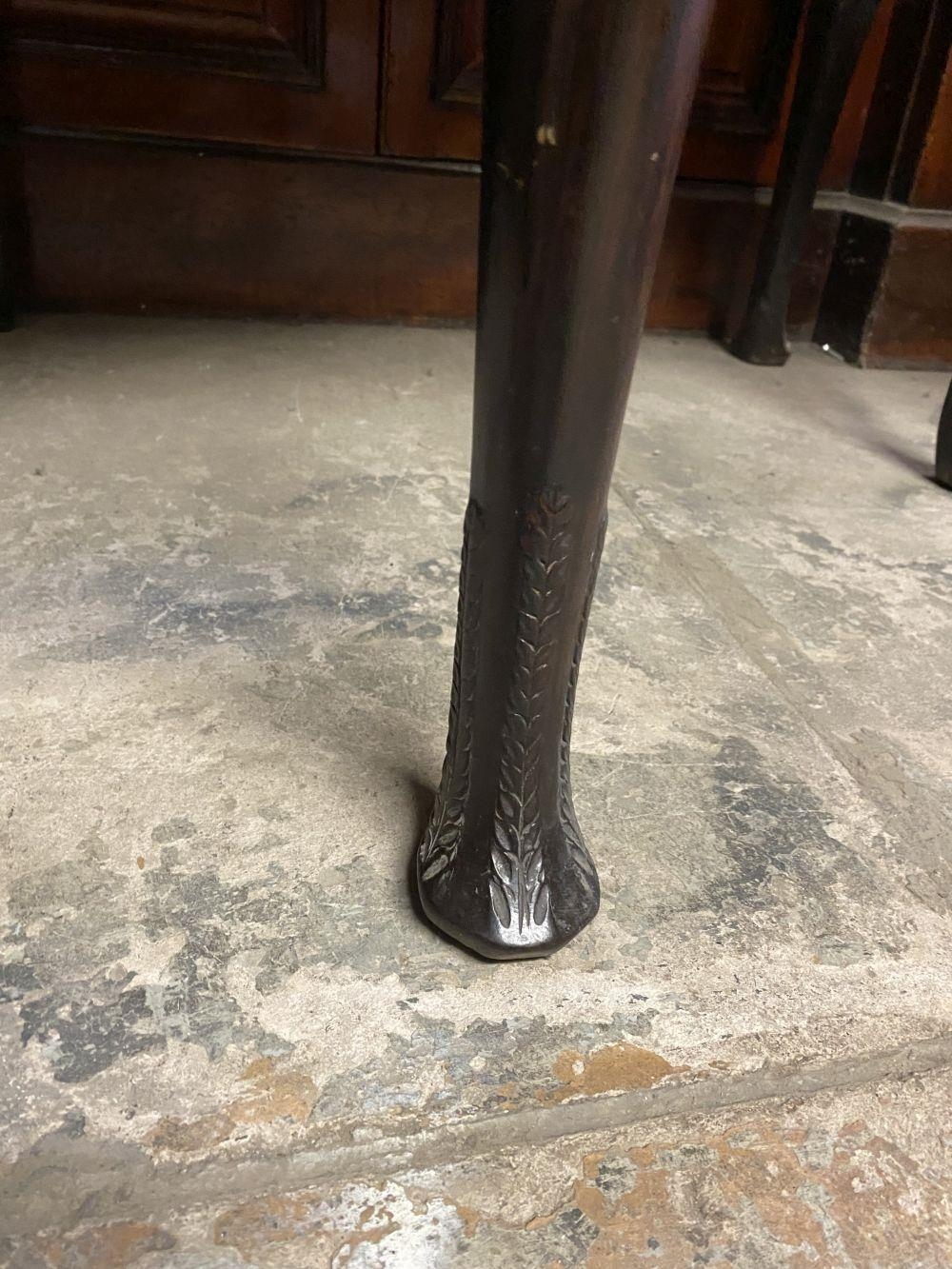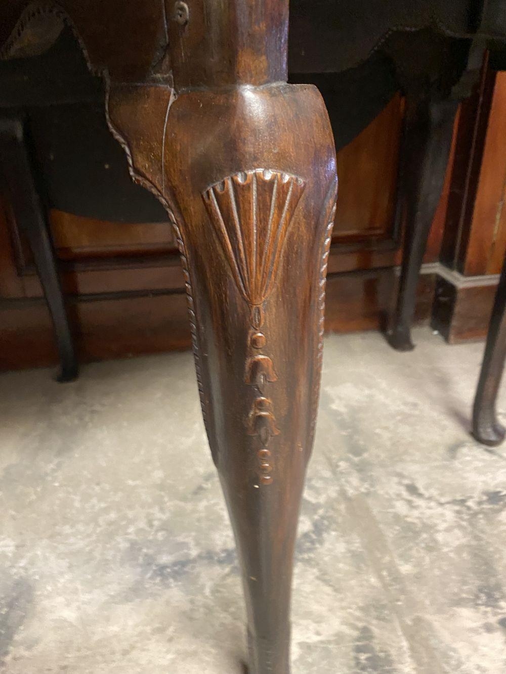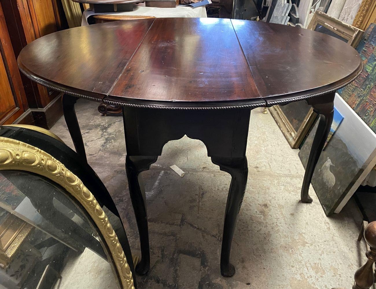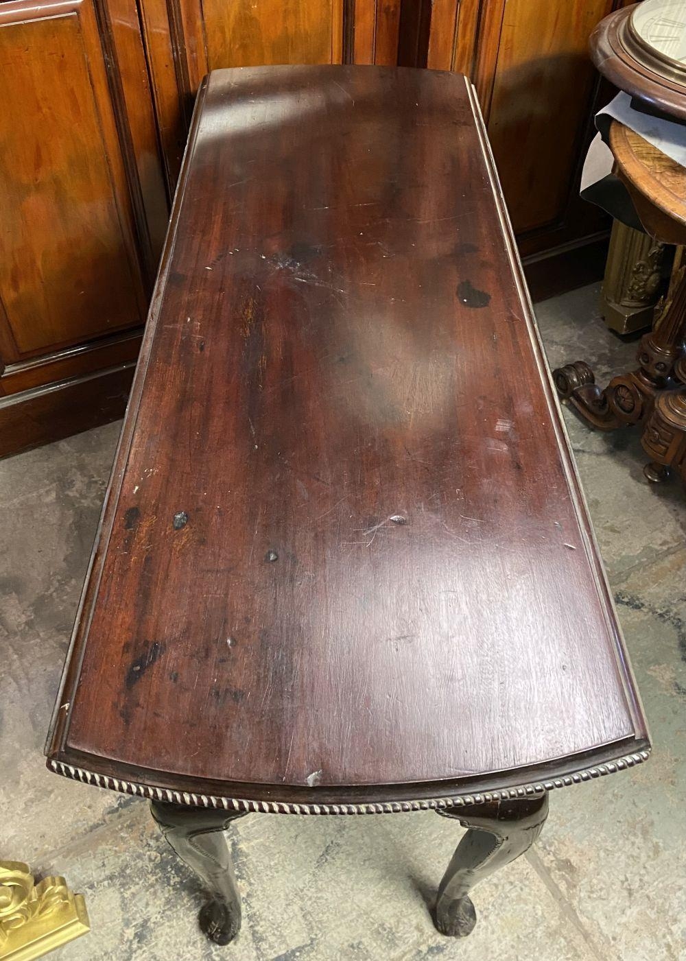 AN 18TH CENTURY MAHOGANY DROP LEAF DINING TABLE, circular top with carved beaded border raised on legs with carving to knee, on carved pad feet. Dimensions: when opened: 126cm wide x 113cm deep x 74cm high approx.