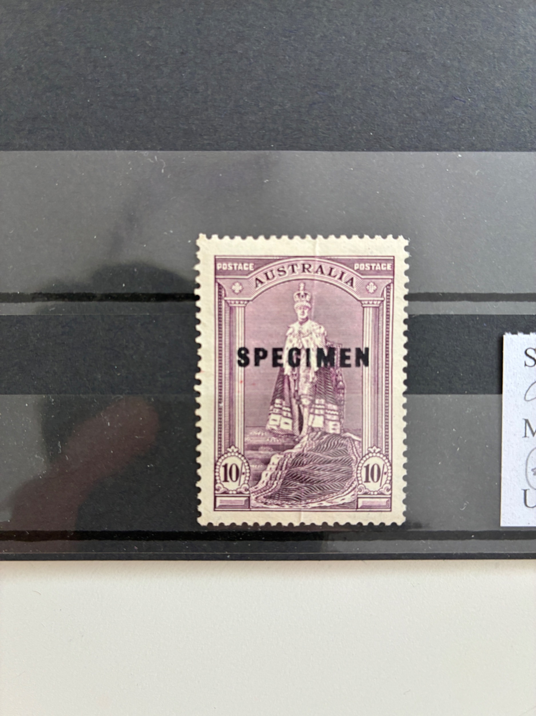 Australia 1938 10s dull purple specimen, crease running top to bottom m/m (SG 177s) Cat £35