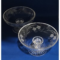 Pair Stuart Crystal Fuchisa center table bowls 14cm tall 20cm diameter