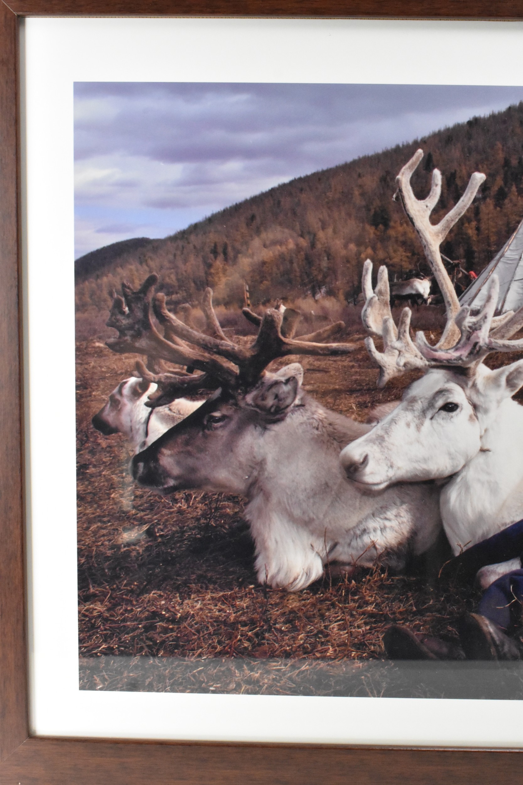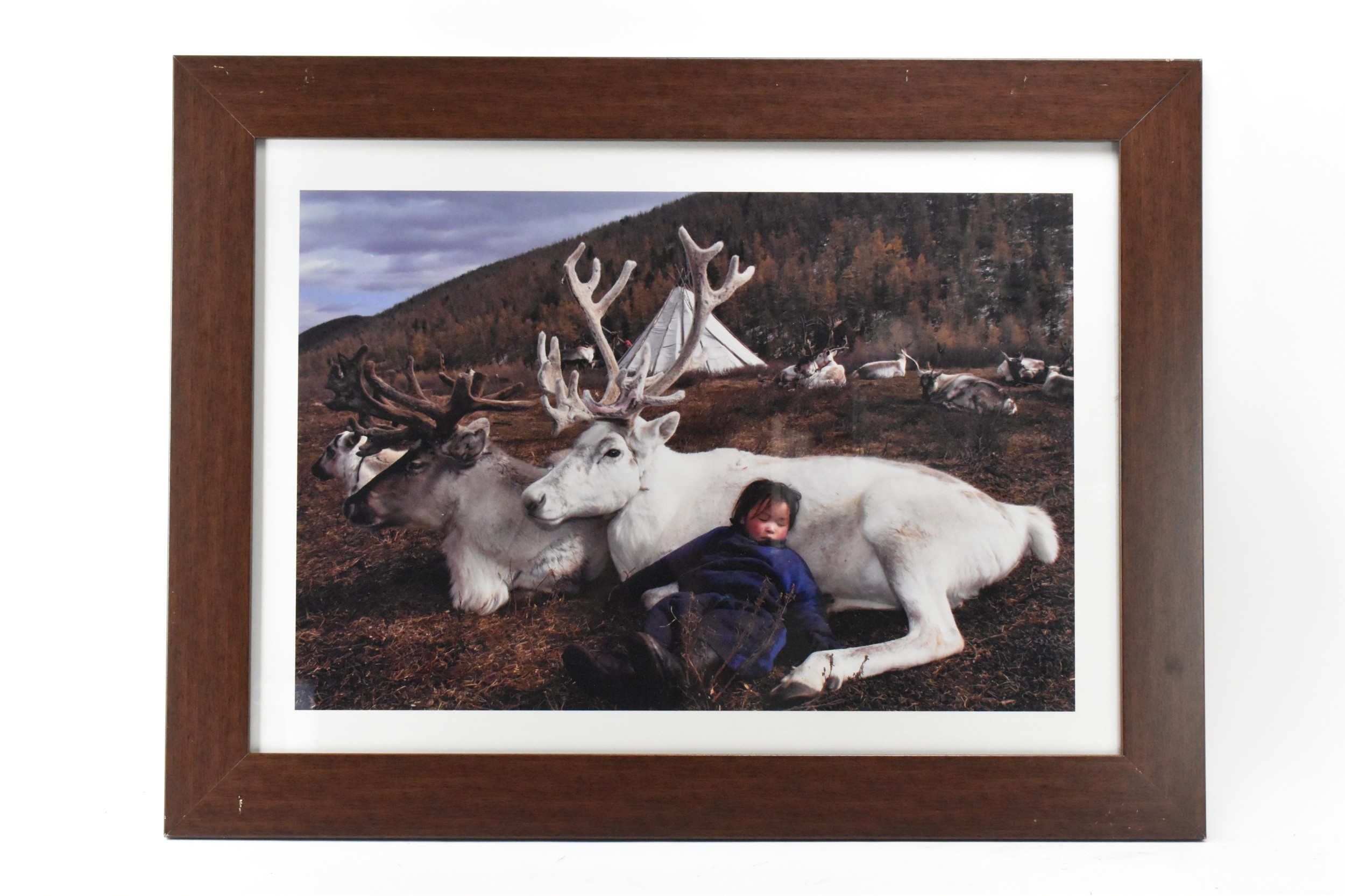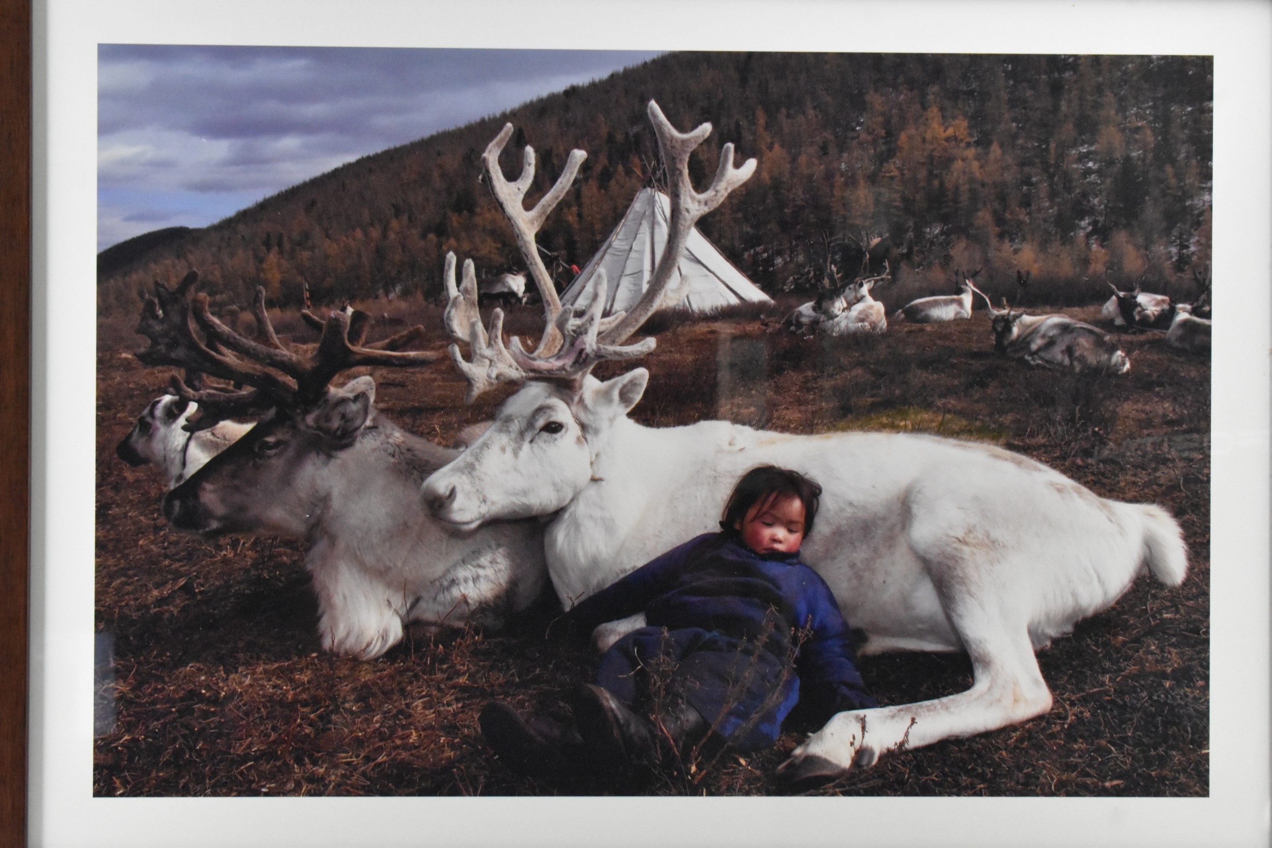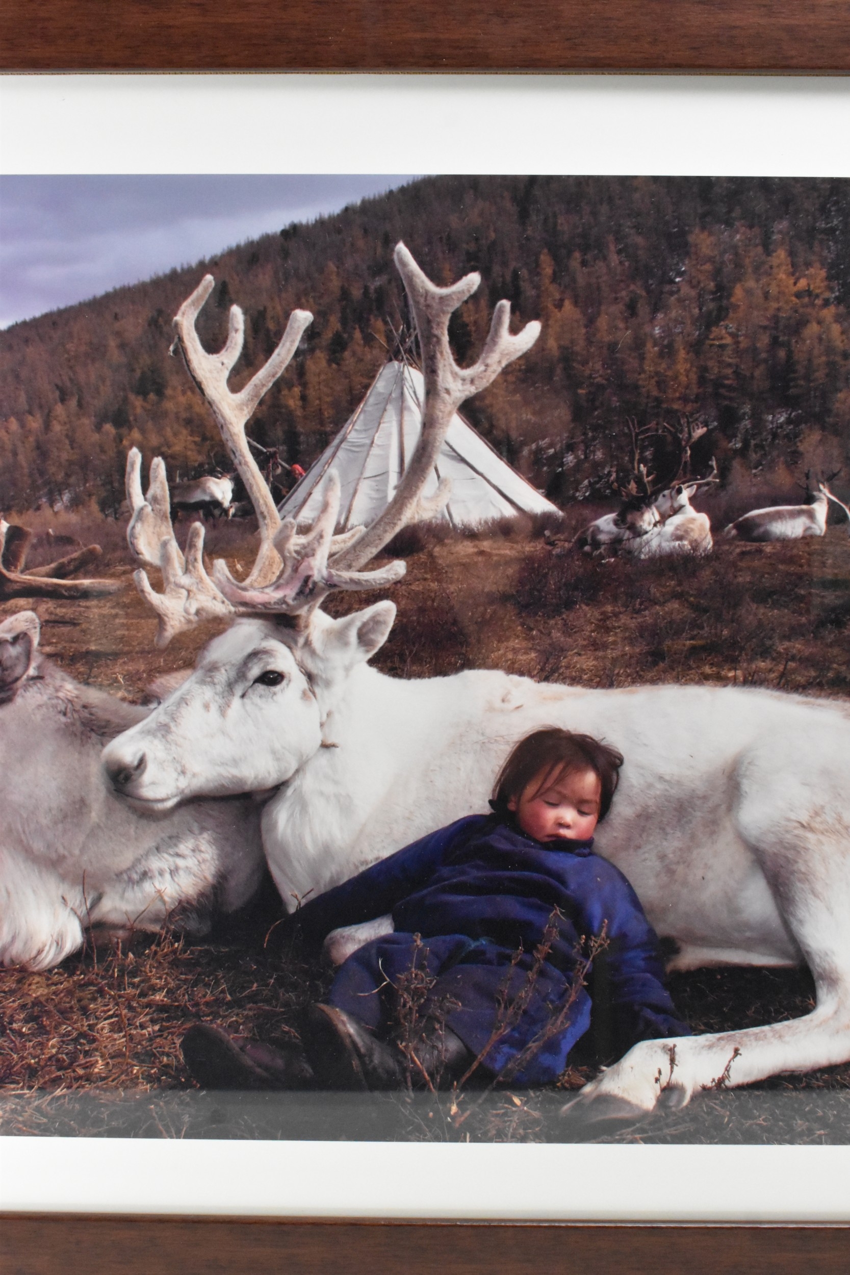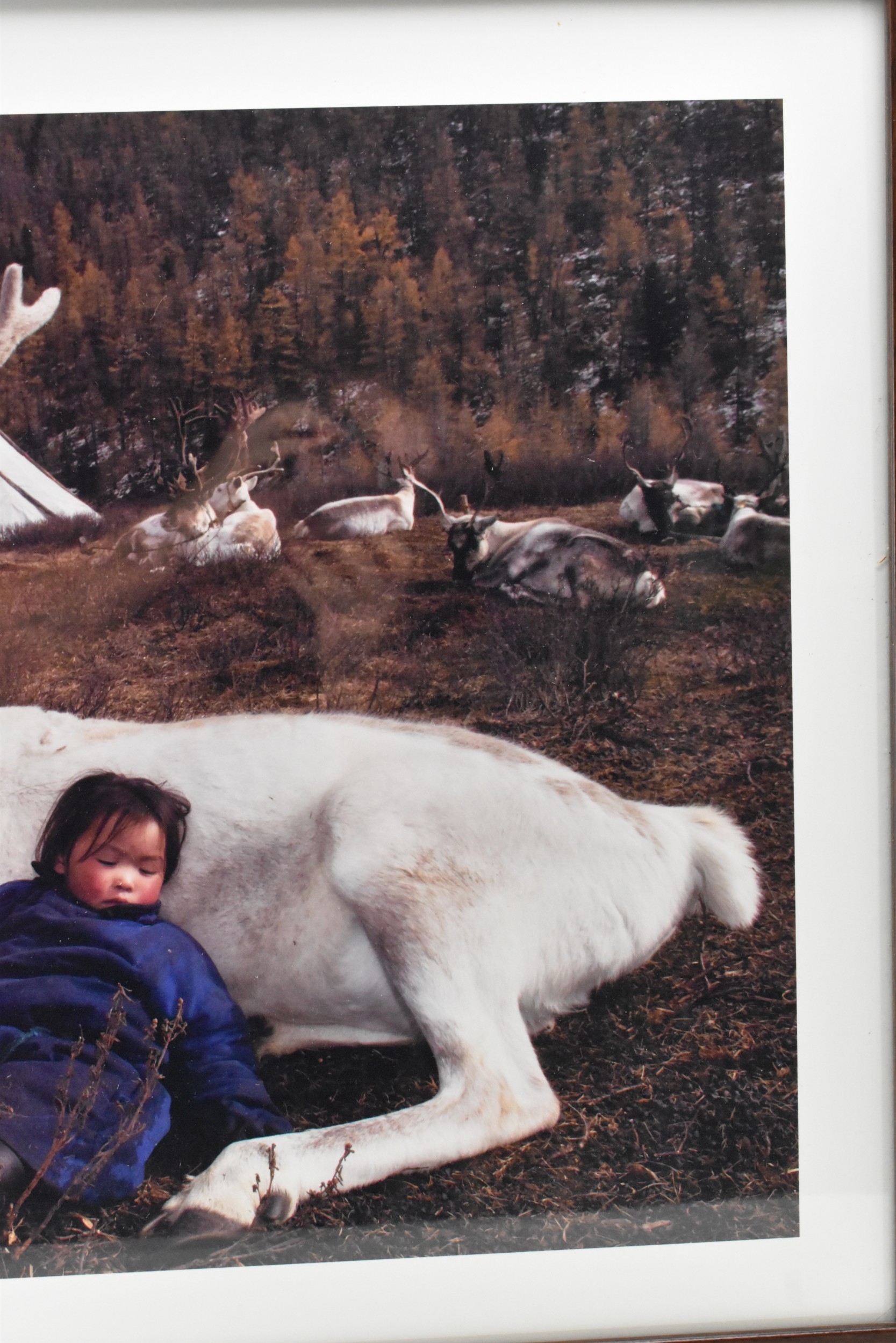 Hamid Sardar-Afkhami (B.1966) A large format photograph depicting a child sleeping amongst reindeer, 70.5cm x 47cm, the frame 94cm x 71cm