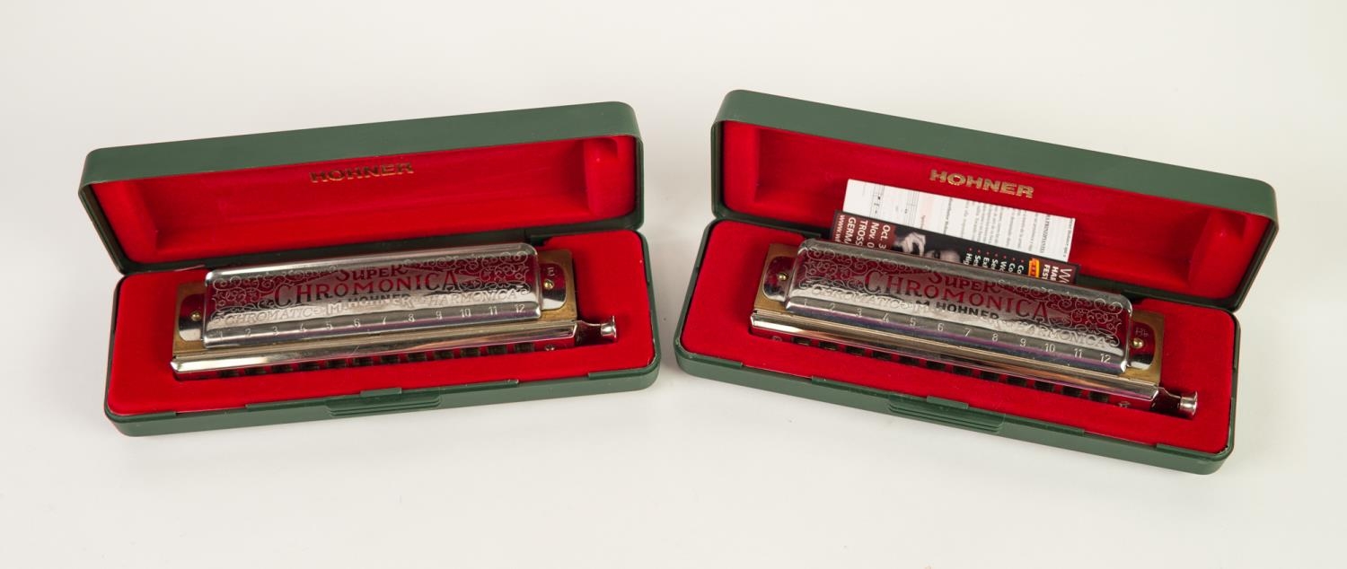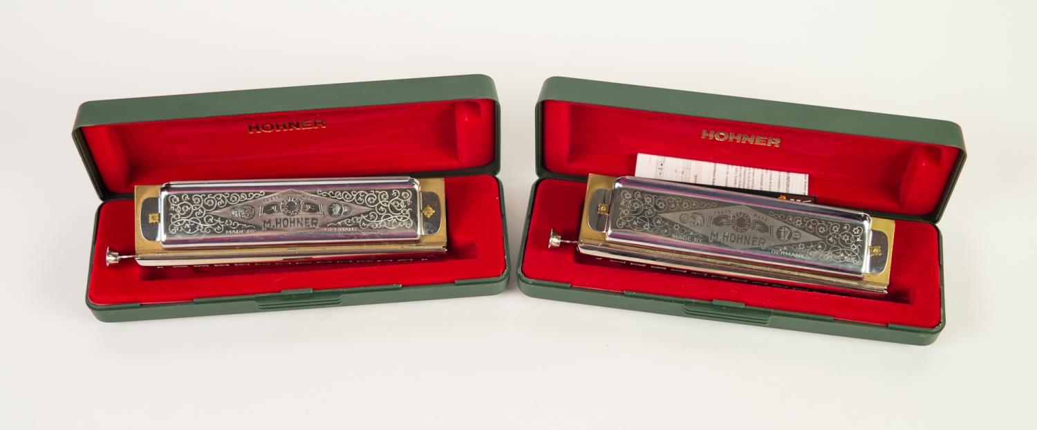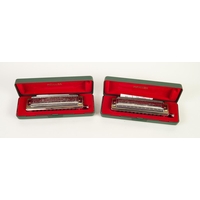 BOXED HOHNER - CHROMONICA 270 HARMONICA, numbered 270/48 Bb Chromonica M27011 to the bar code label and ANOTHER BOXED 270/48 E. Chromonica 48 3 Oktaven M27005 EACH IN GREEN HARD PLASTIC CASE one with leaflet (2)