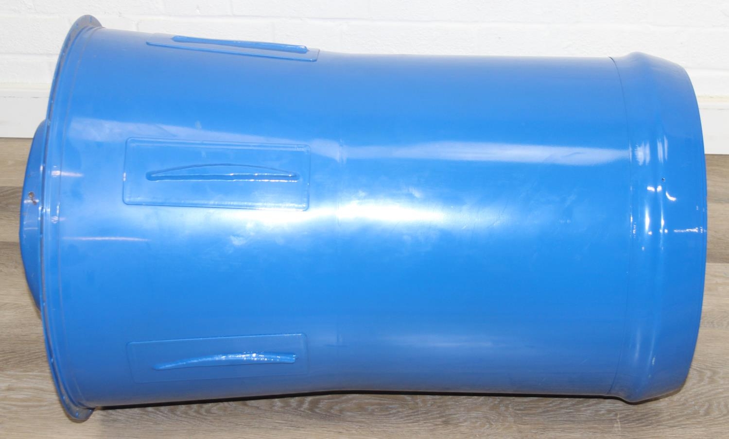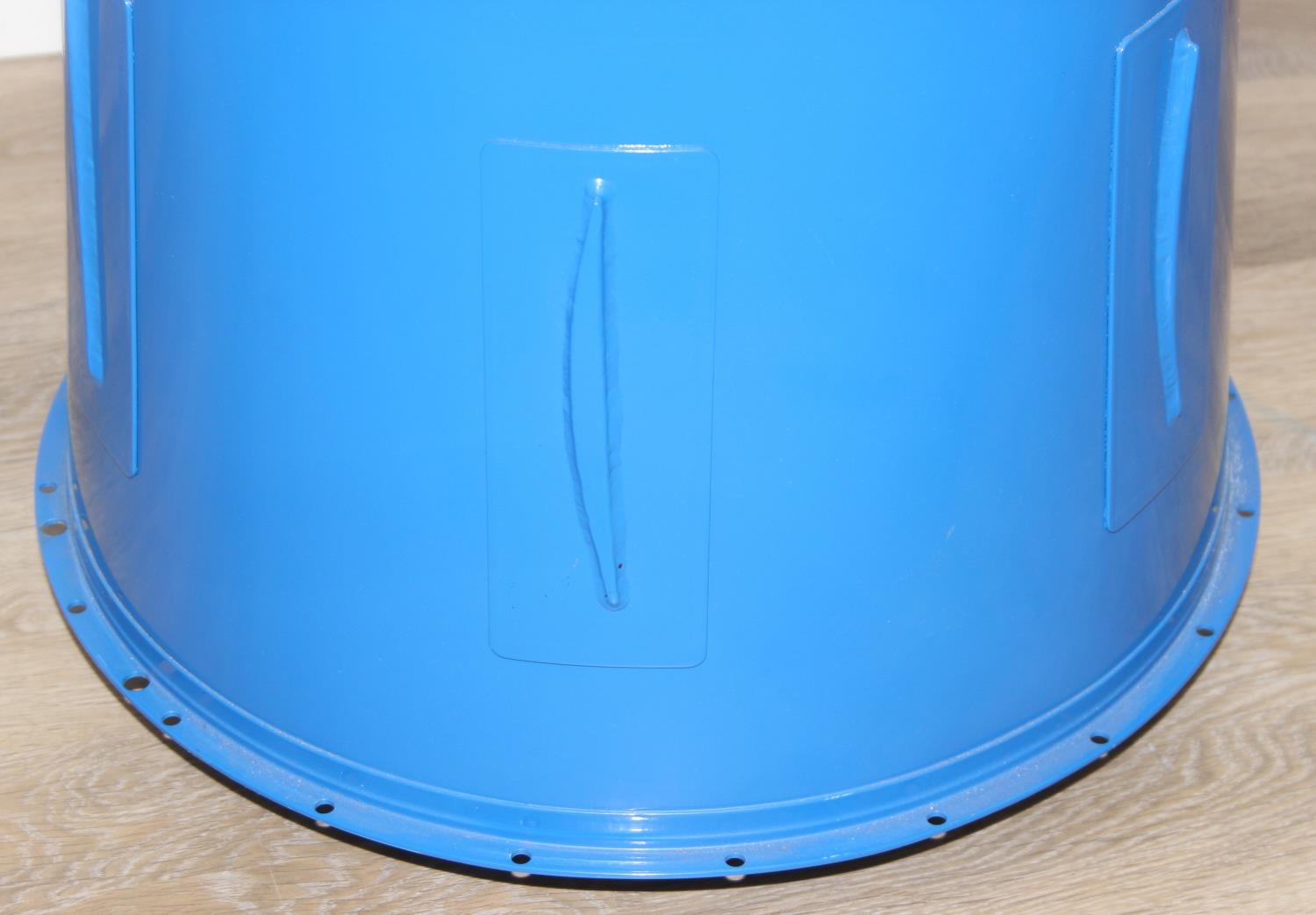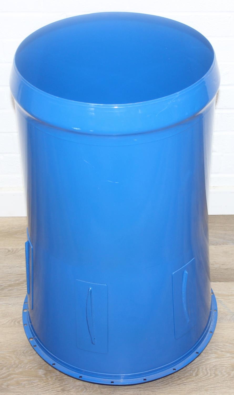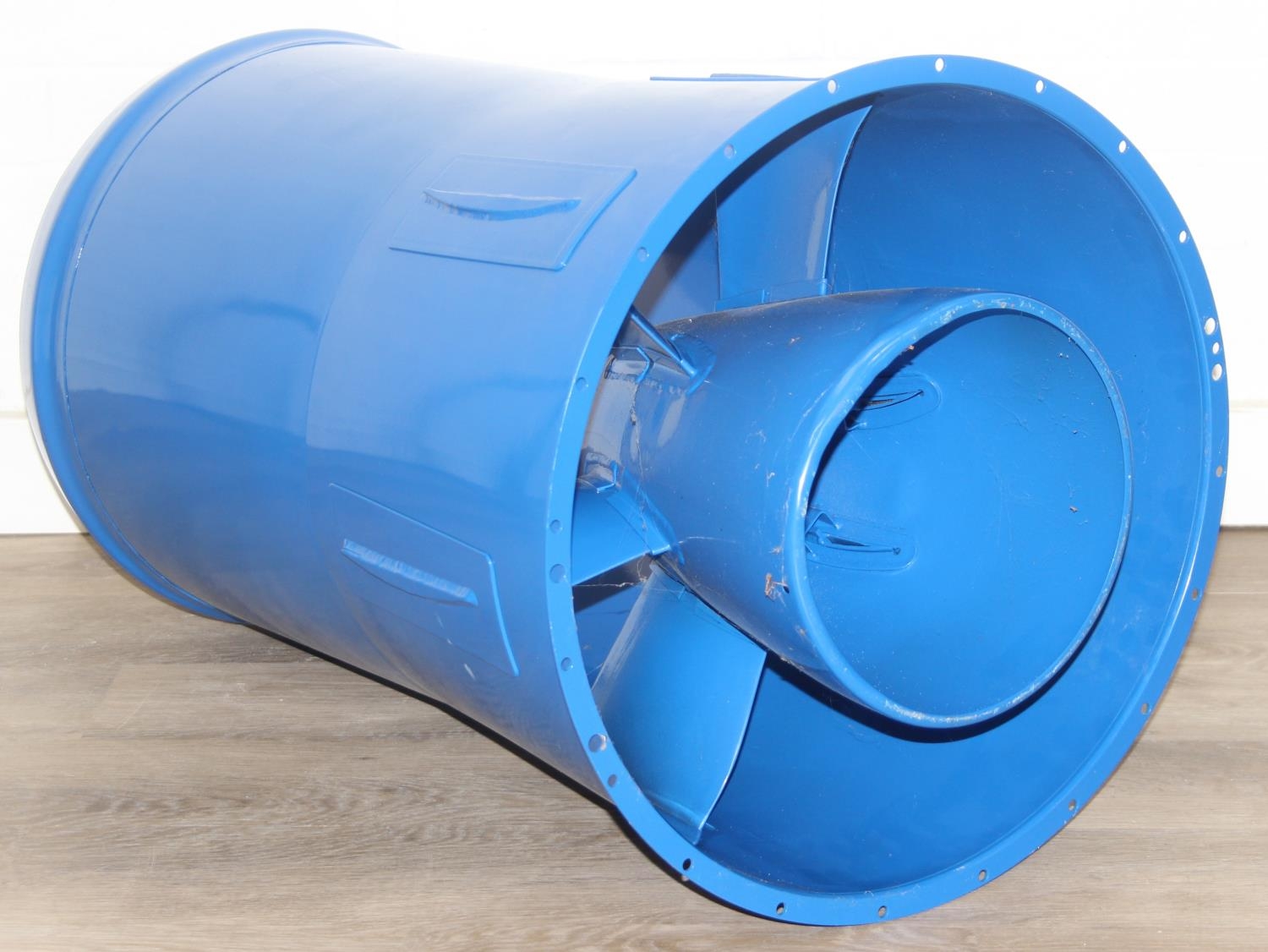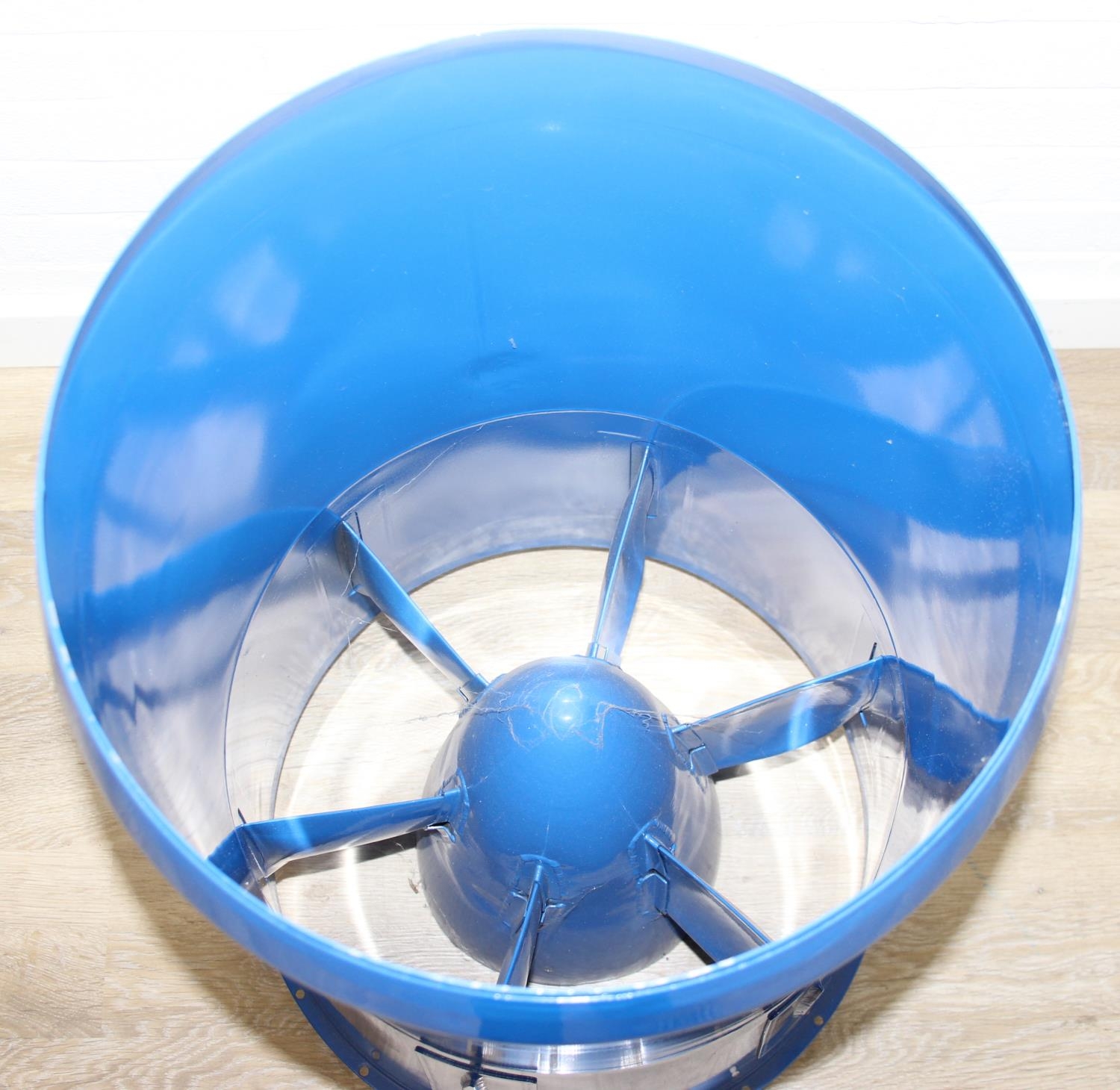 A modern metal aeroplane engine cowling, blue painted metal finish, would make an ideal table base with glass top, 45cm diameter x 79cm