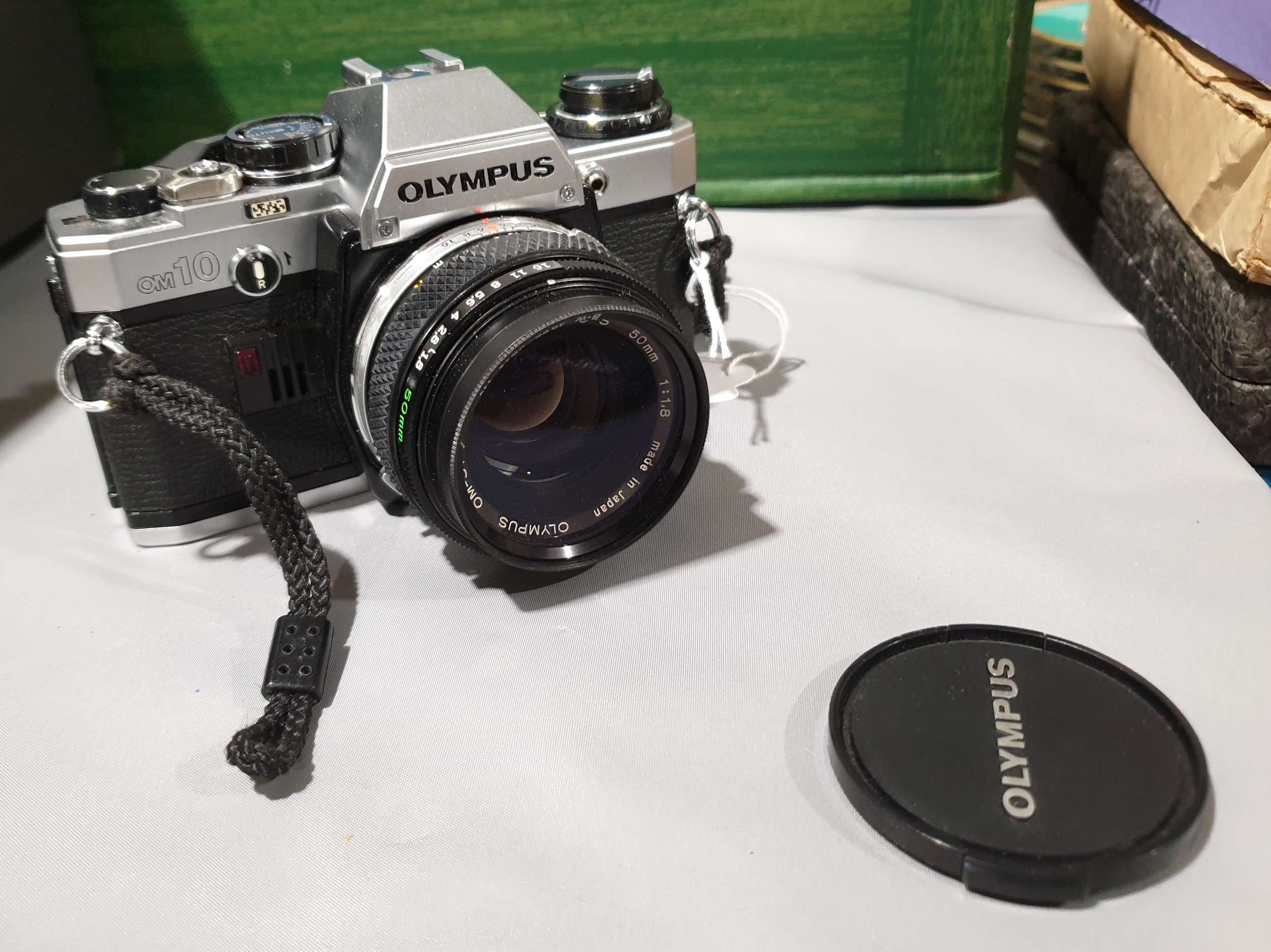 An Olympus OM10 camera with an Olympus 50mm lens.UK shipping £14.