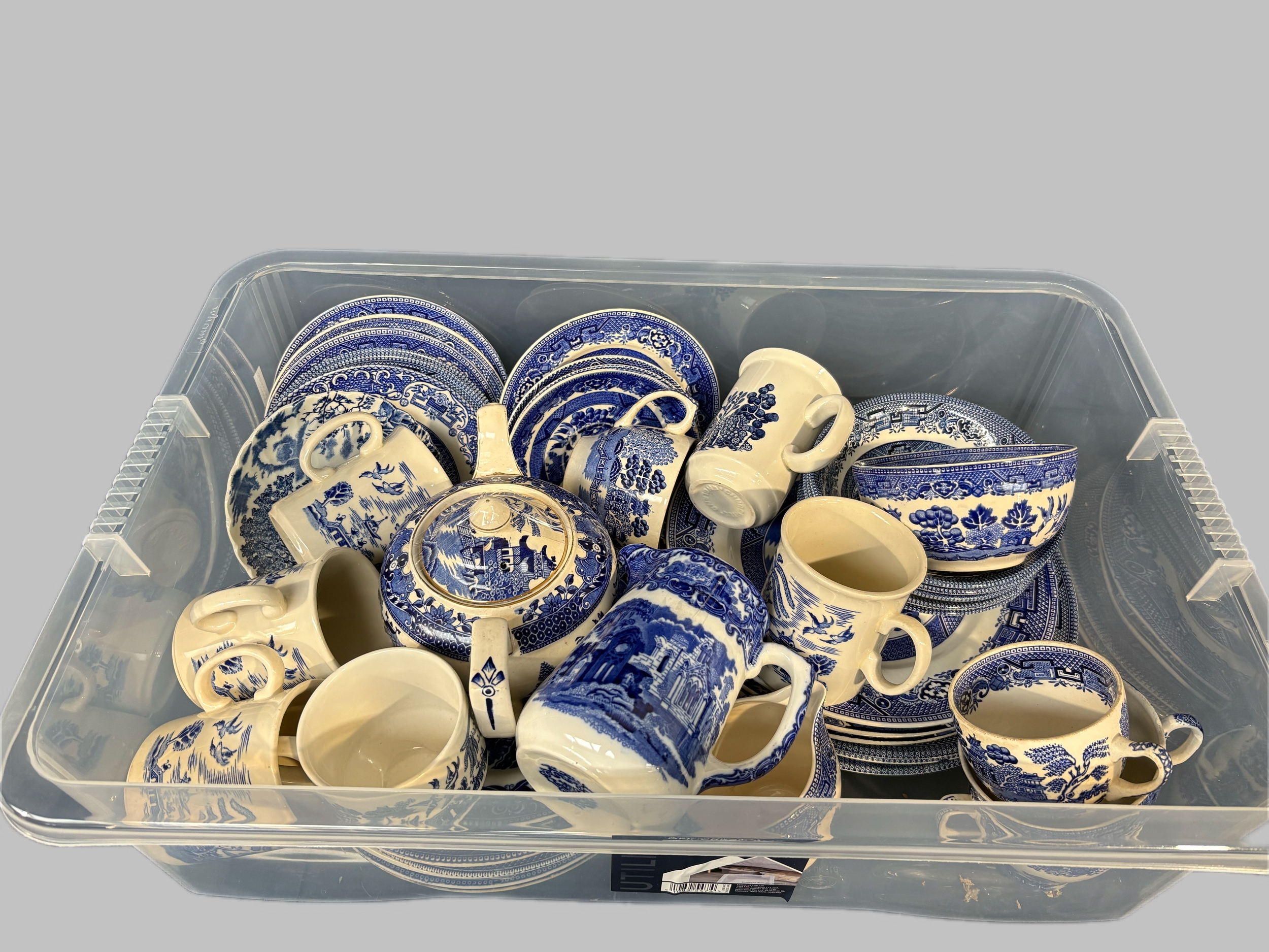 Plastic box of blue and white china