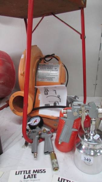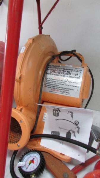 A tested working air blower for inflatables and an unused compressor accessories kit. (Collect only)