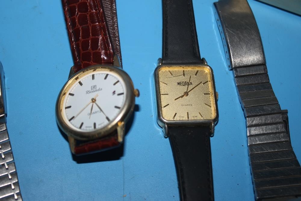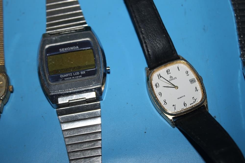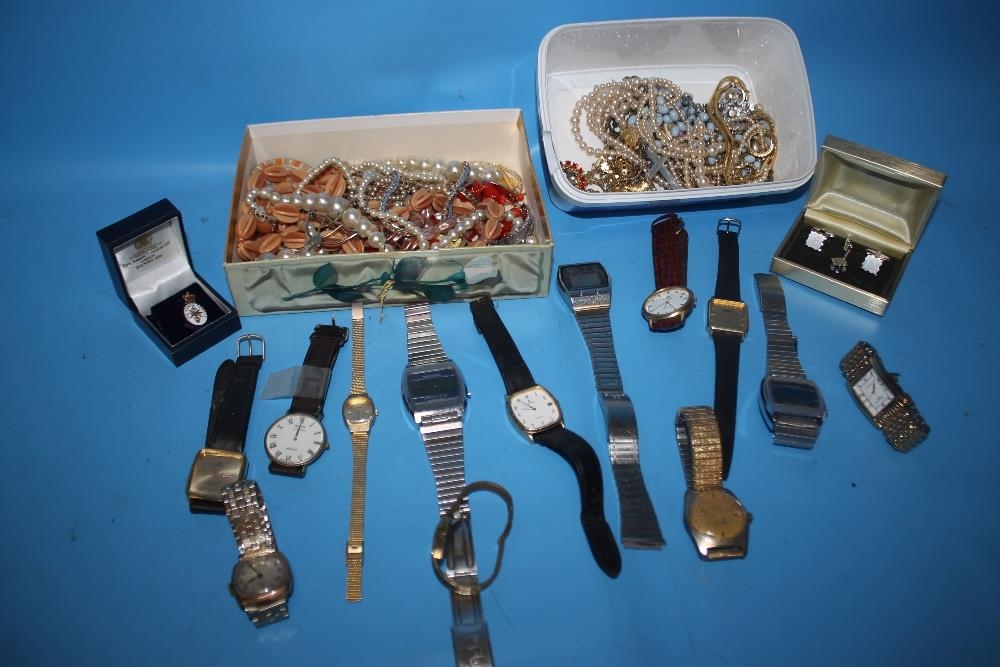 A QUANTITY OF COSTUME JEWELLERY AND WRIST WATCHES TO INCLUDE A VINTAGE GENTLEMAN'S RECORD WATCH