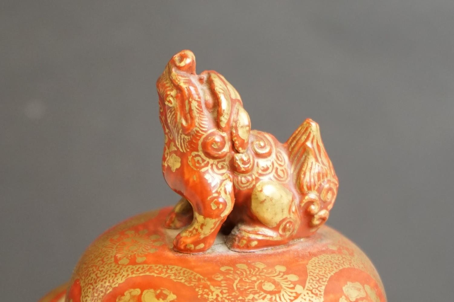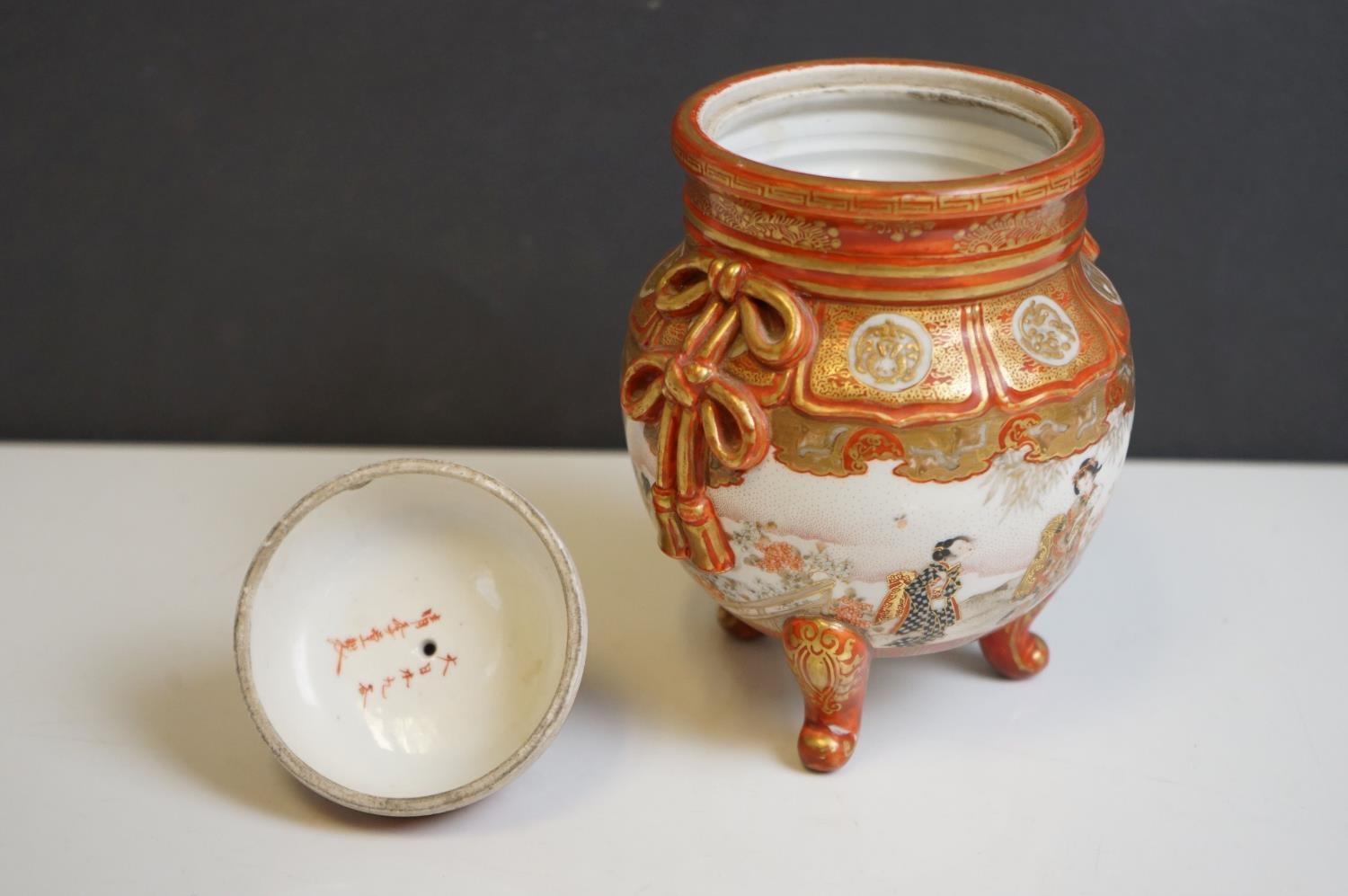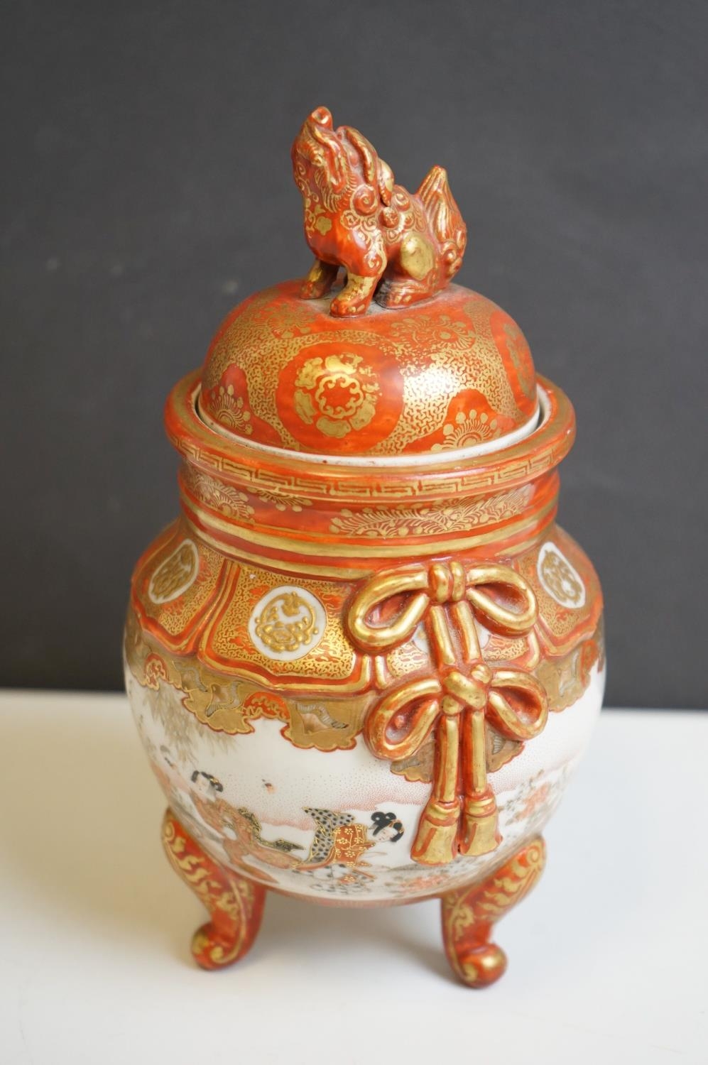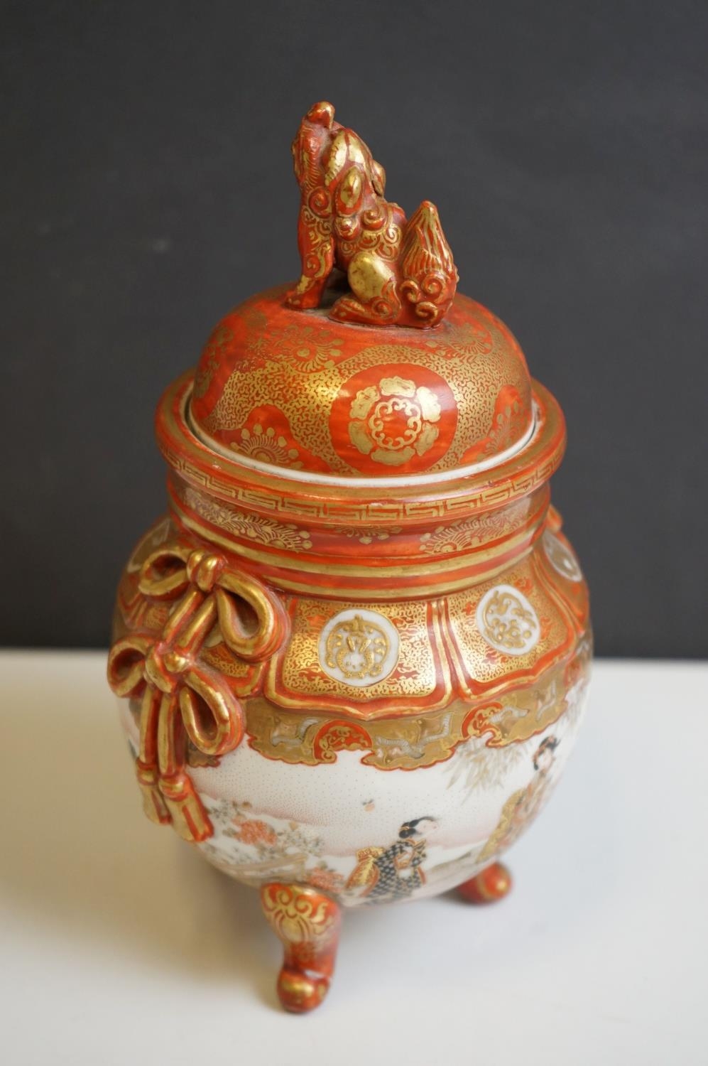 Japanese Kutani Jar and Lid, Meiji period, decorated with scenes of figures, 22cms high