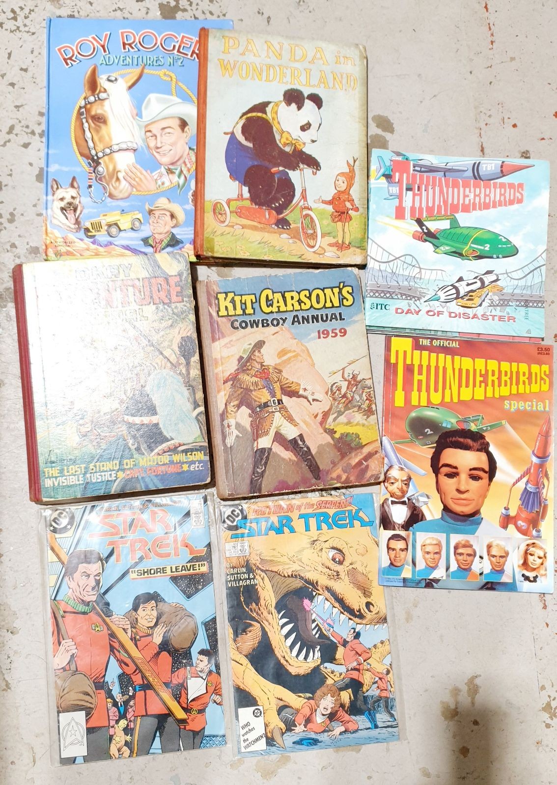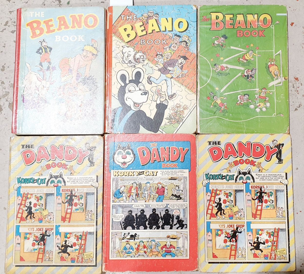 A 1957 Beano Book and a selection of vintage Dandy and Beano annuals and other annuals. UK shipping £14.