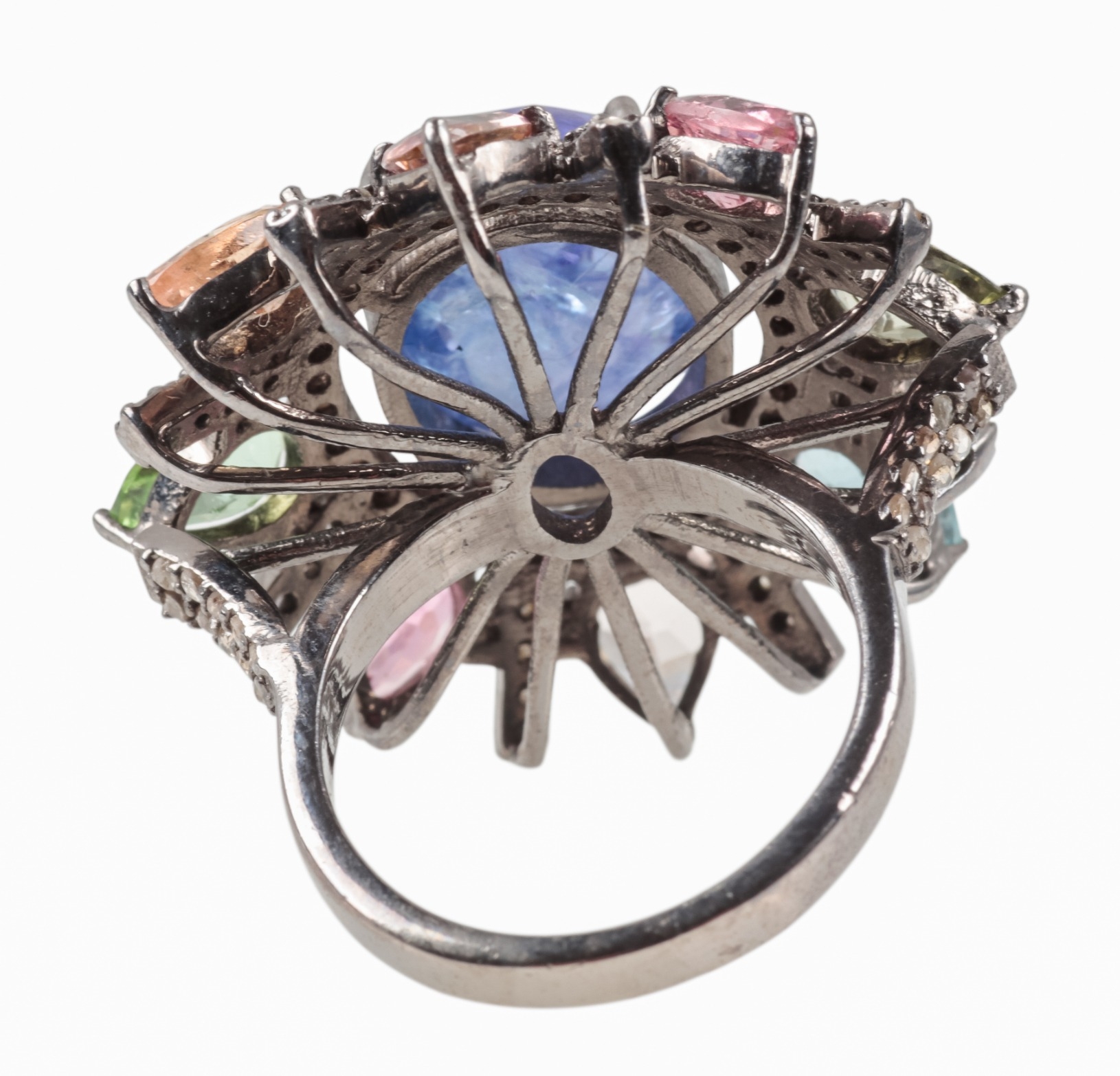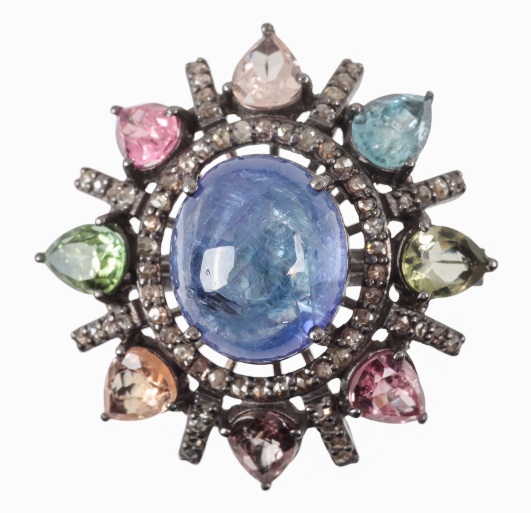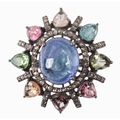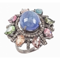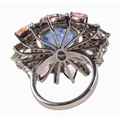 A CLUSTER RING SET WITH TOURMALINE, KYANITE AND DIAMONDS