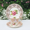 Bonny and Blithe Princess lilac floral and gilt trio sets x 8 . Boxed