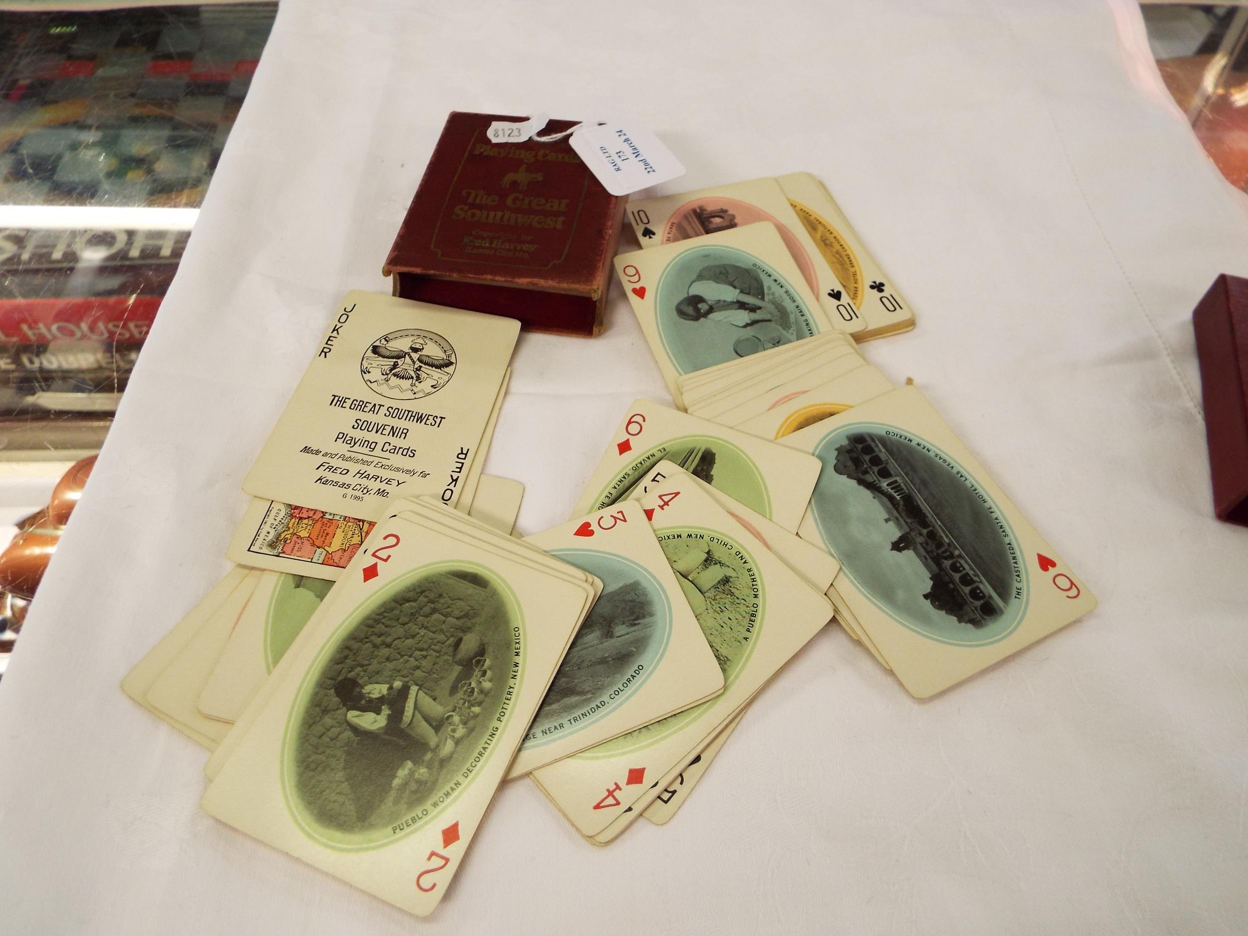 A vintage pack of Souvenir Playing Cards 'The Great Southwest' made and published by Fred Harvey Kansas City, Mo. all having pictorial panels