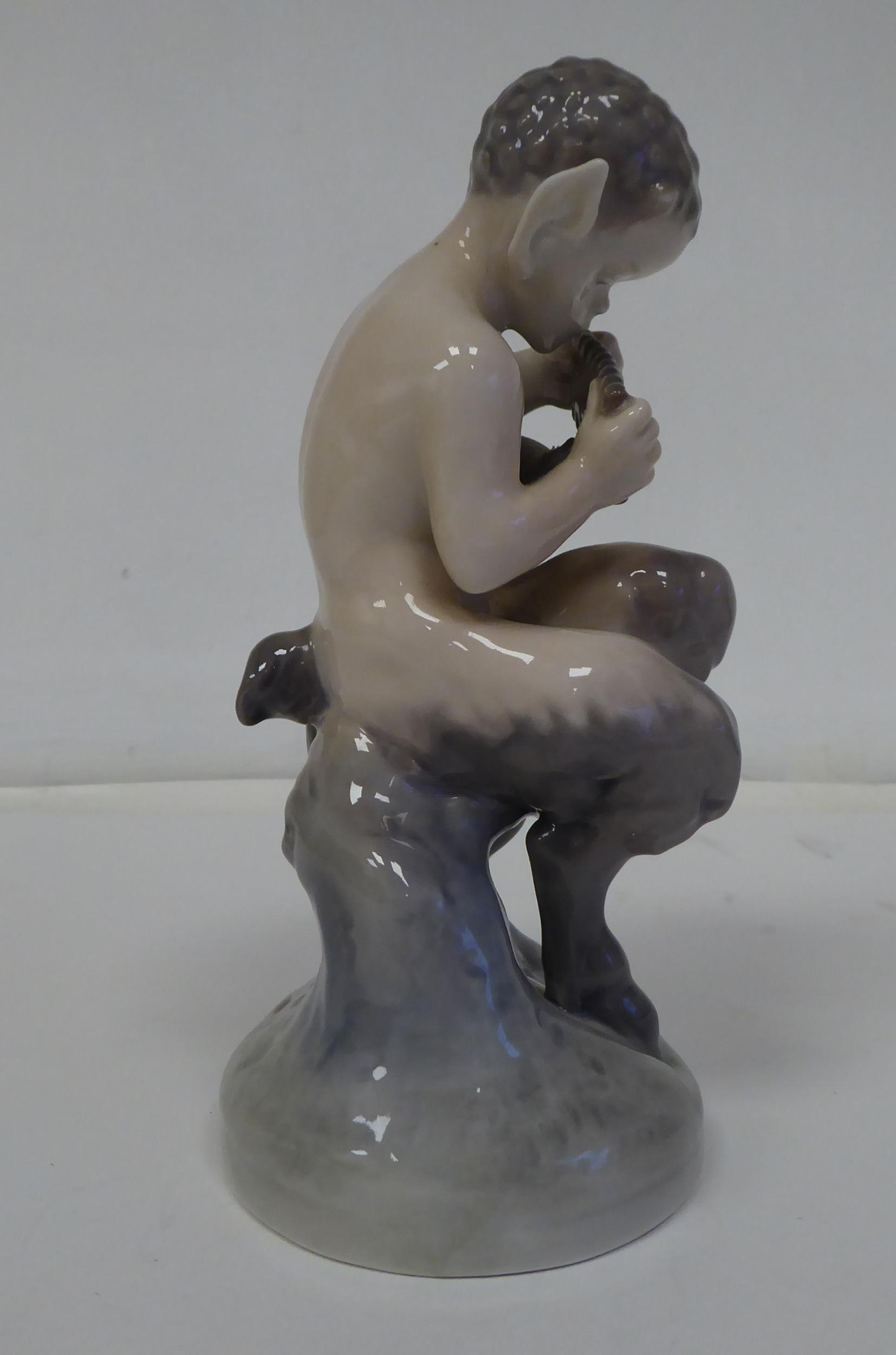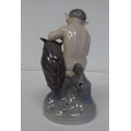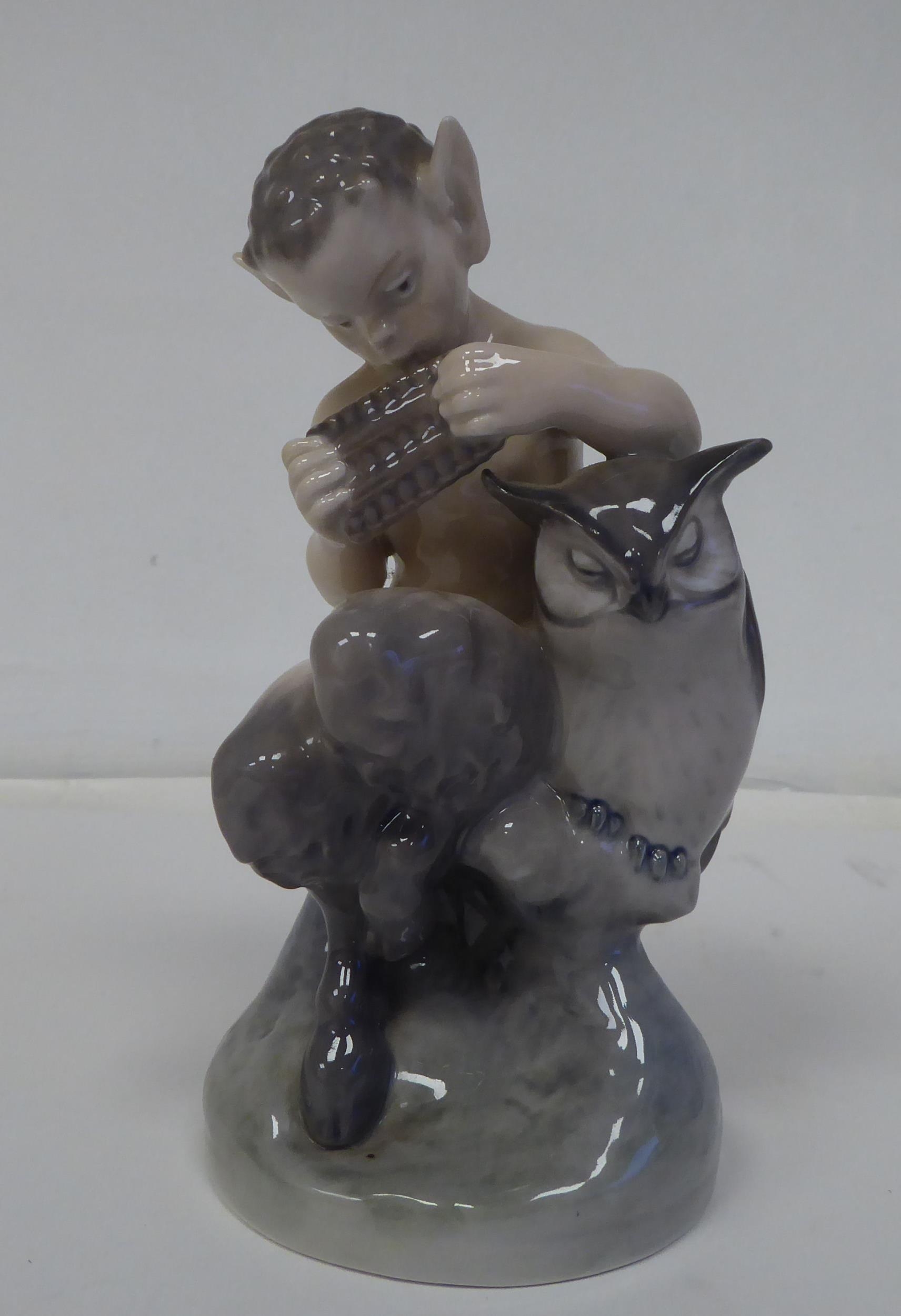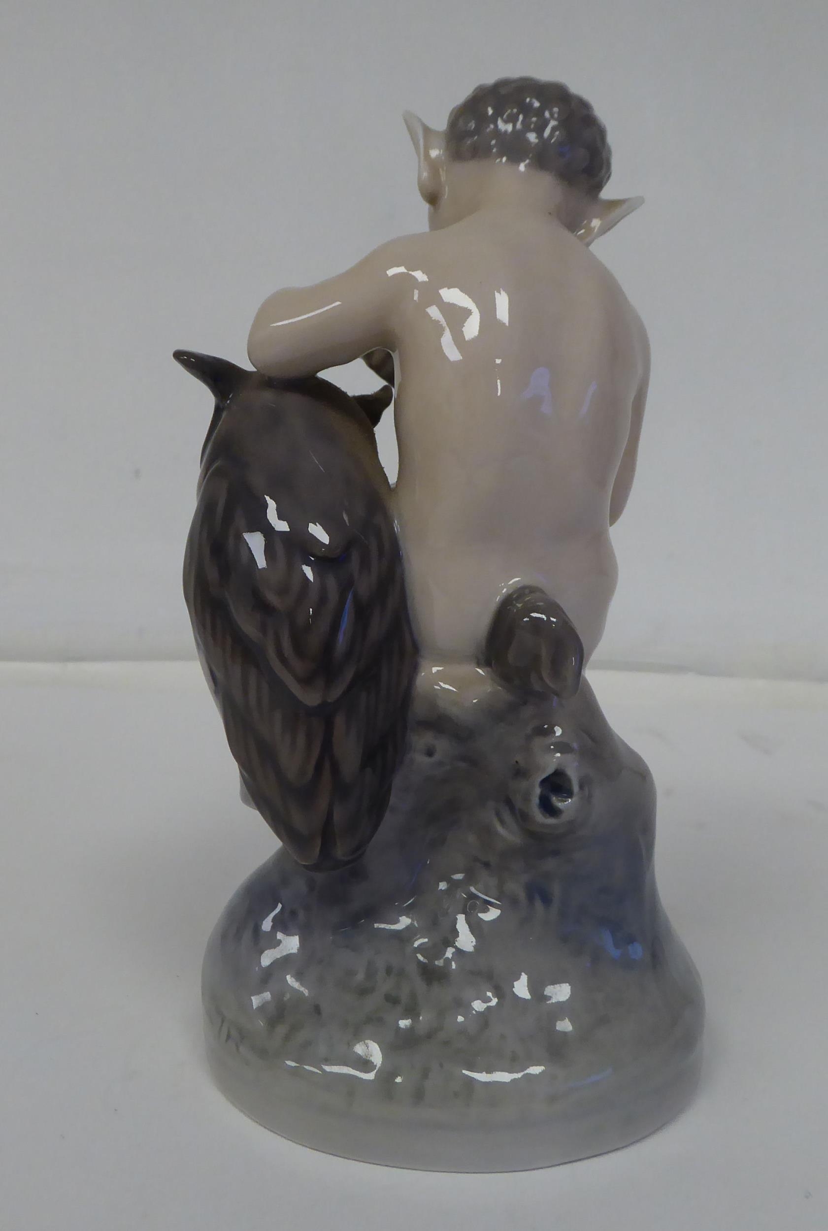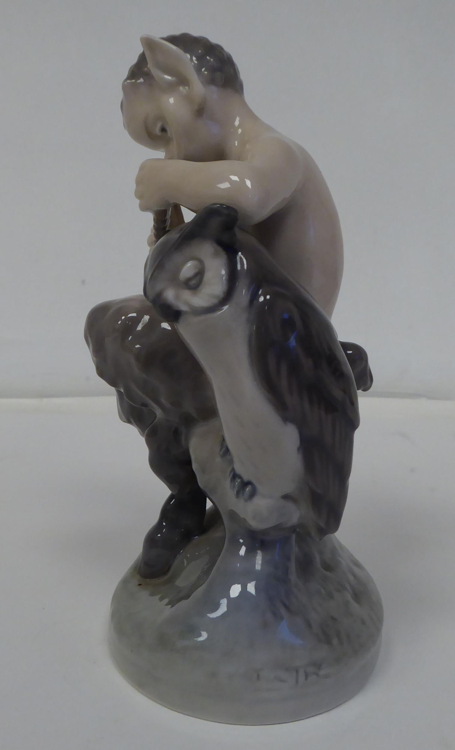 A Royal Copenhagen porcelain figure, No.2107, a faun with an owl 6.25"h