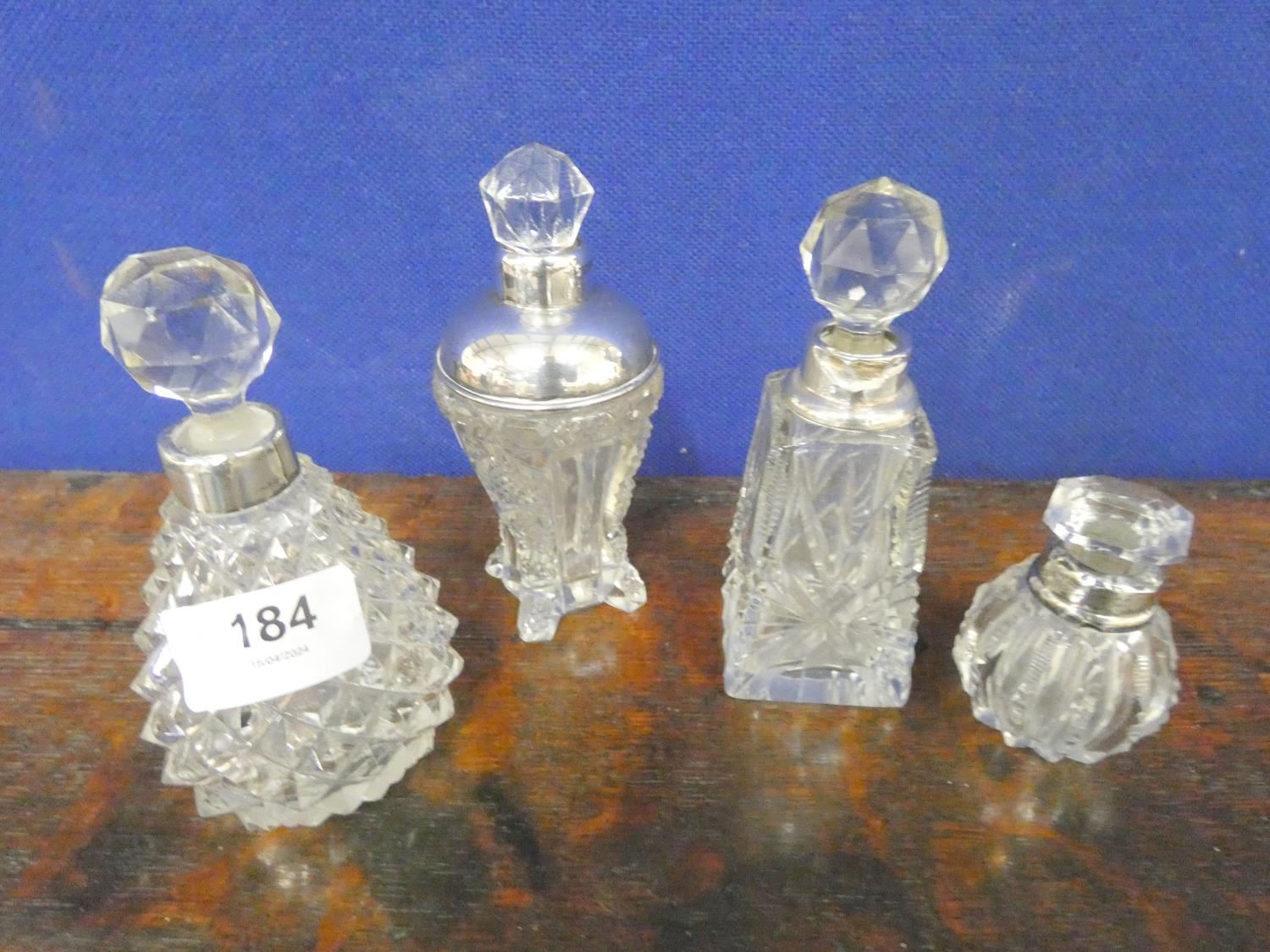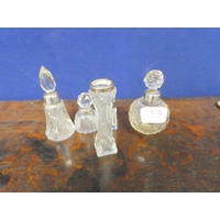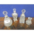Four cut glass antique silver rim scent bottles.